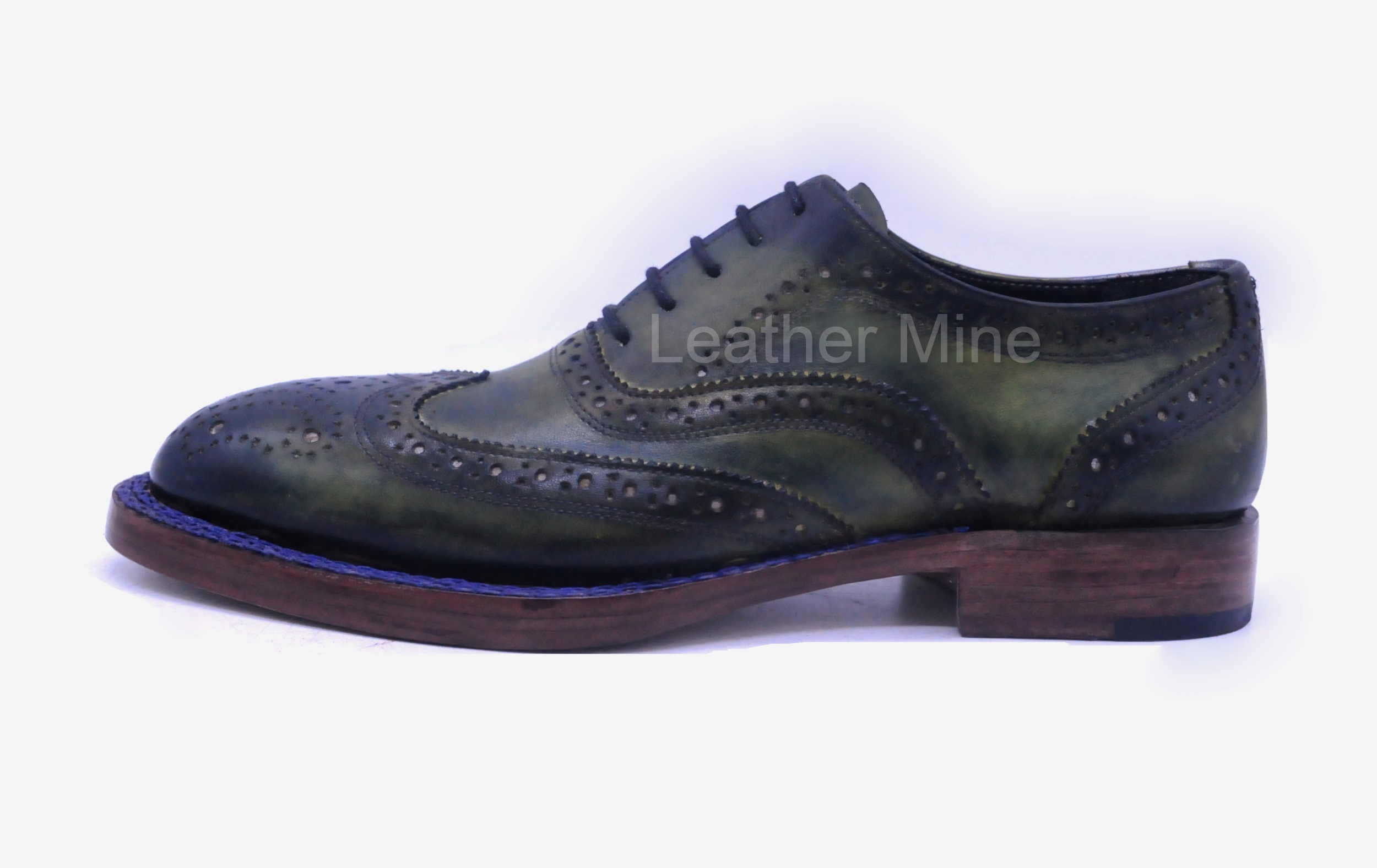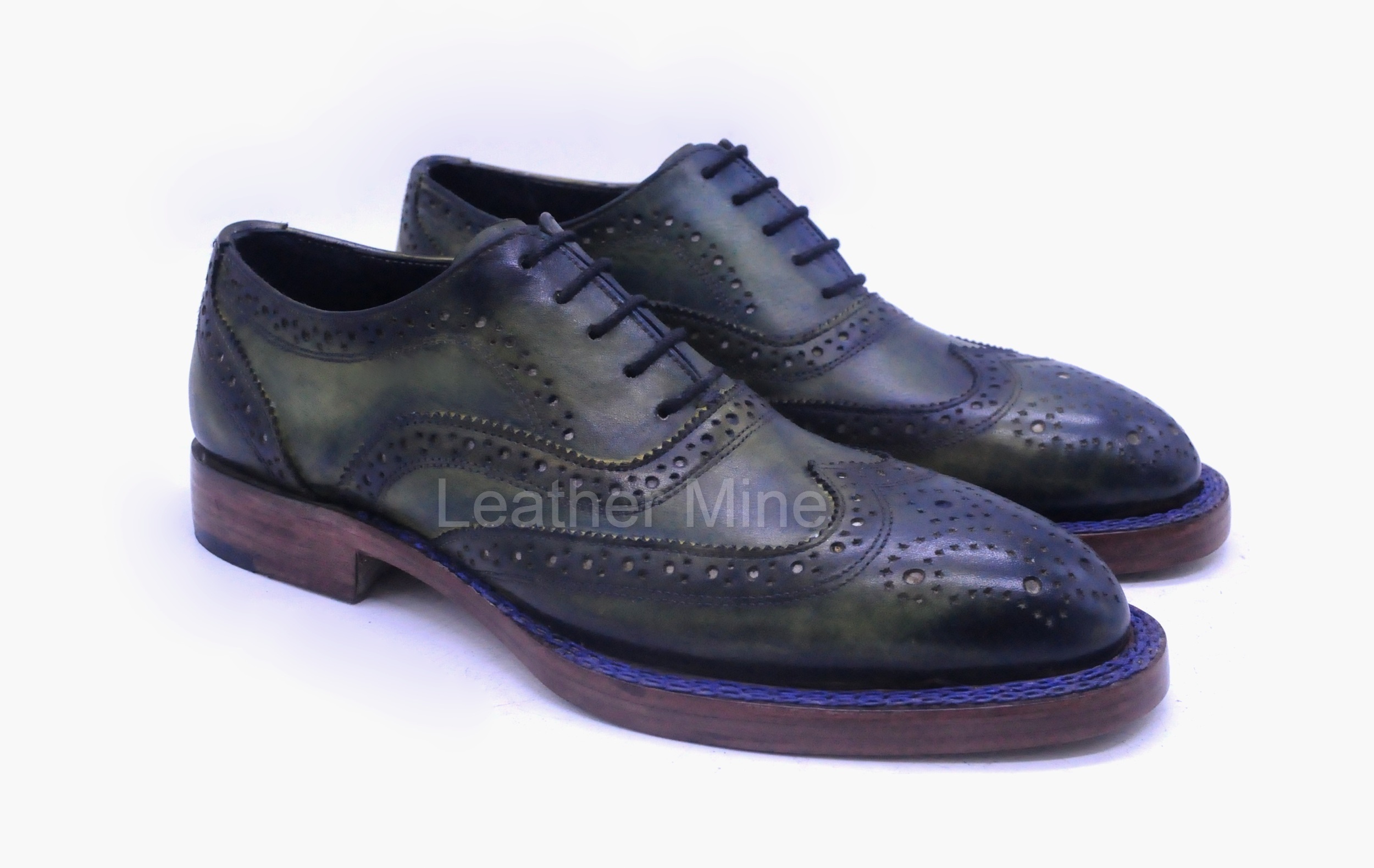 Green Patina Brogue Dress Shoes For Men, Genuine Leather Custom Shoes