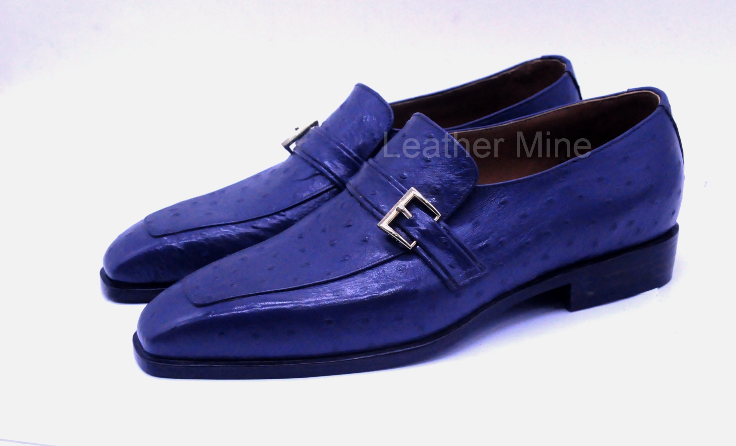 Blue Loafers Leather shoes Men's, Handmade Leather Shoes