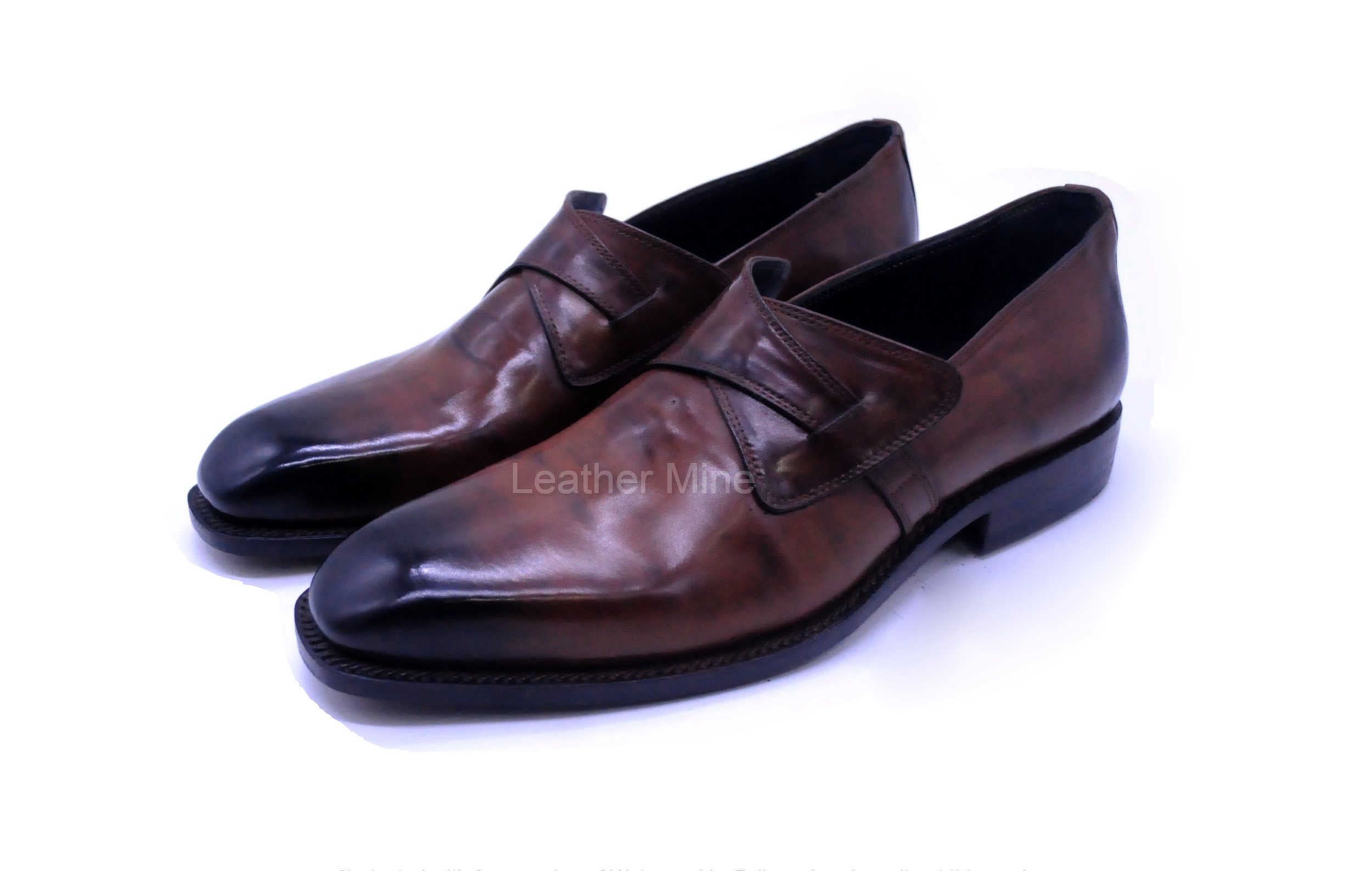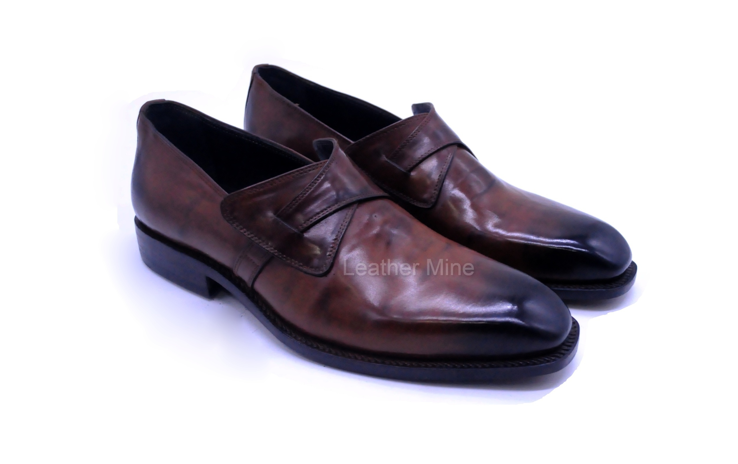 Men's Handmade Brown Patina Loafers Leather Dress Shoes For Men