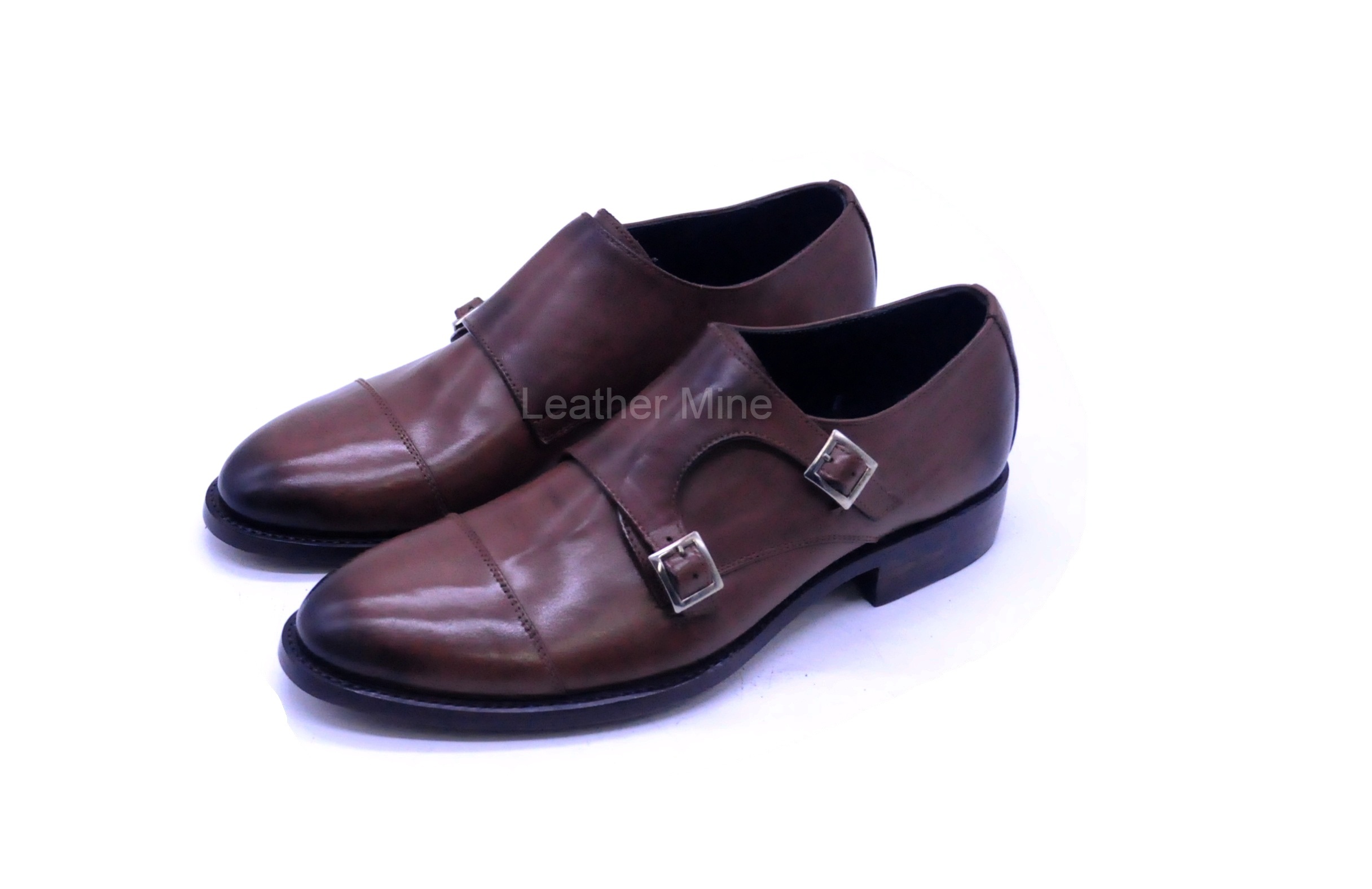 Brown Double Monk Leather shoes Men's, Handmade Leather Shoes