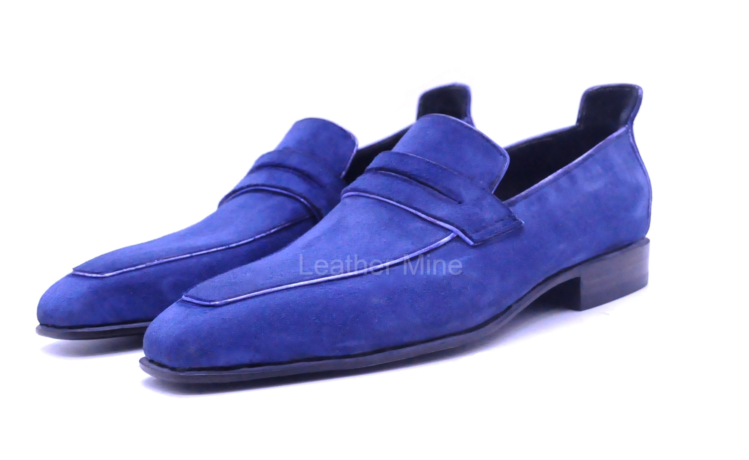 Handmade Blue Suede Loafers Leather Shoes Men', Formal Shoes