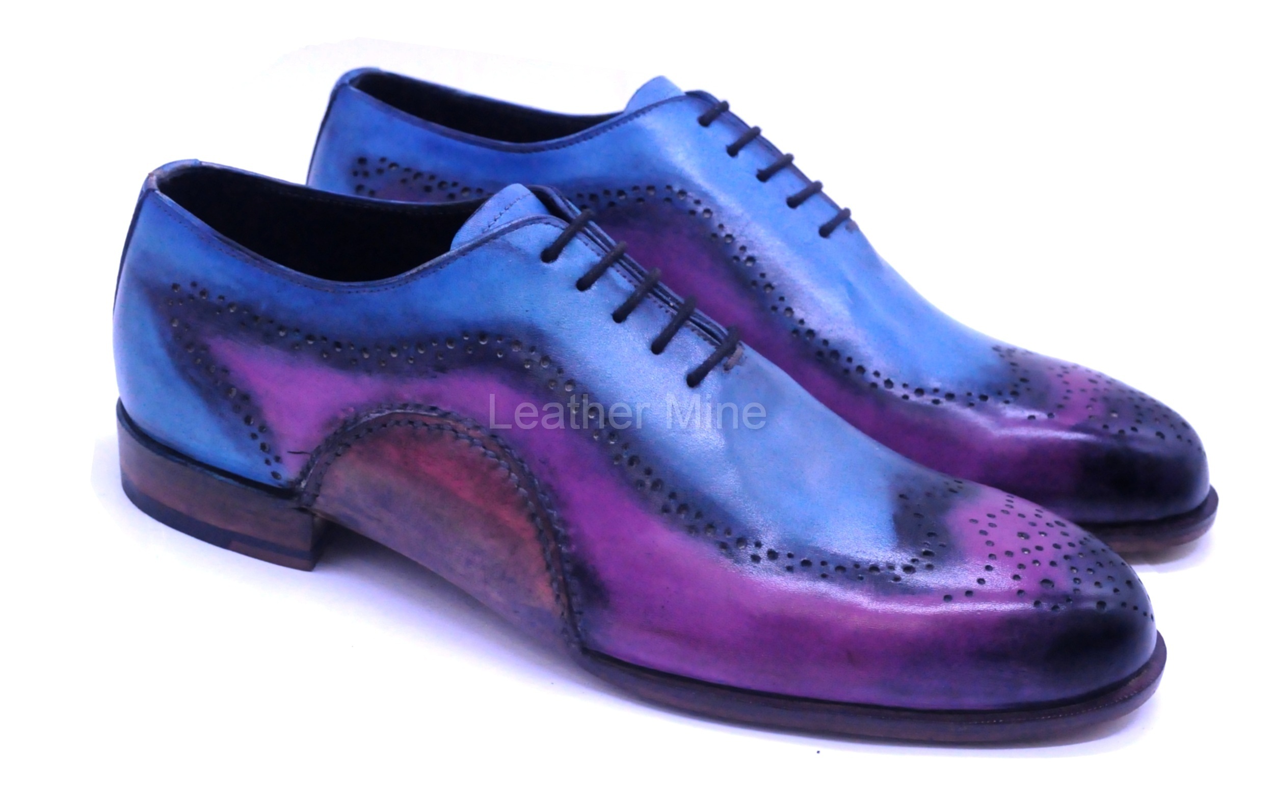Leather Dress Shoes Men's Handmade Blue Patina Oxfords Shoes