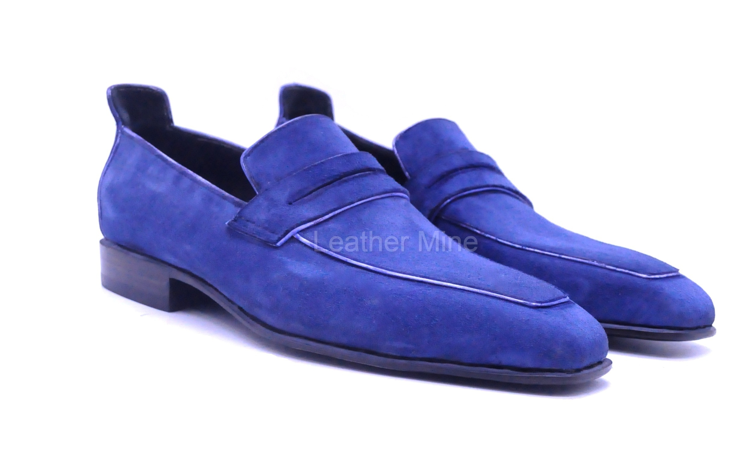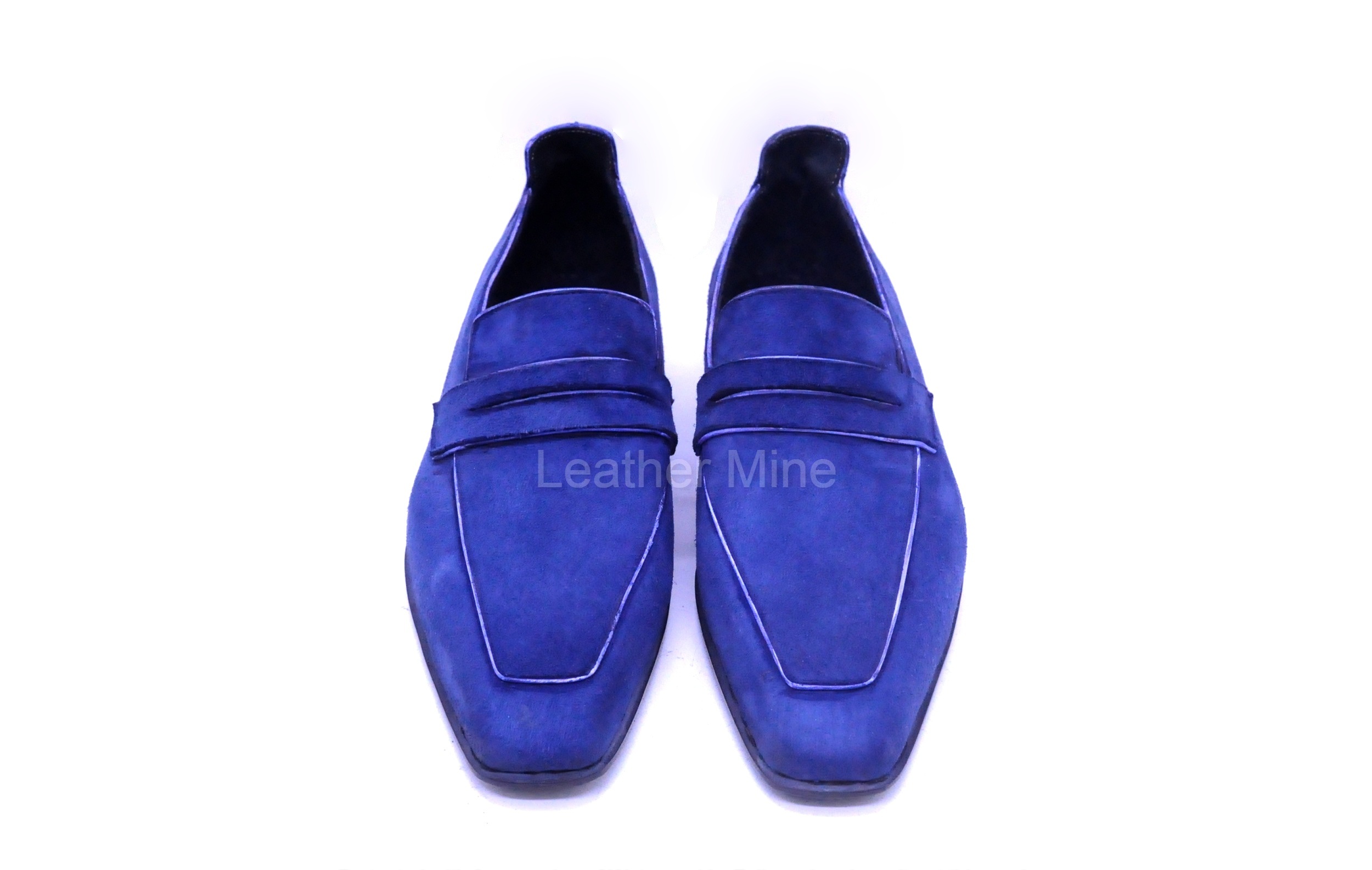Leather Dress Shoes Men's Handmade Blue Suede Loafers Shoes