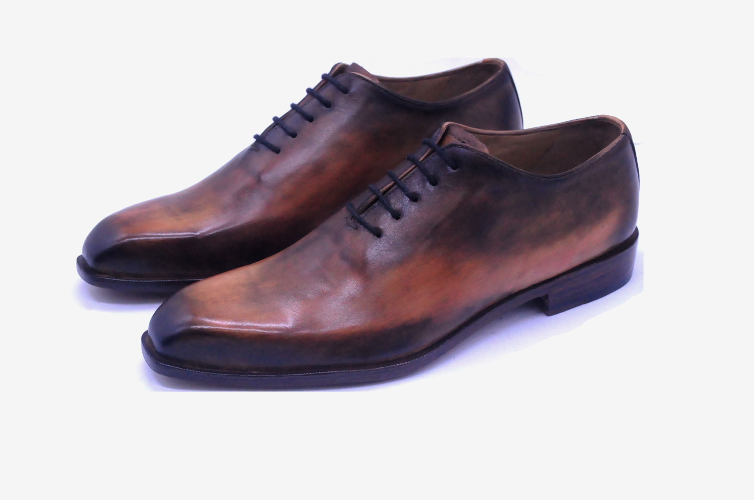 Men's Handmade Tan Patina Oxfords Leather Dress Shoes For Men