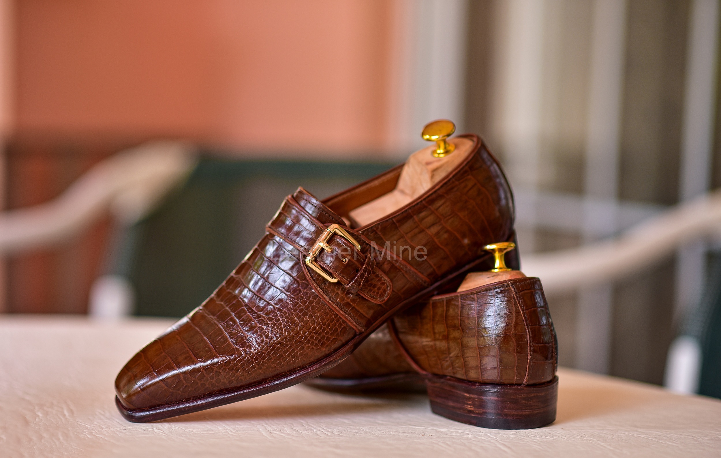 Handmade Brown Crocodile Monk Leather Shoes Men', Formal Shoes