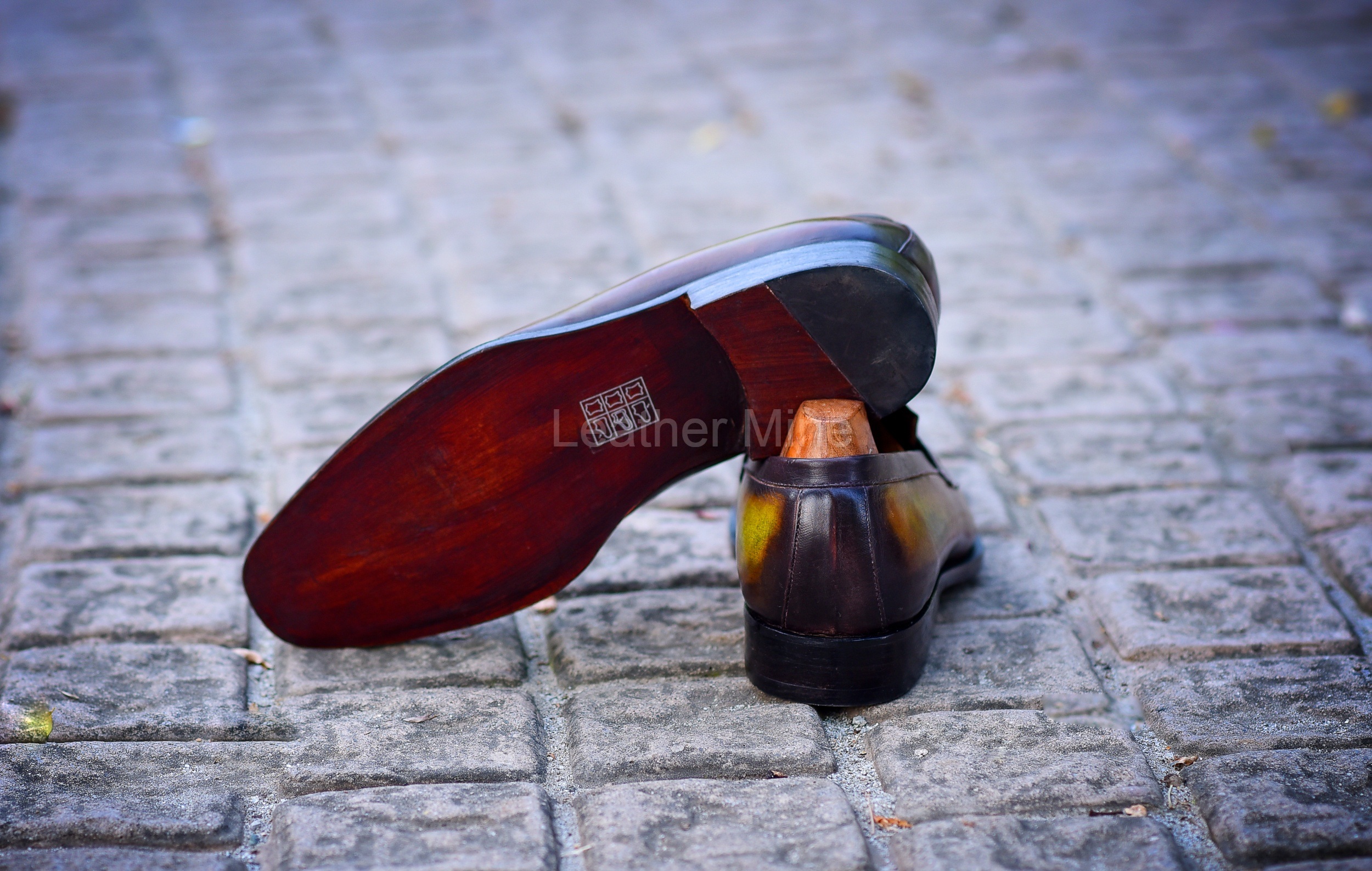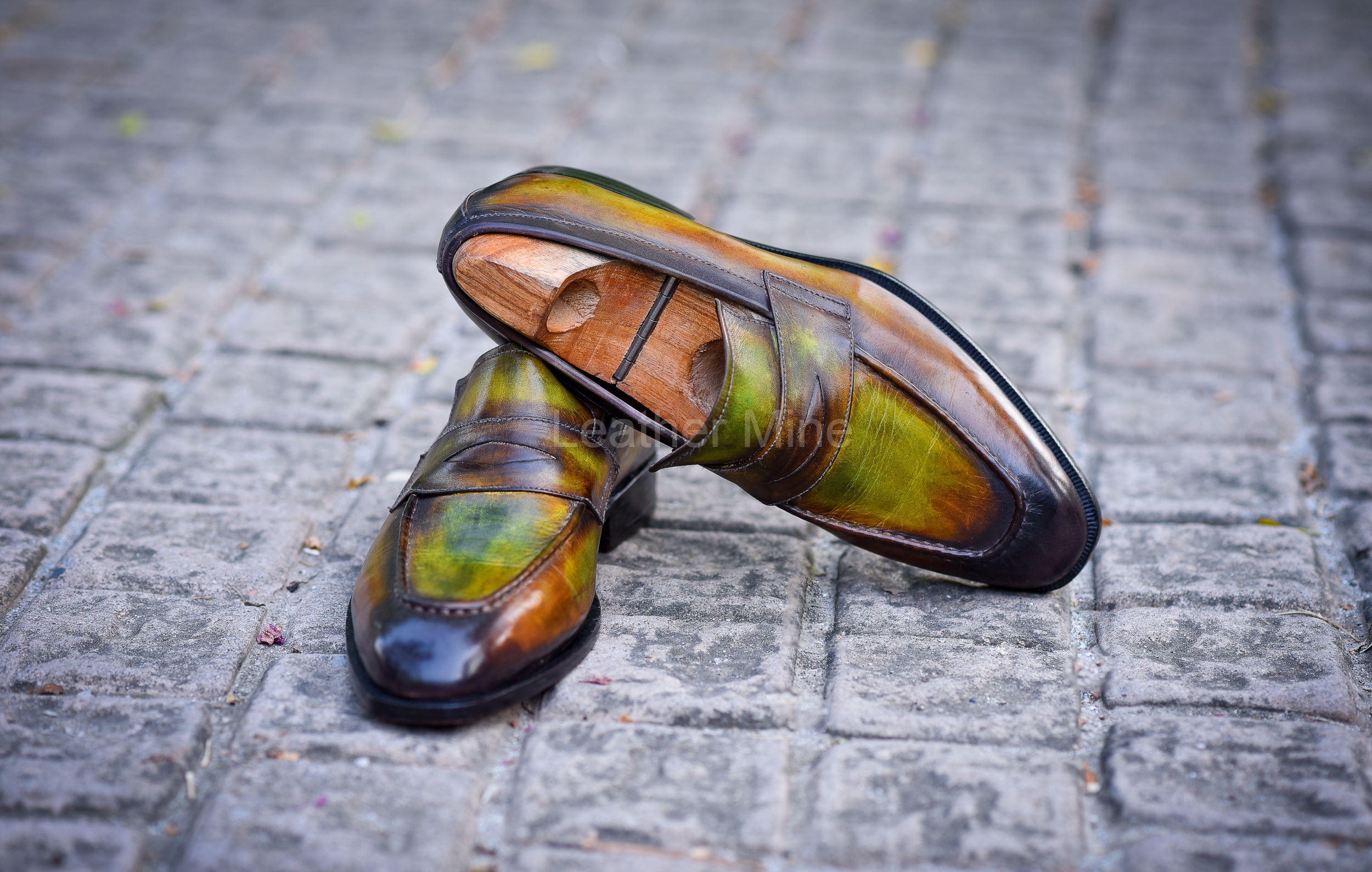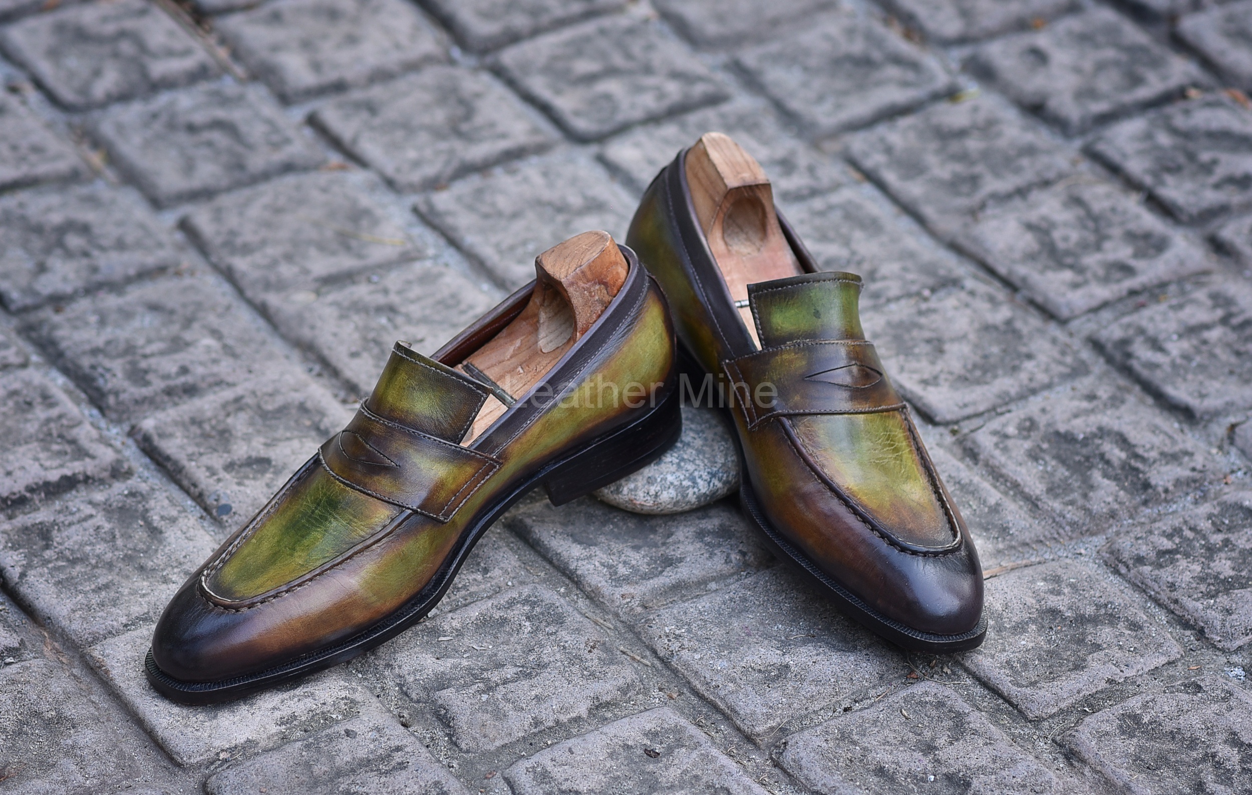 Men's Green Patina Loafers Shoes, Handmade Genuine Leather Shoes