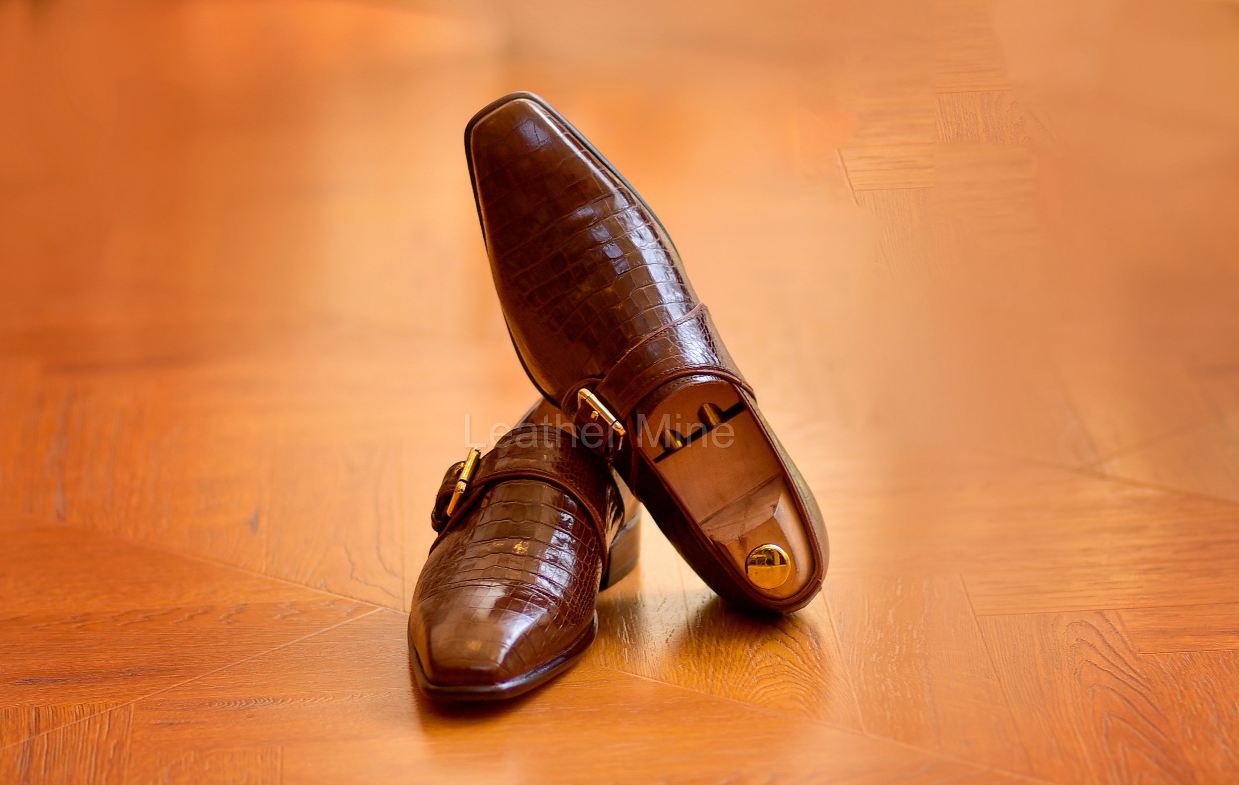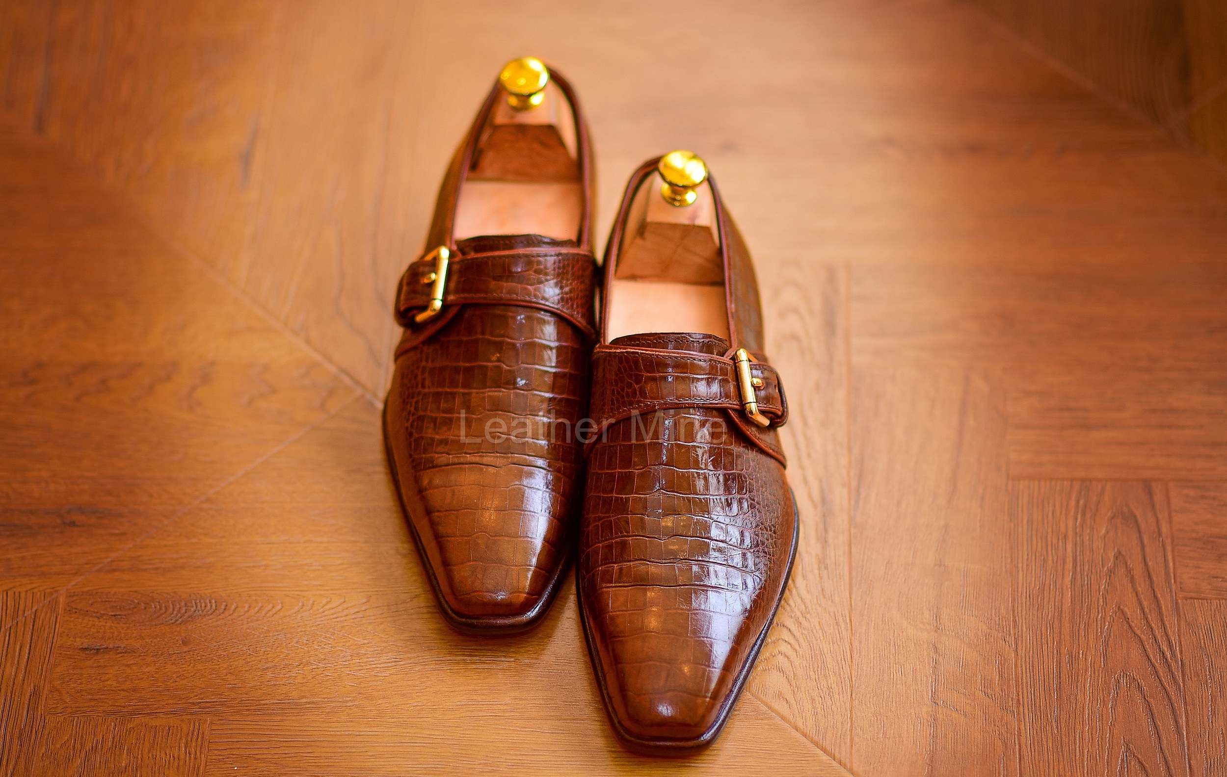 Leather Dress Shoes Men's Handmade Brown Crocodile Monk Shoes