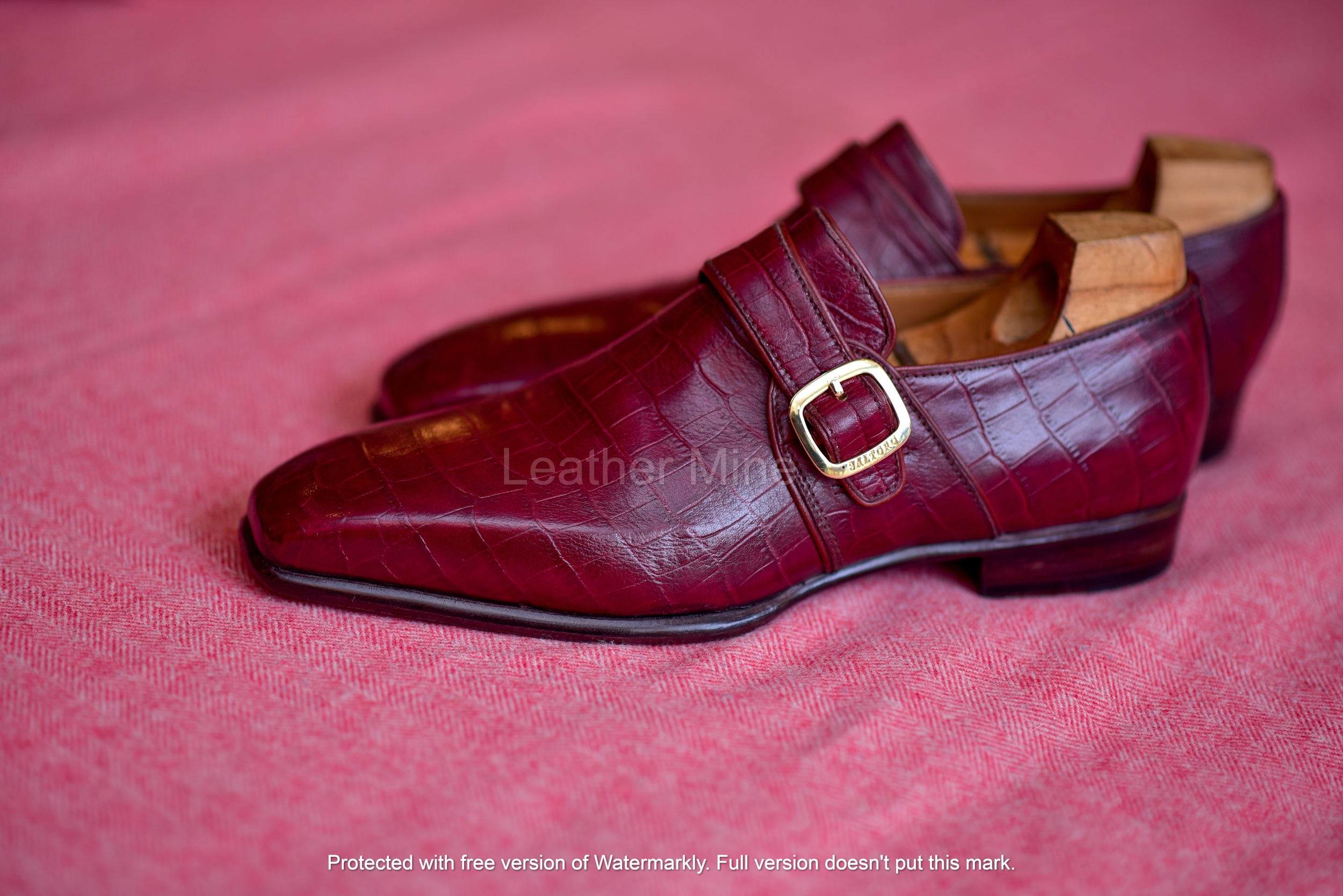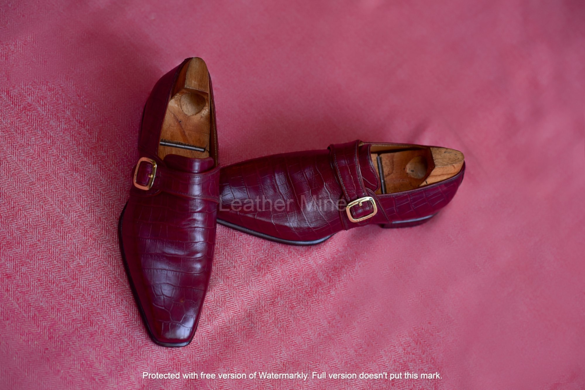 Handmade Purple Monk Strap Leather Shoes Men', Formal Shoes