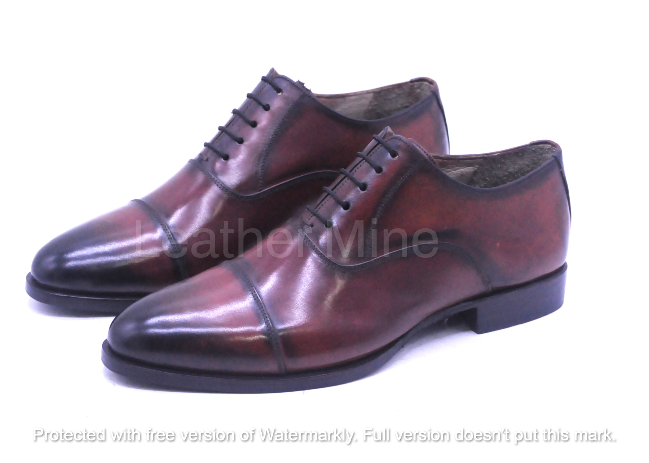 Handmade Brown Patina Oxford Leather Shoes Men's Shoes Dress shoes