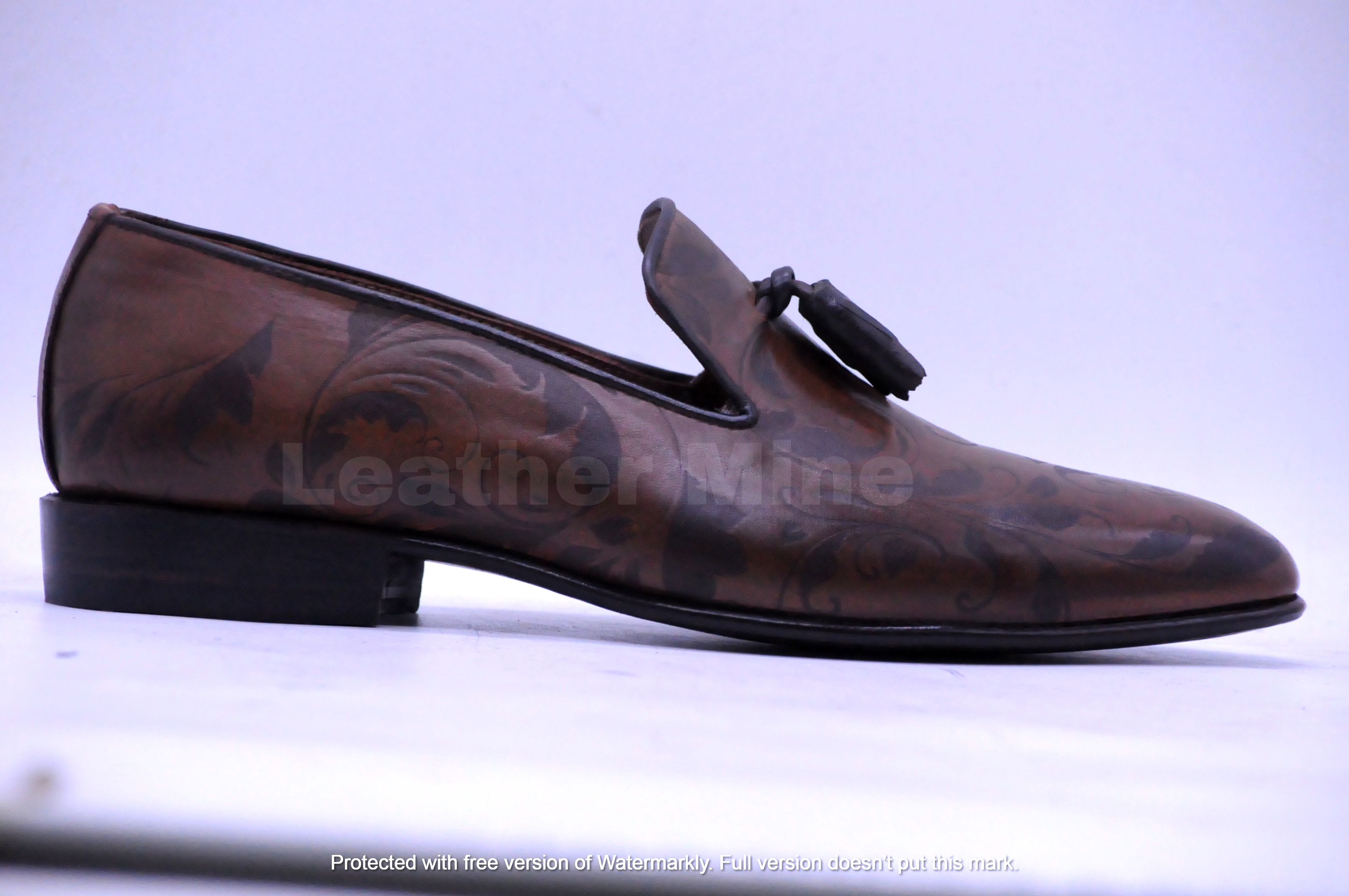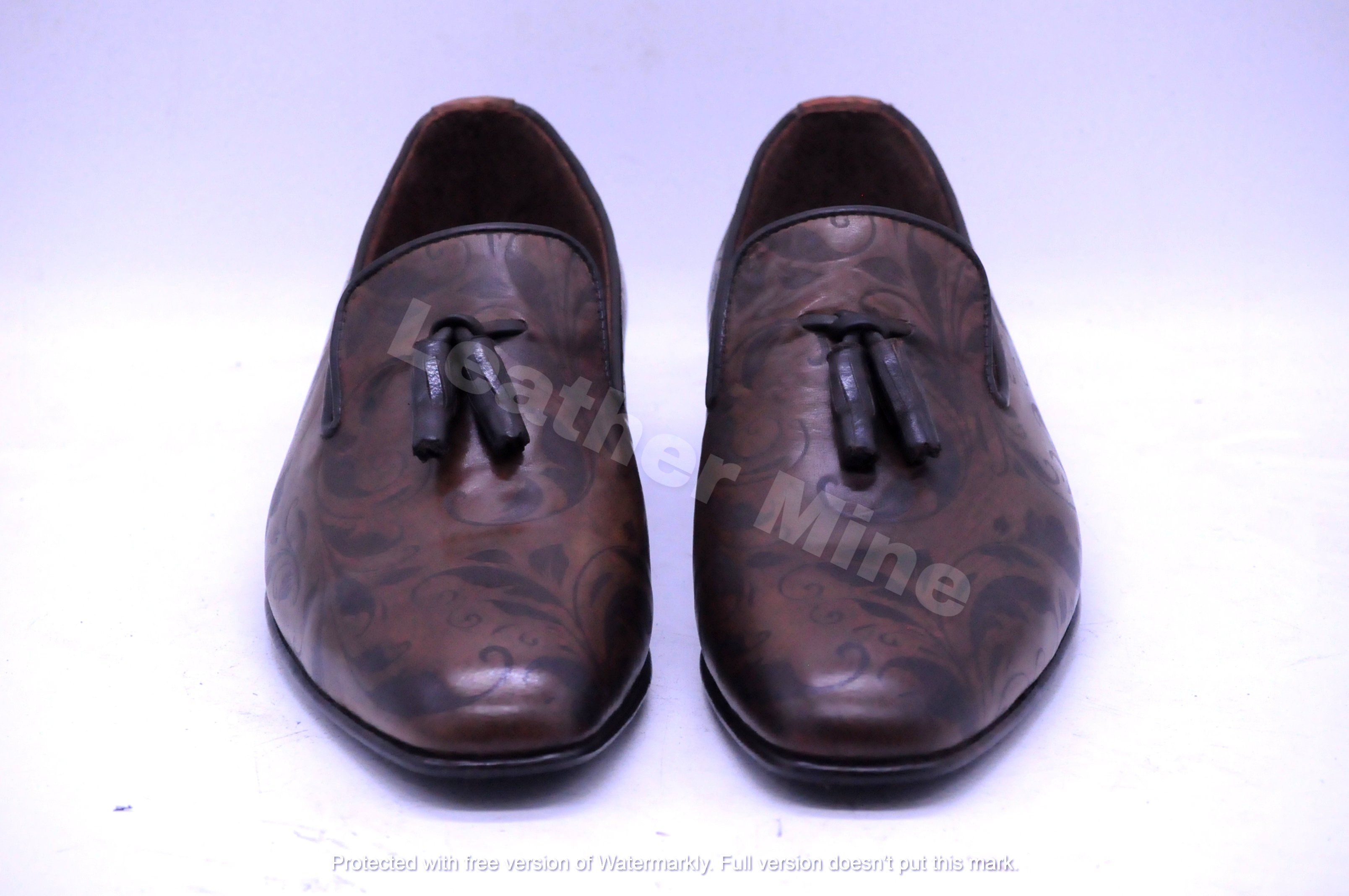 Tassel Moccasins Leather Dress Shoes Men's Handmade Floral Loafers Shoes