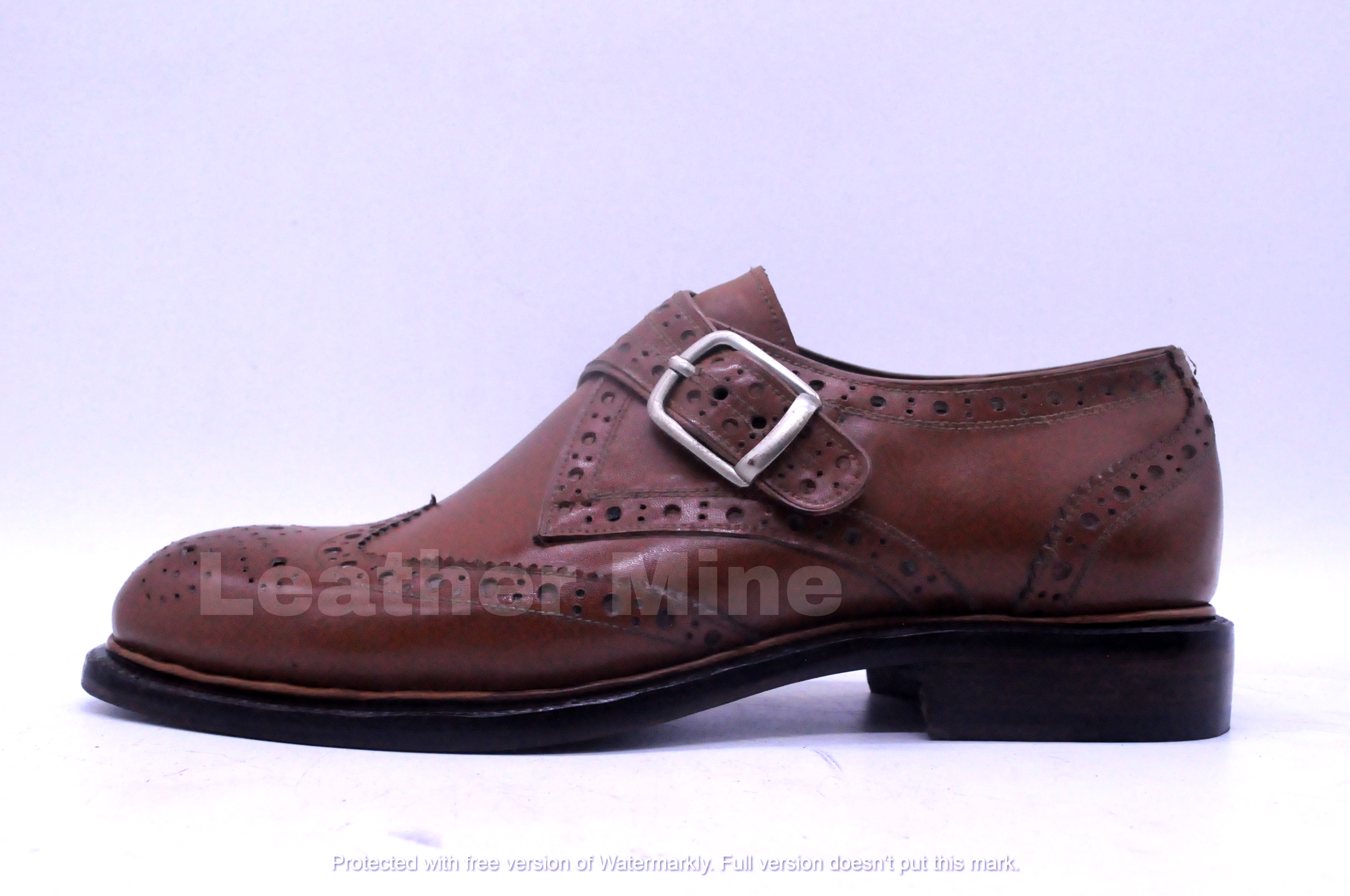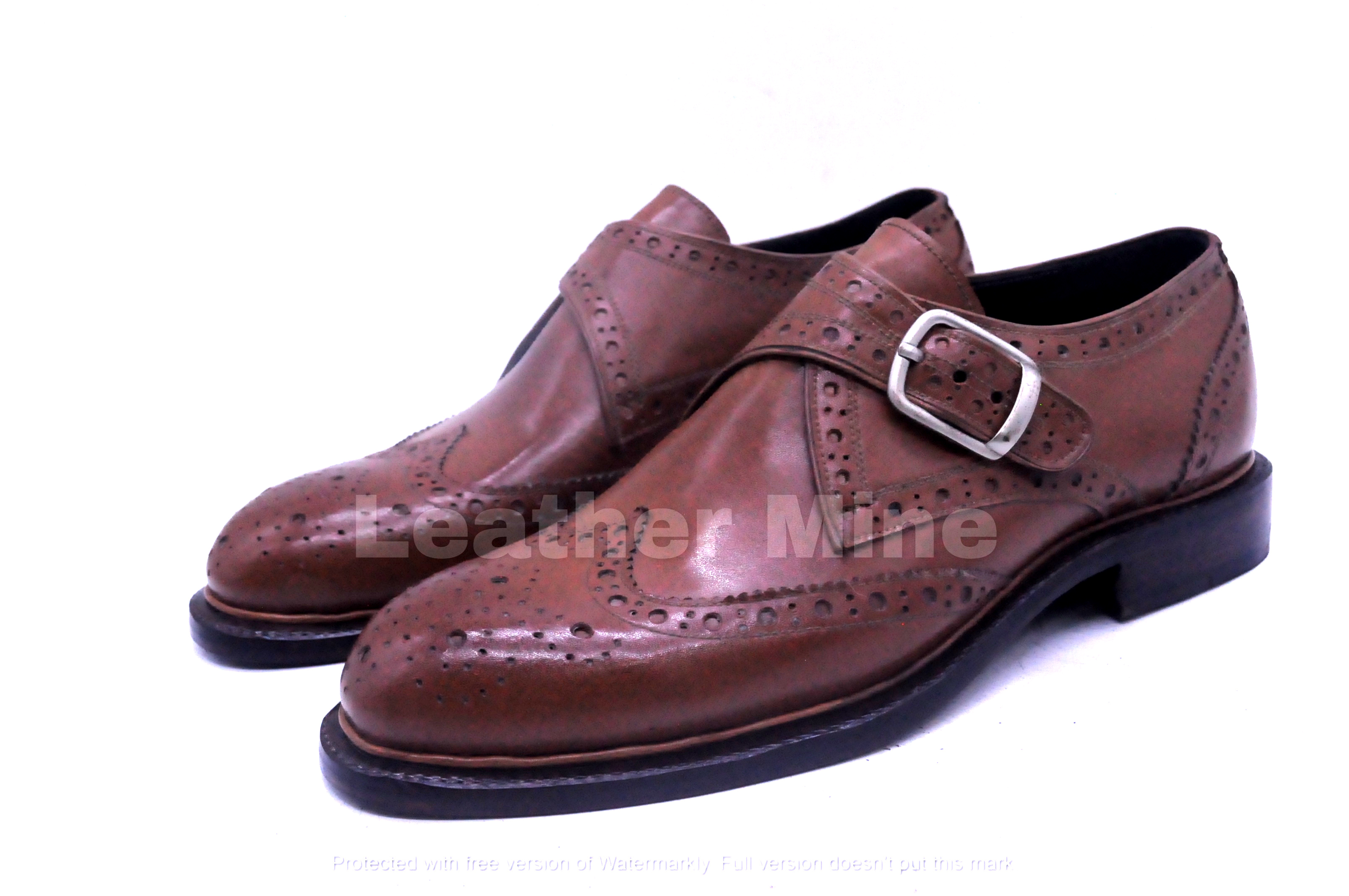 Wingtip Brogue Leather Dress Shoes Men's Handmade Brown Monk Shoes