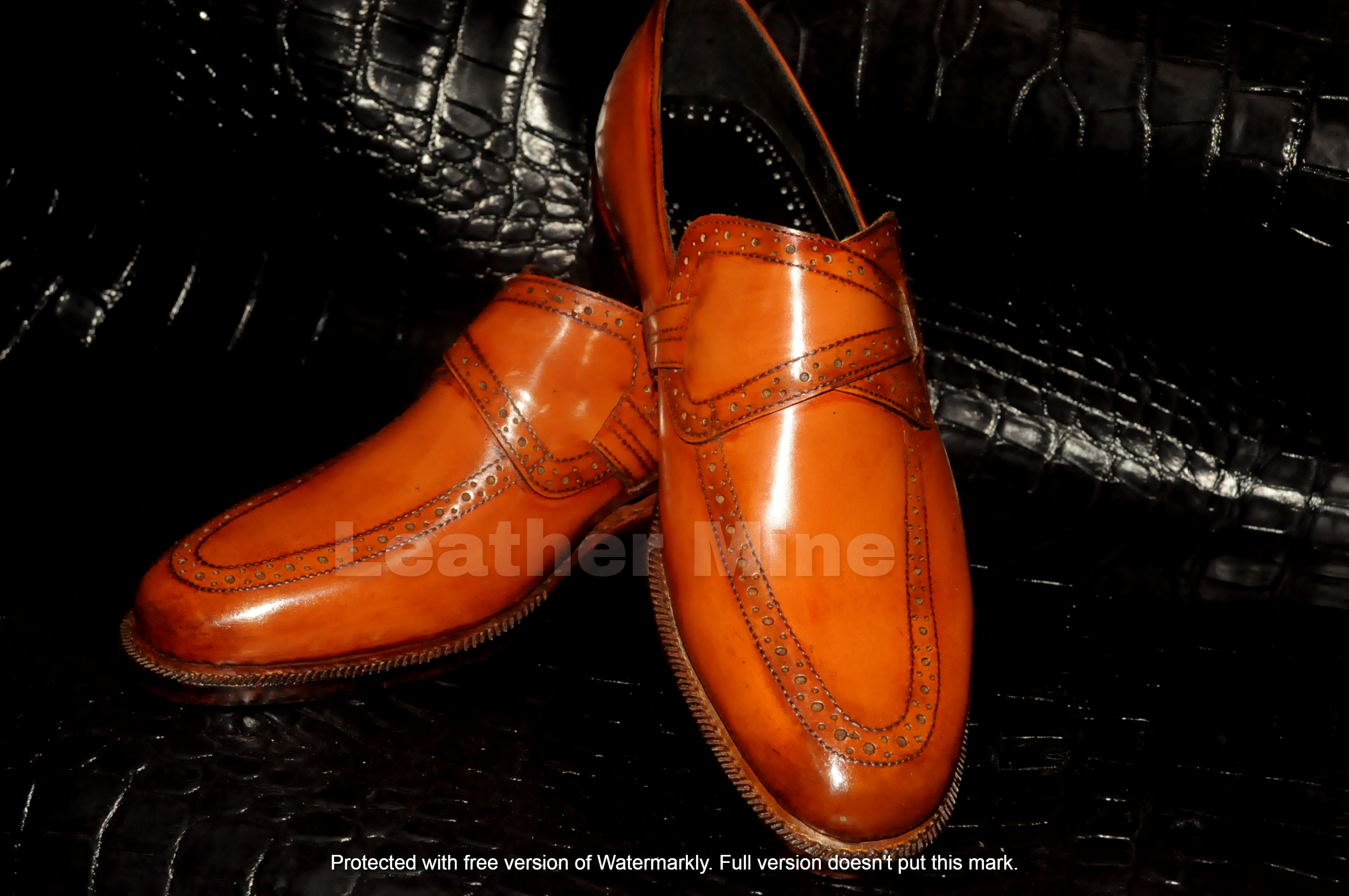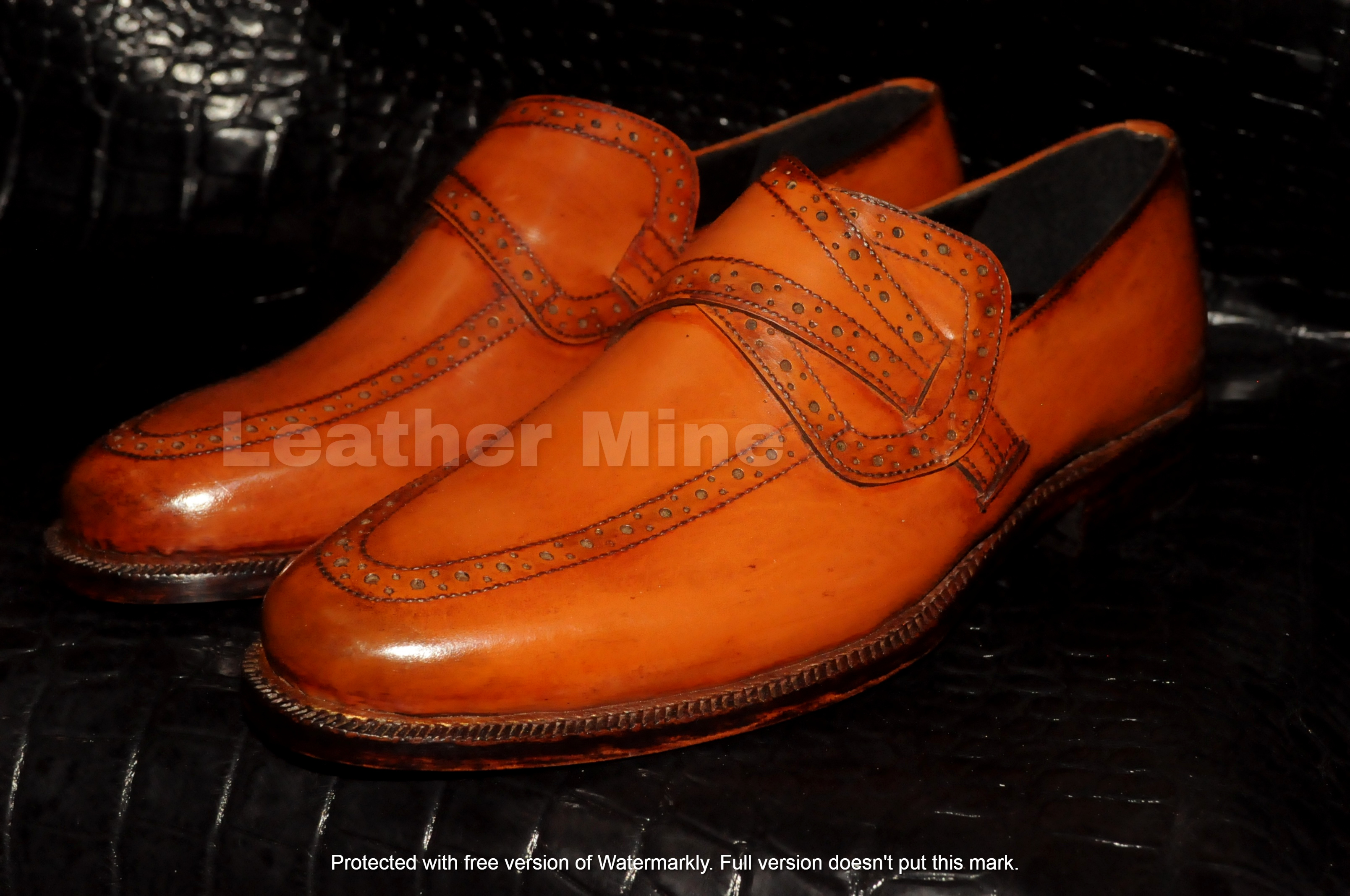 Tan Patina Loafers Leather shoes Men's, Handmade Leather Shoes