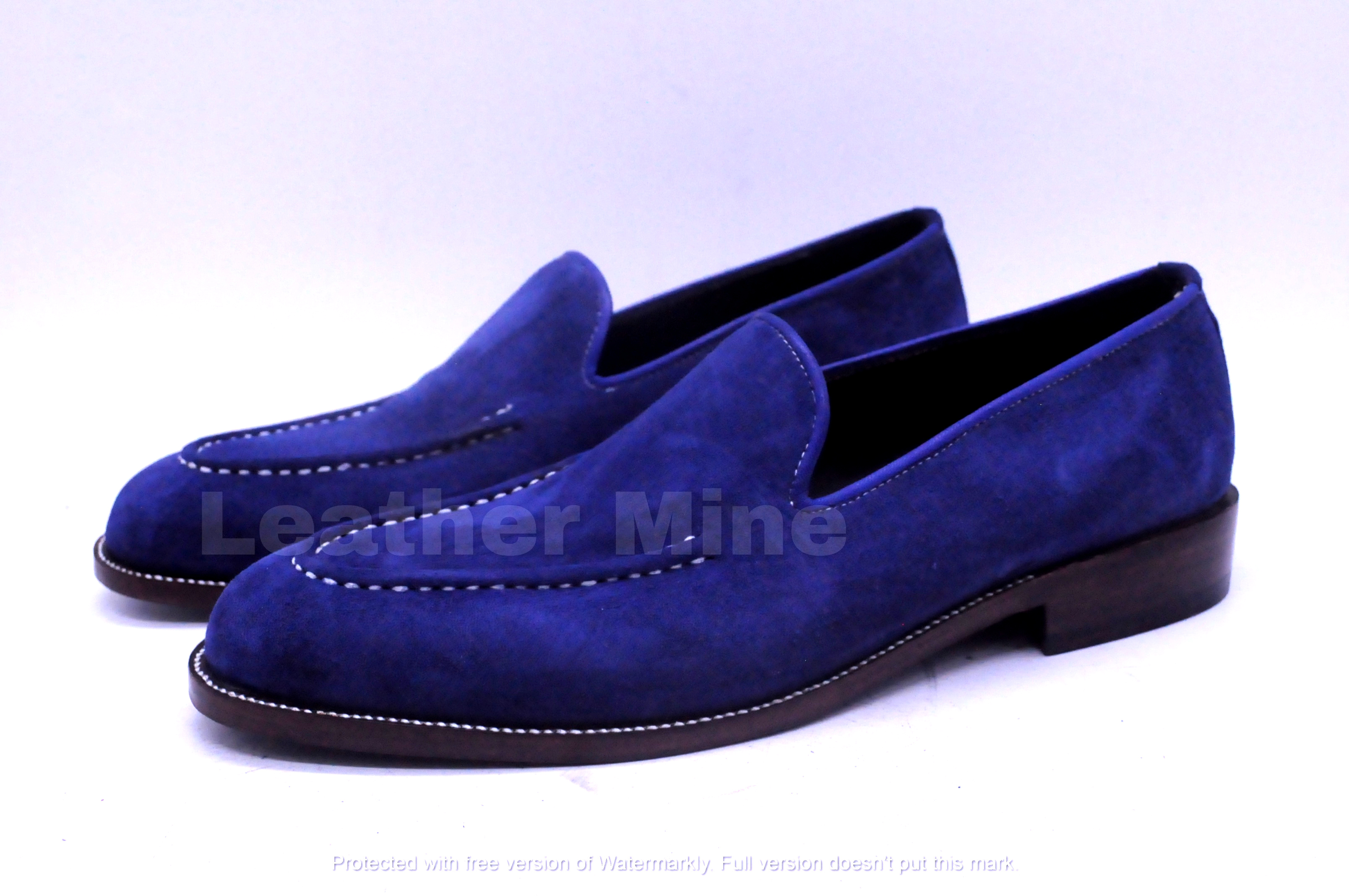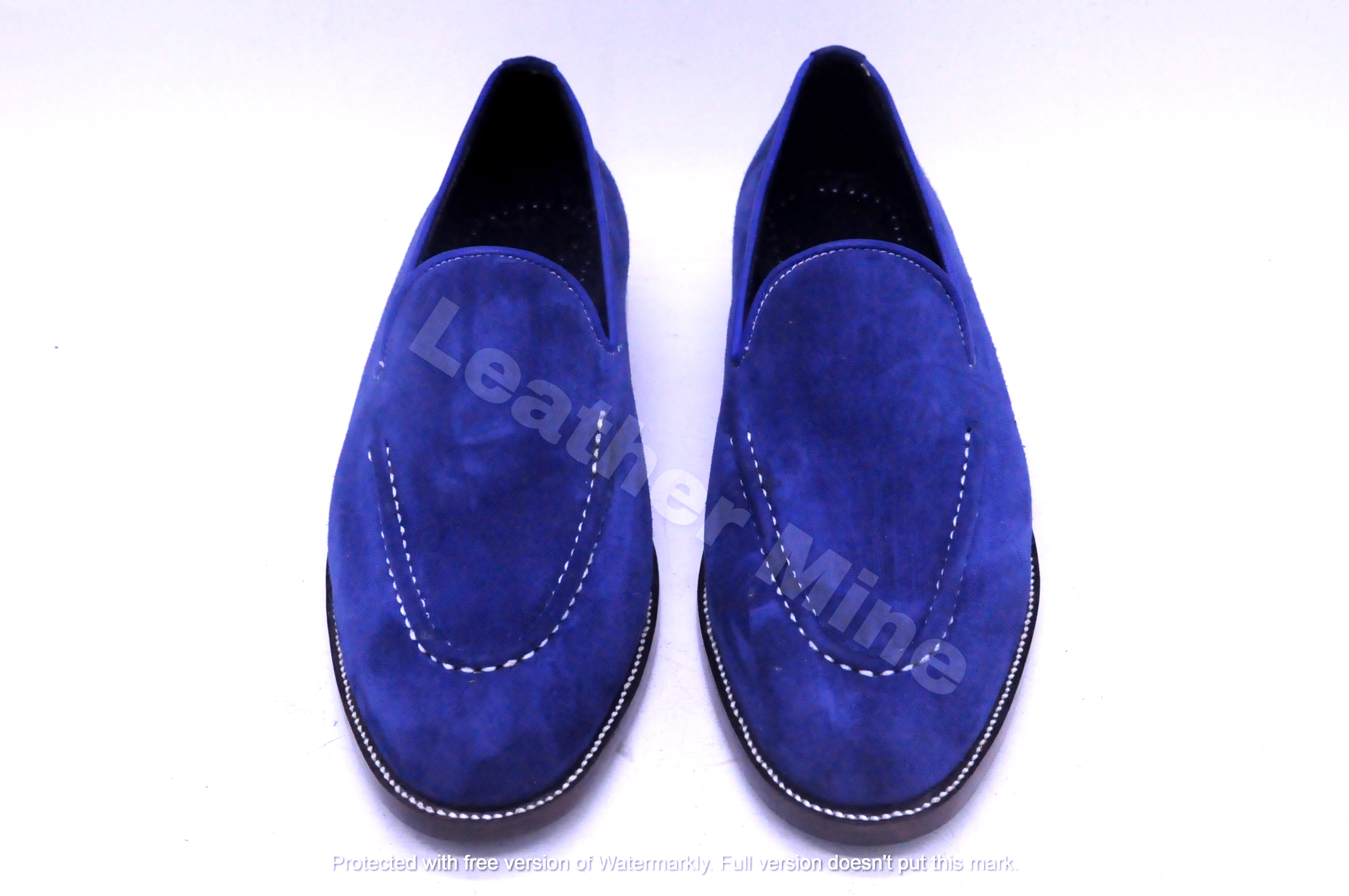 Men's Handmade Blue Suede Loafers Leather Dress Shoes For Men