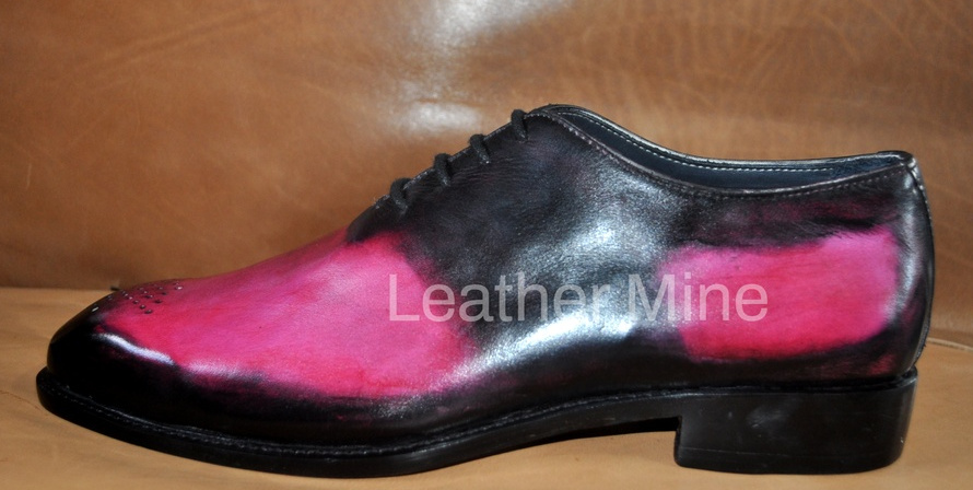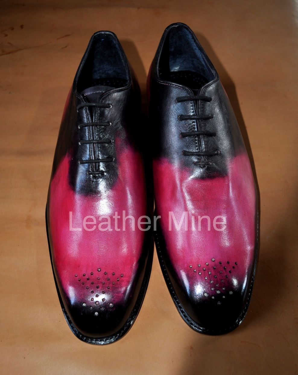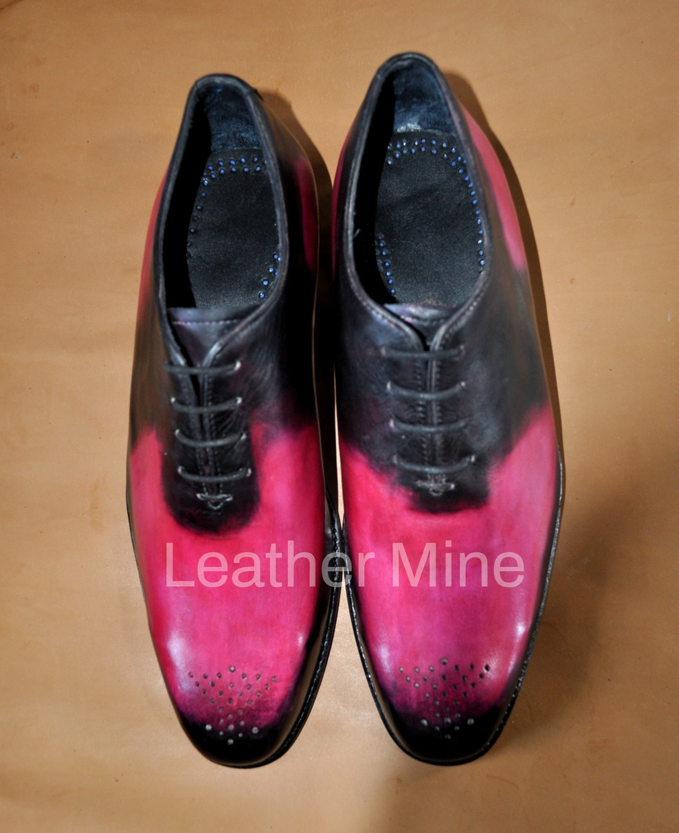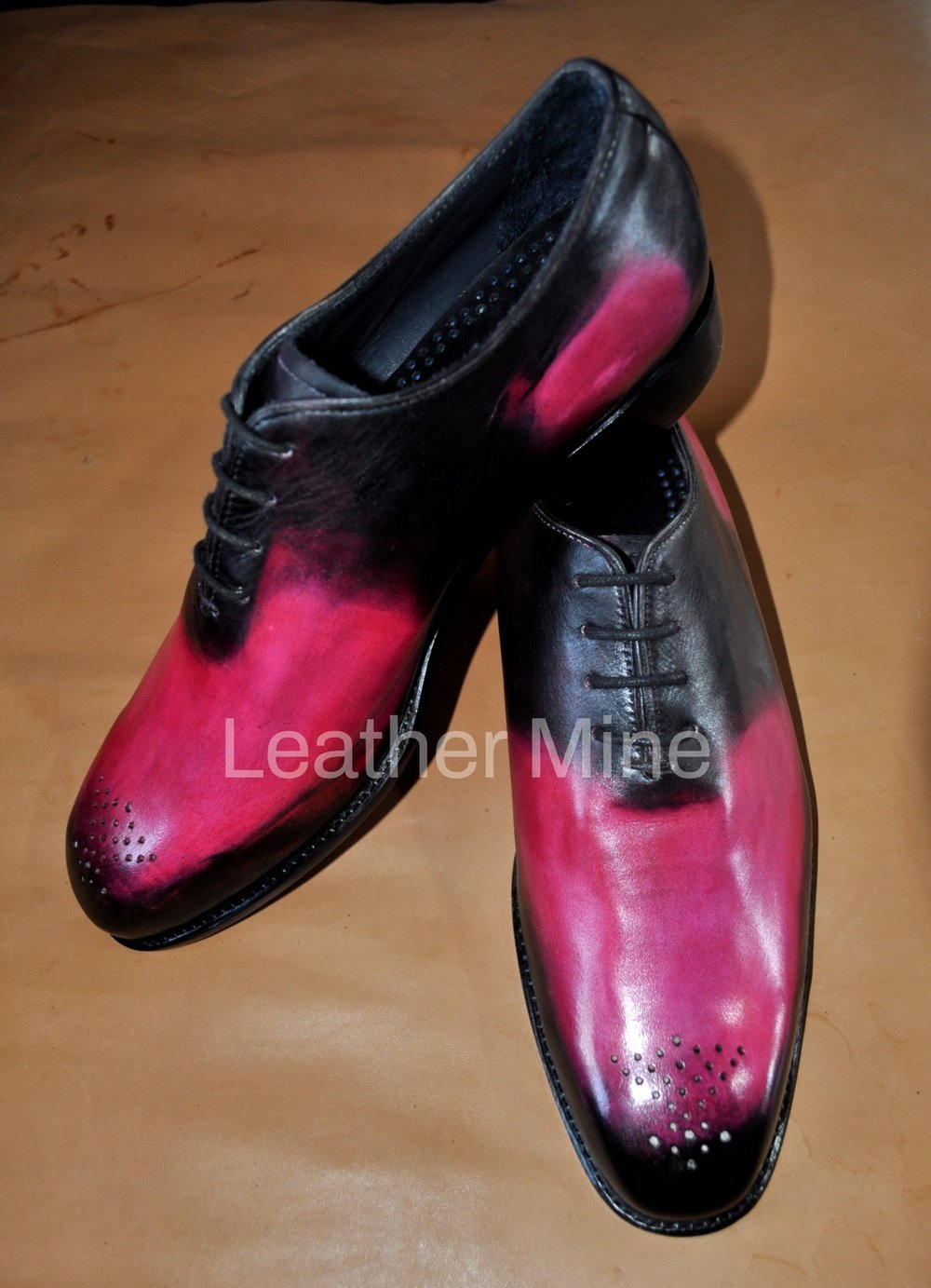 Pink Patina Whole Cut Oxfords Dress Shoes For Men, Handmade Leather Shoes