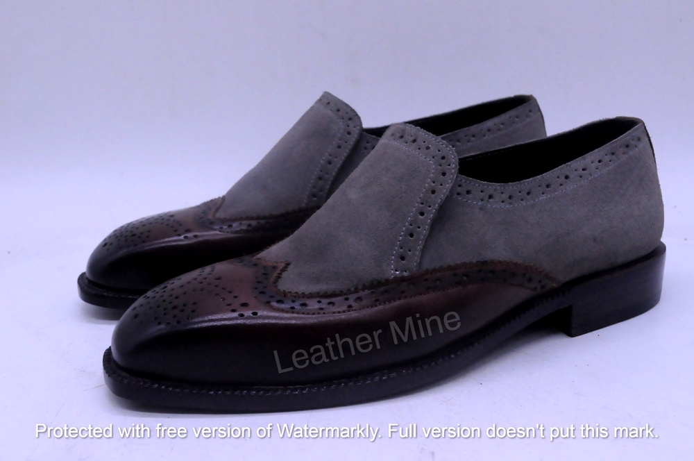 Wingtip Two Tone Handmade Leather Loafer Dress Shoes Men's,Handmade Loafers Shoes