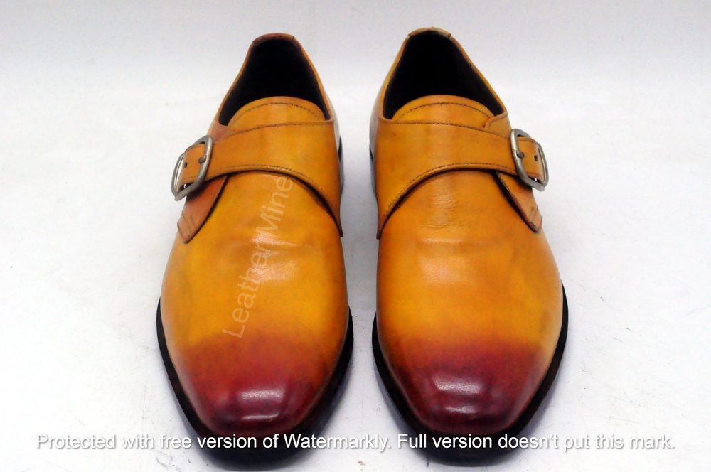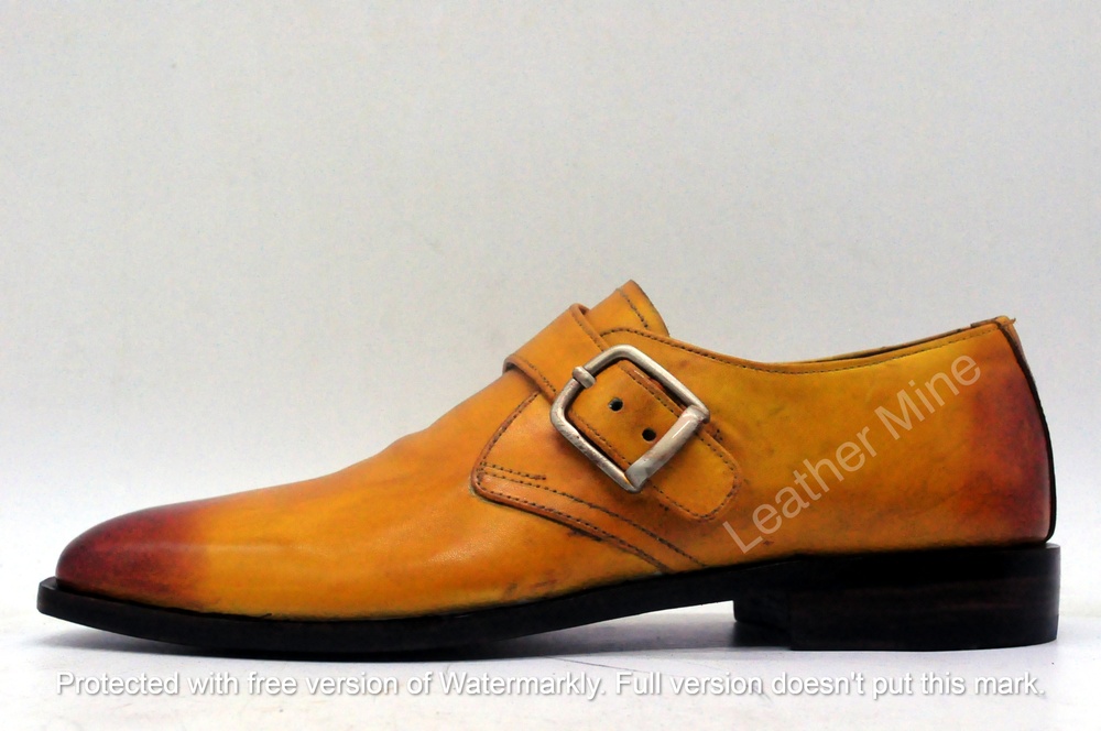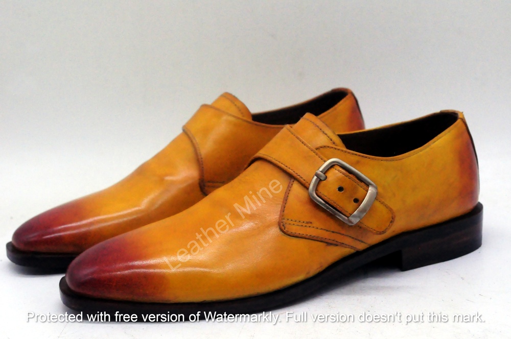 Handmade Yellow Monk Strap Leather Shoes Men', Formal Shoes
