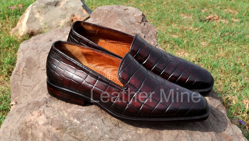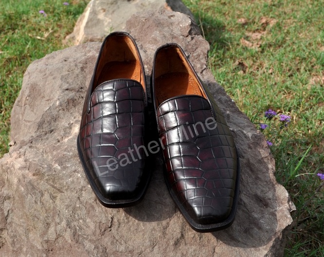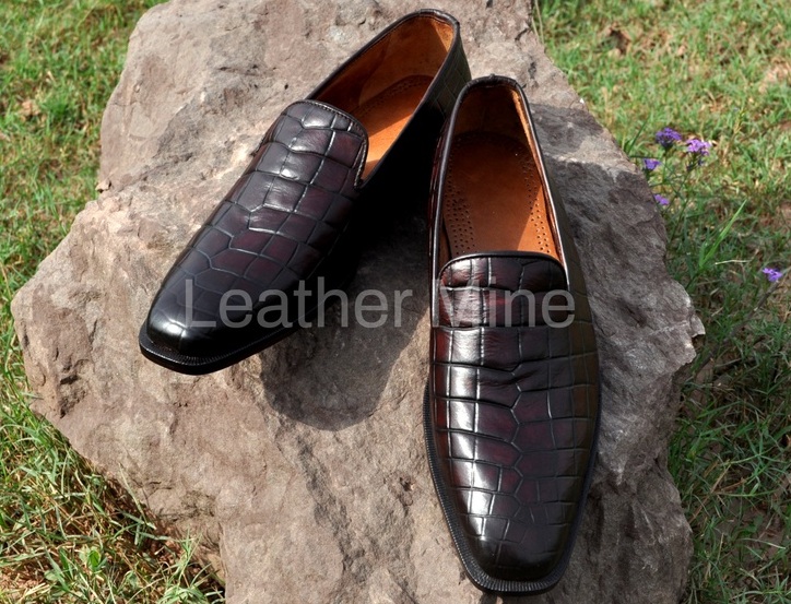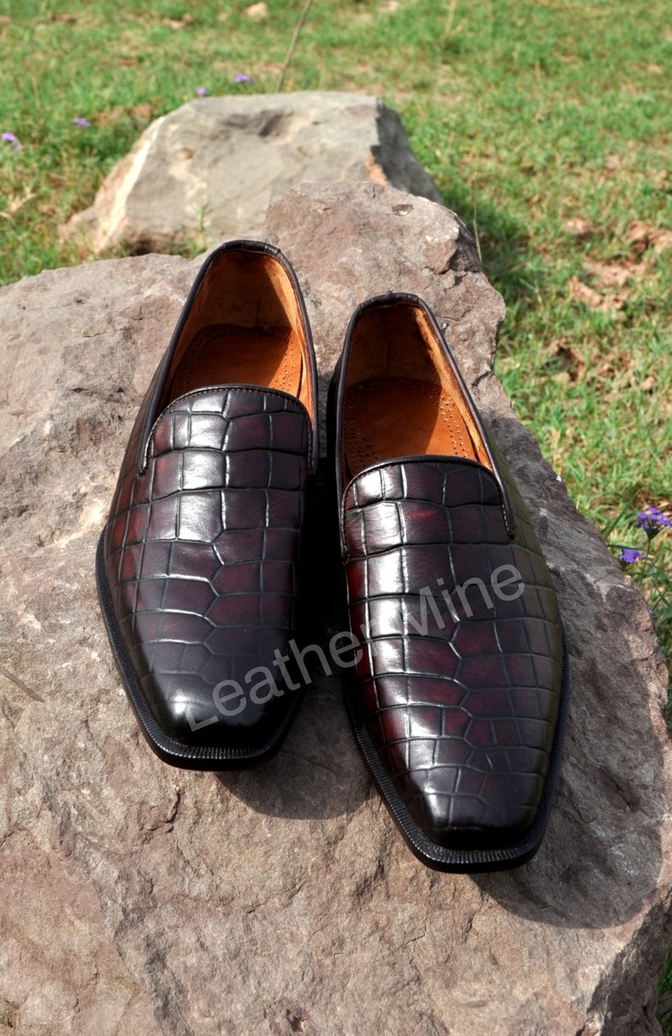 Crocodile Impression Loafers Dress shoes Men's, Handmade Leather Shoes