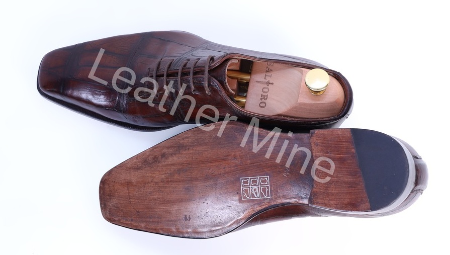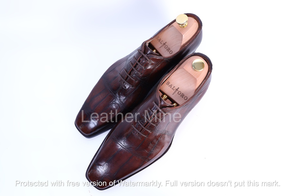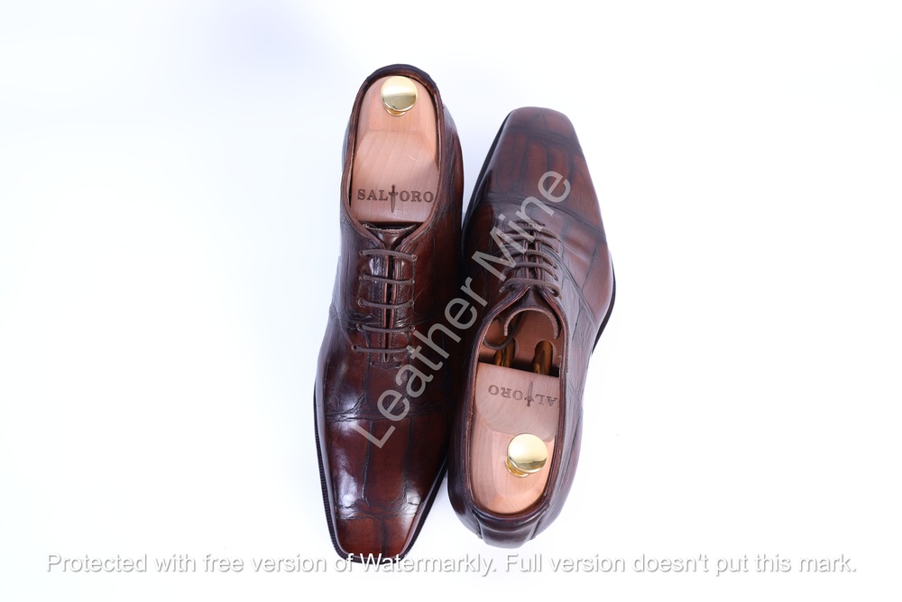 Handmade Brown with Black Shading Crocodile Impression Leather Men's Shoes, Formal Shoes, Dress Shoes Lace Up Shoes