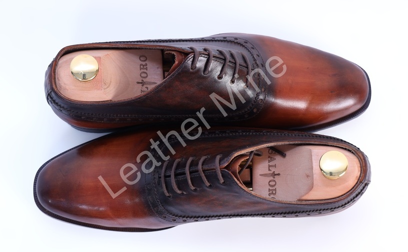 Patina Handmade Semi Brogue Oxfords Leather Men's Shoes, Formal Shoes, Dress Shoes Lace Up Shoes