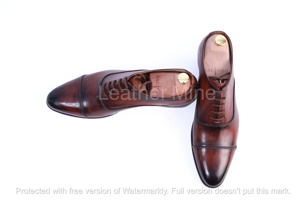 Brown Patina Oxfords Dress shoes Men's, Handmade Leather Shoes