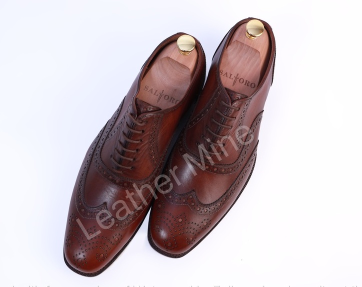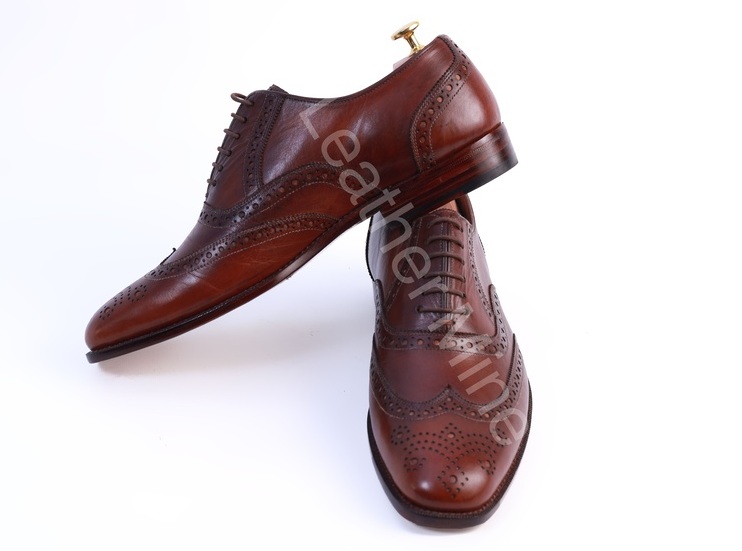 Brown Full Brogue Wingtip Oxfords Dress shoes Men's, Handmade Leather Shoes