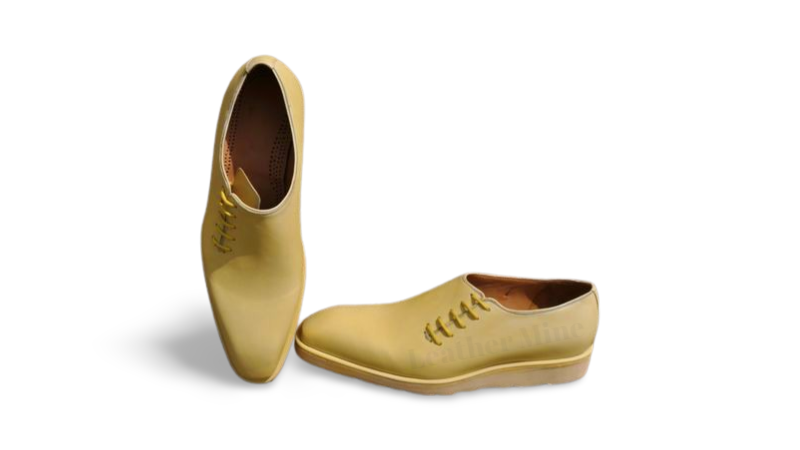 Handmade Yellow Patina Side laces Oxfords Dress shoes Men's, Handmade Leather Shoes