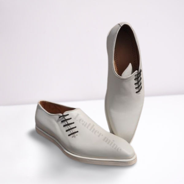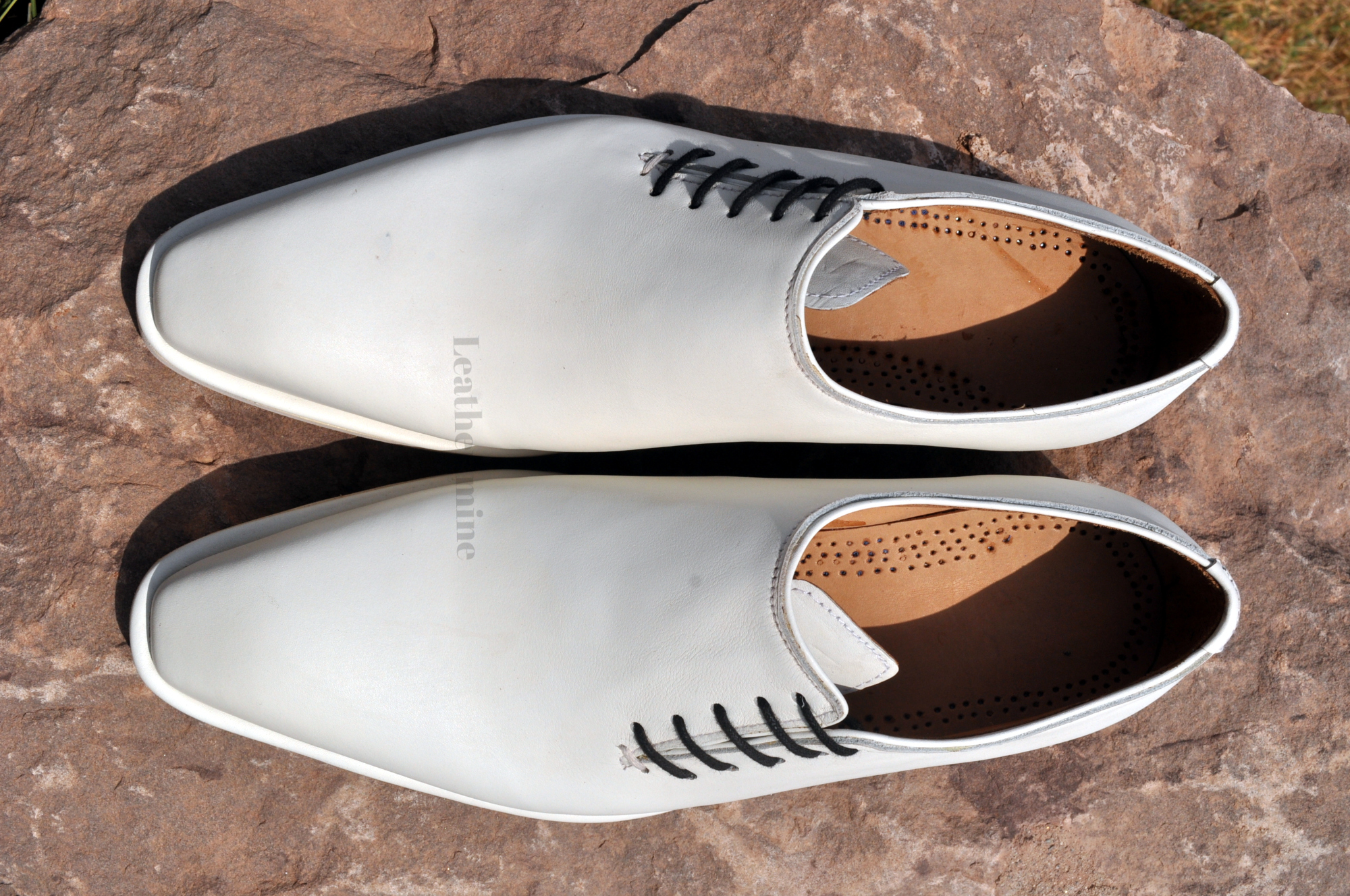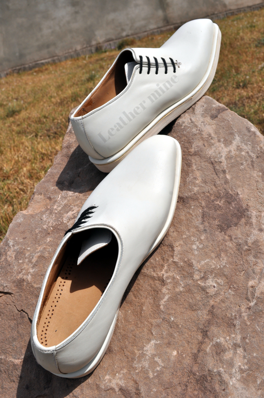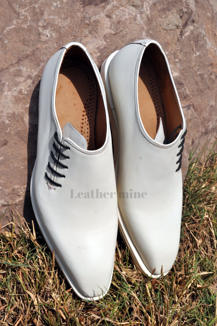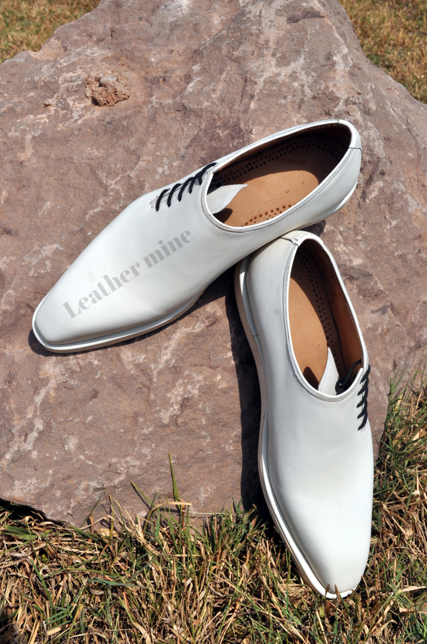Handmade White Leather Side laces Oxfords Dress shoes Men's, Handmade Leather Shoes
