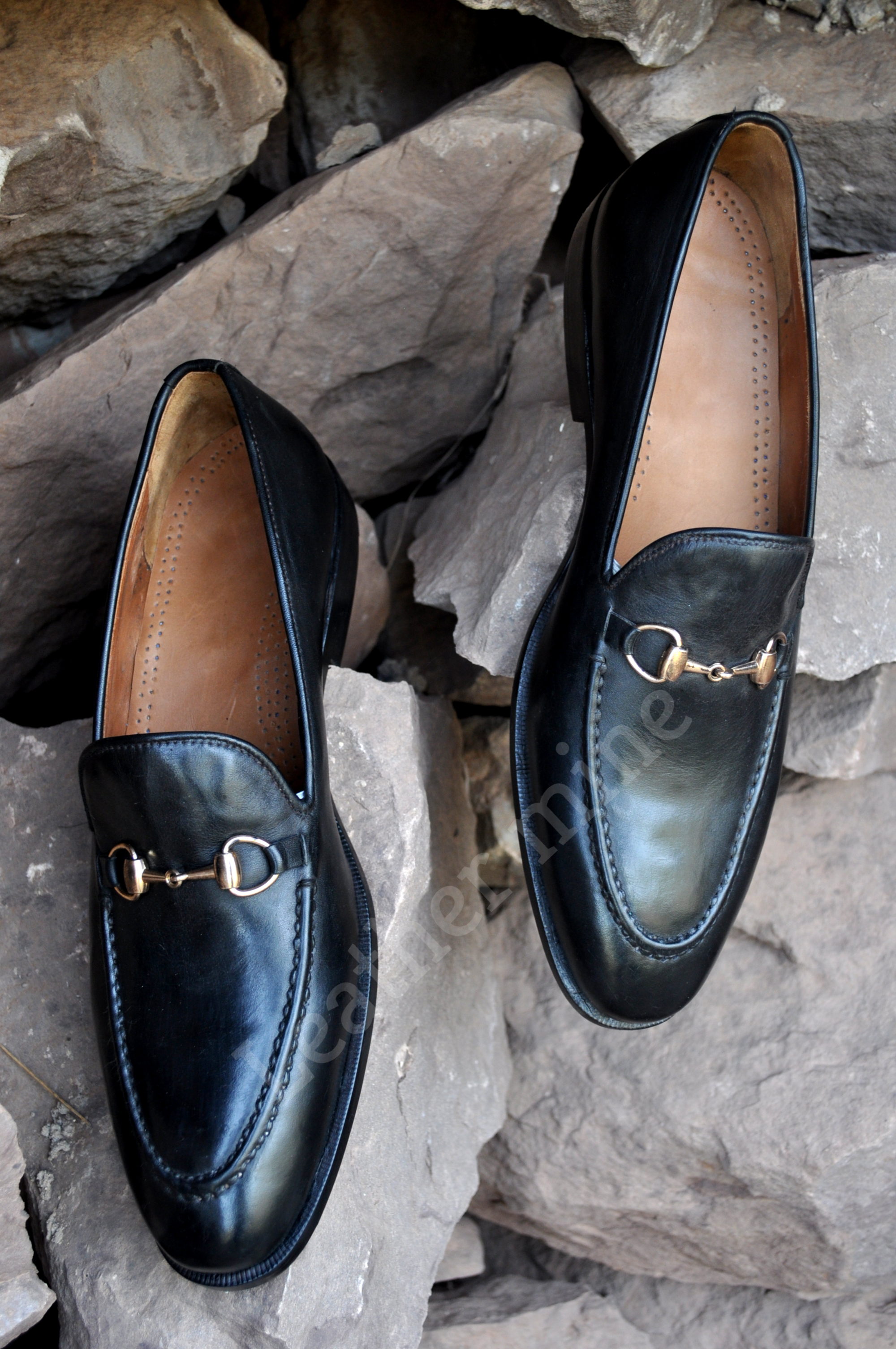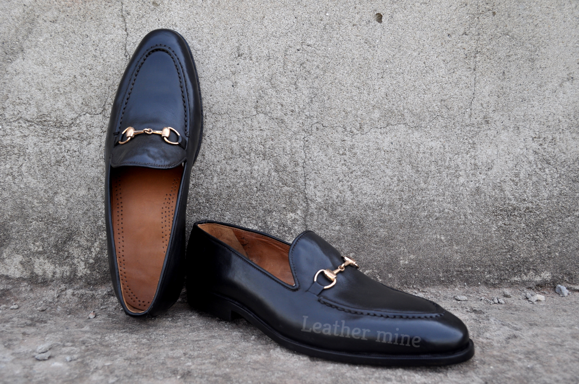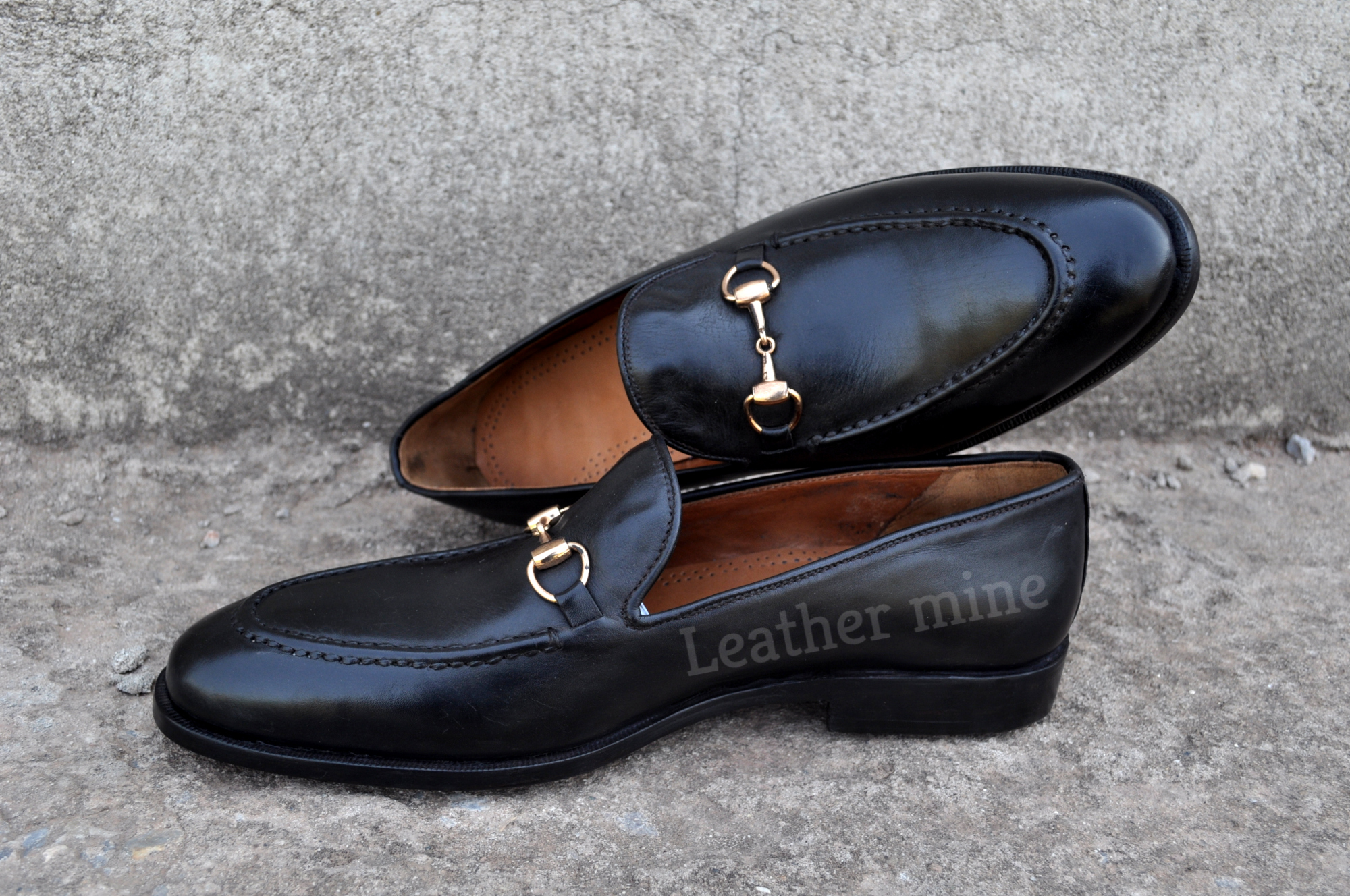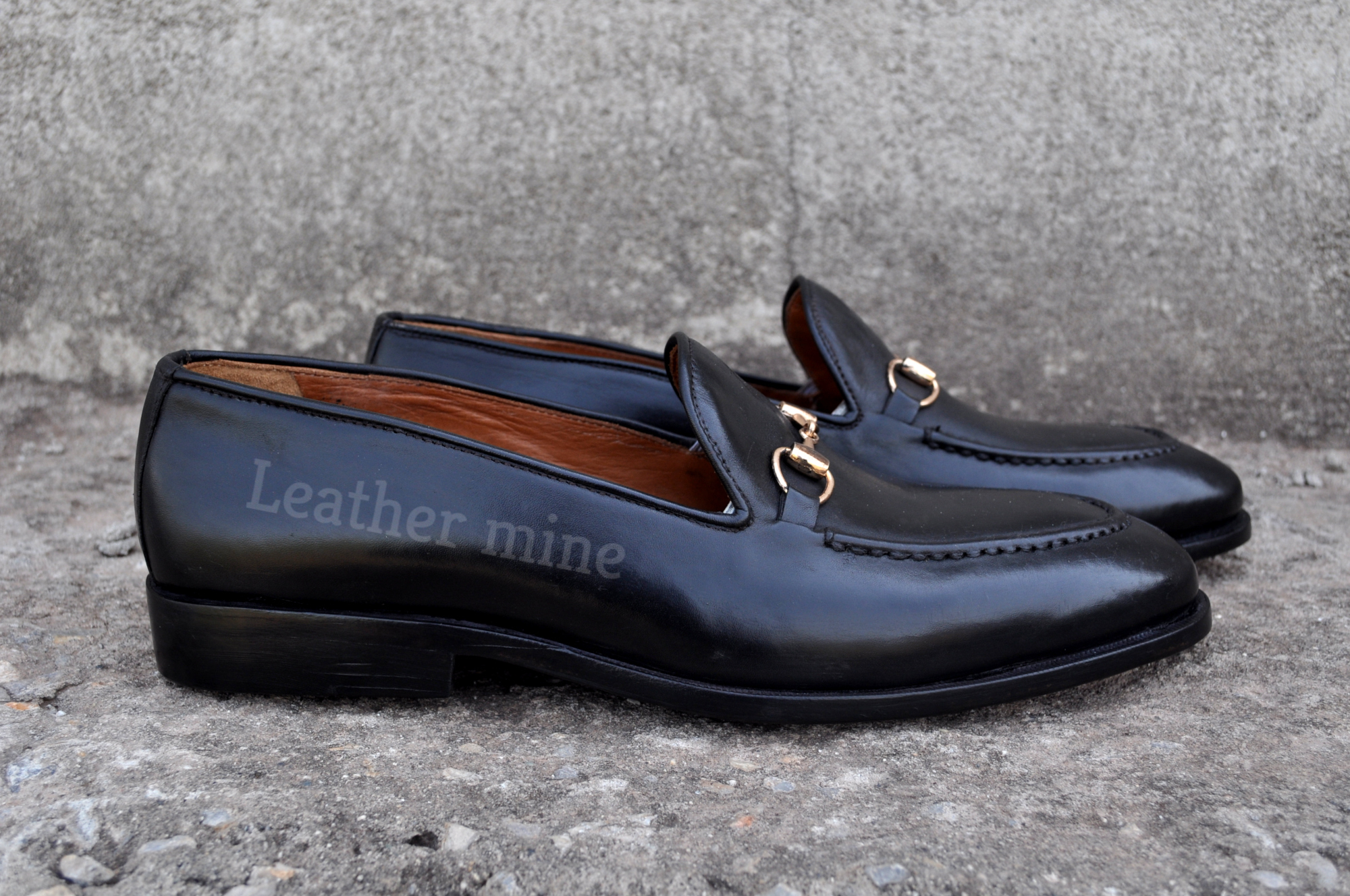 Handmade Leather Black Loafers Dress shoes Men's, Handmade Leather Shoes