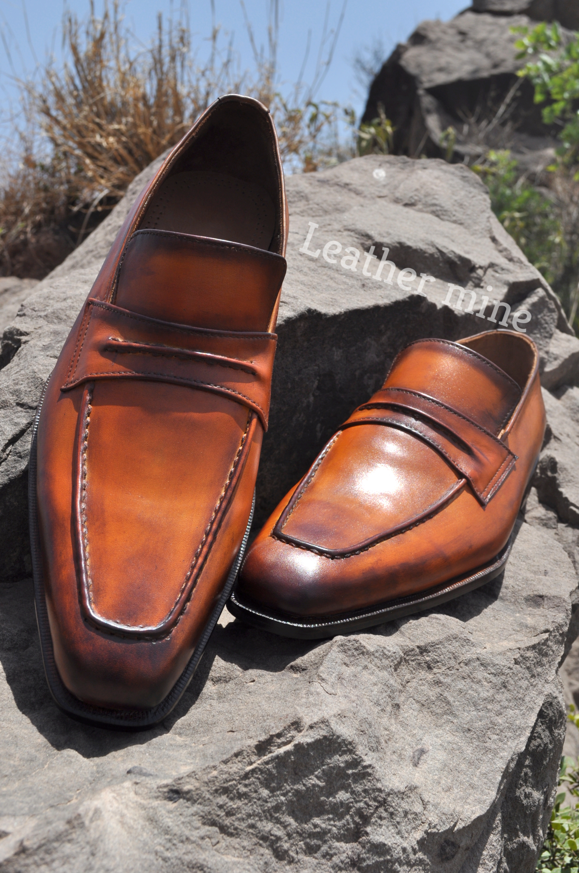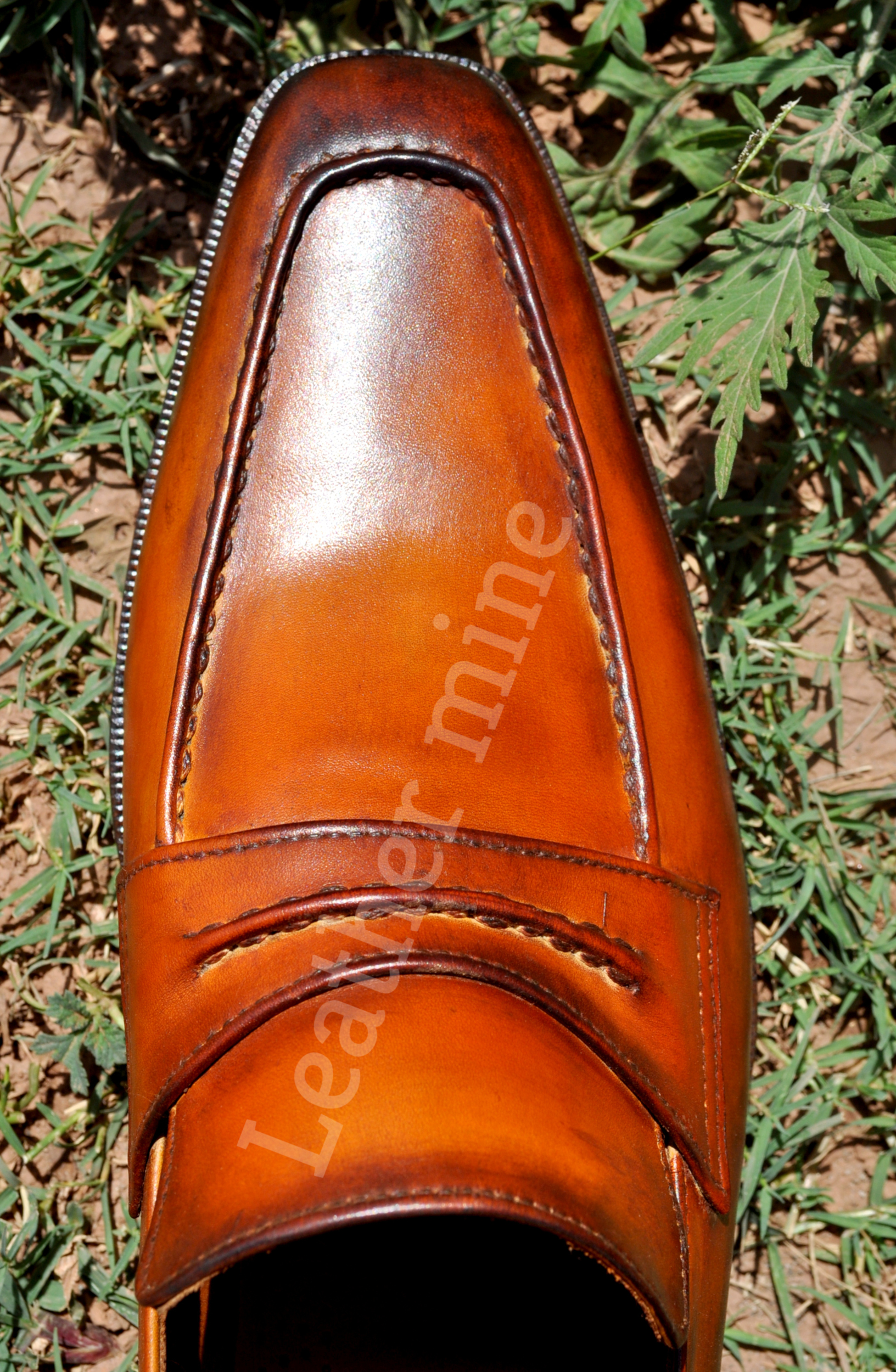Best Handmade Leather Brown Patina Loafers Dress shoes Men's, Handmade Leather Shoes