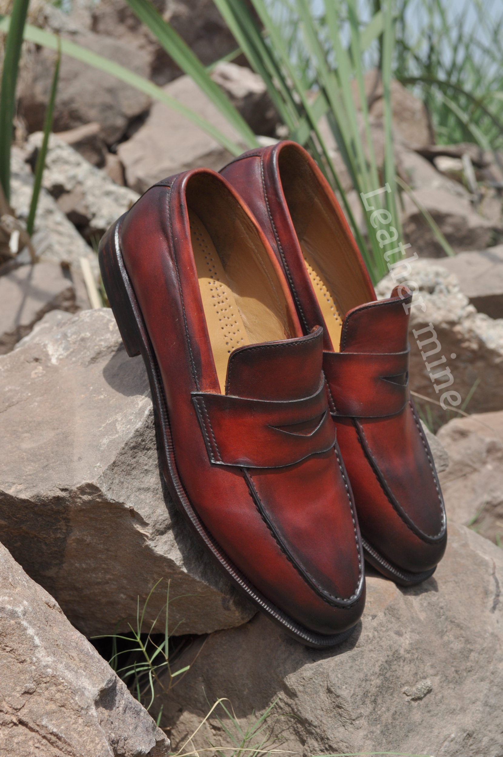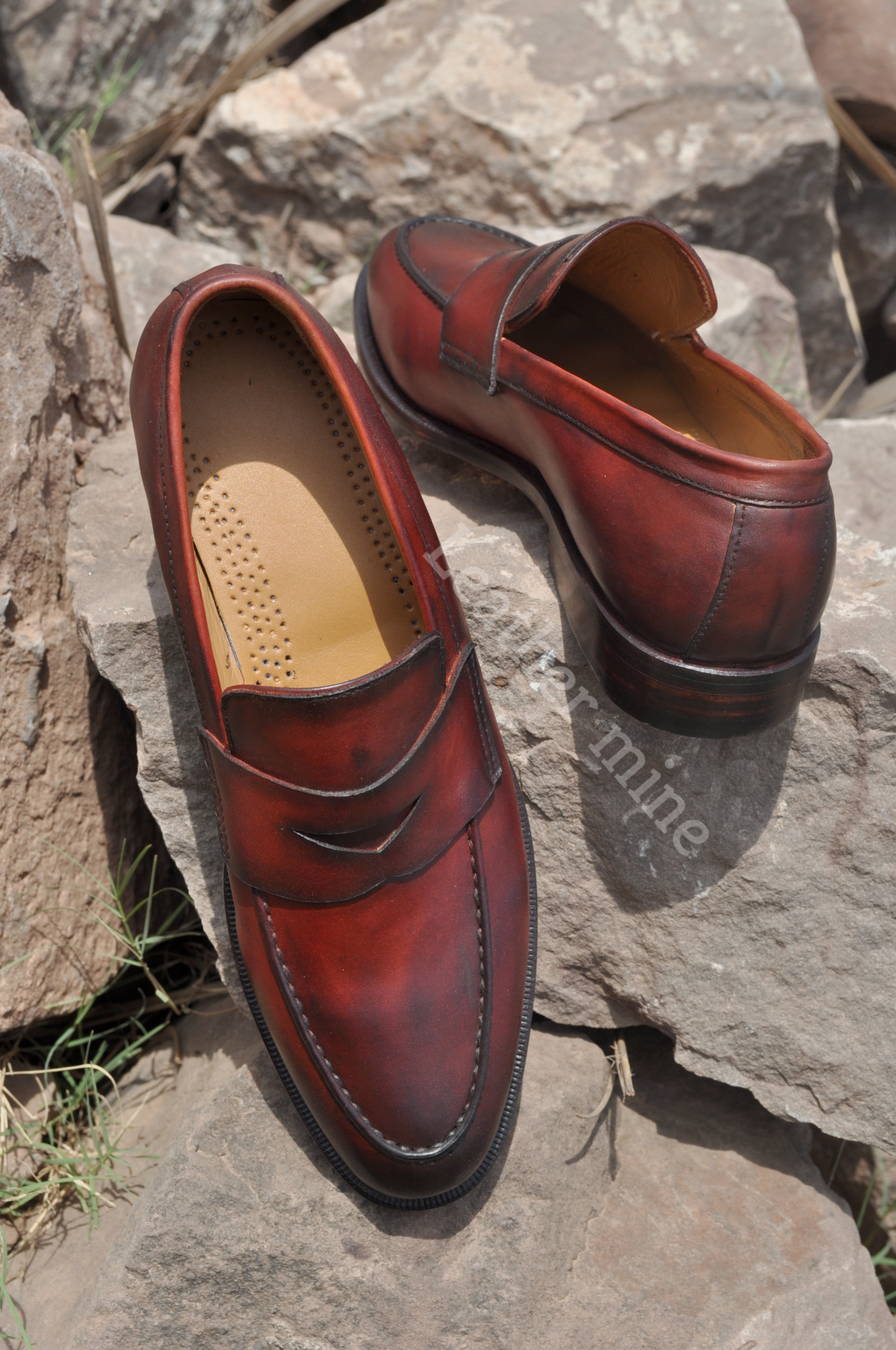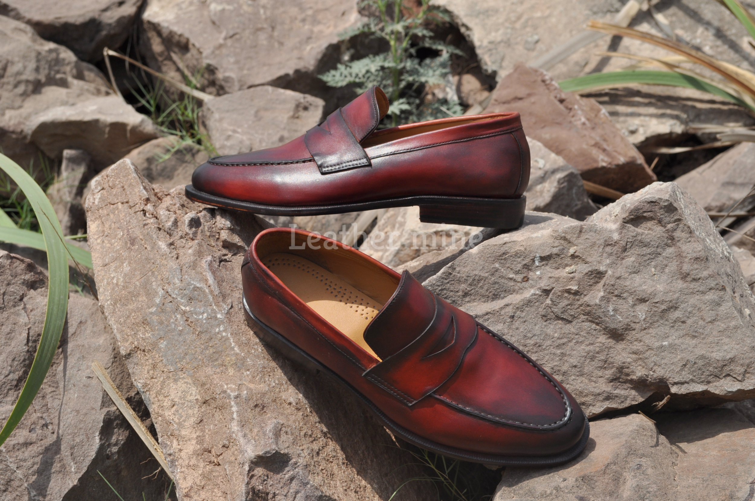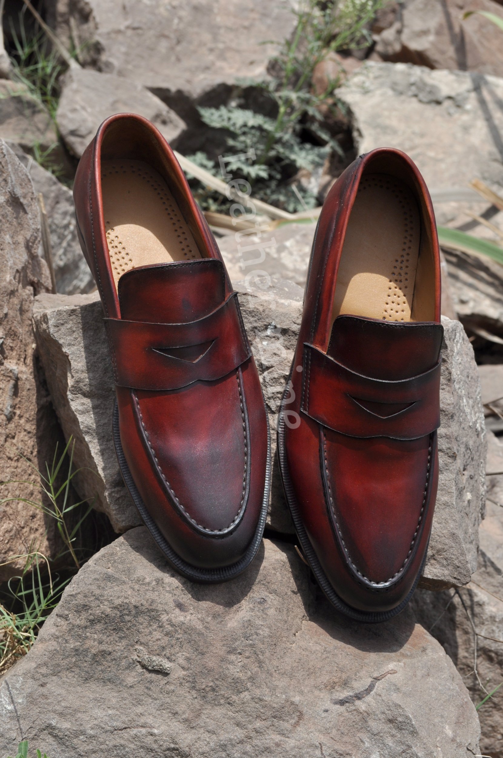 Handmade Red Patina Leather Loafers Dress shoes Men's, Handmade Leather Shoes