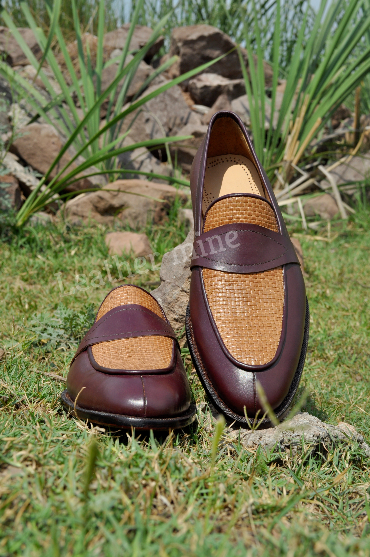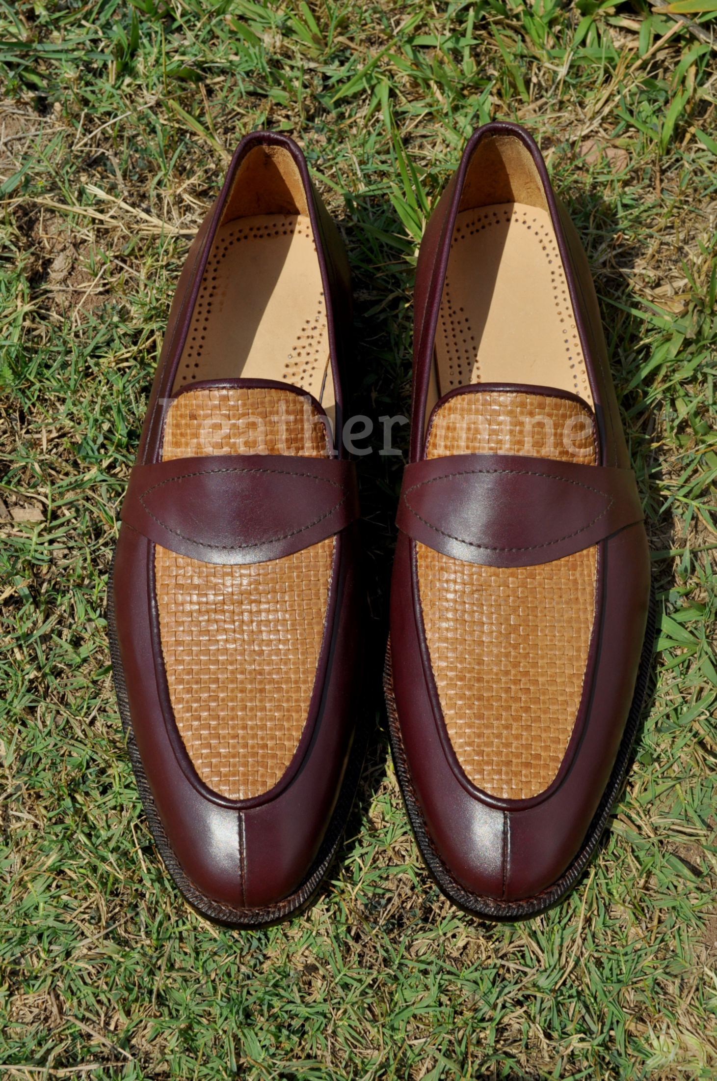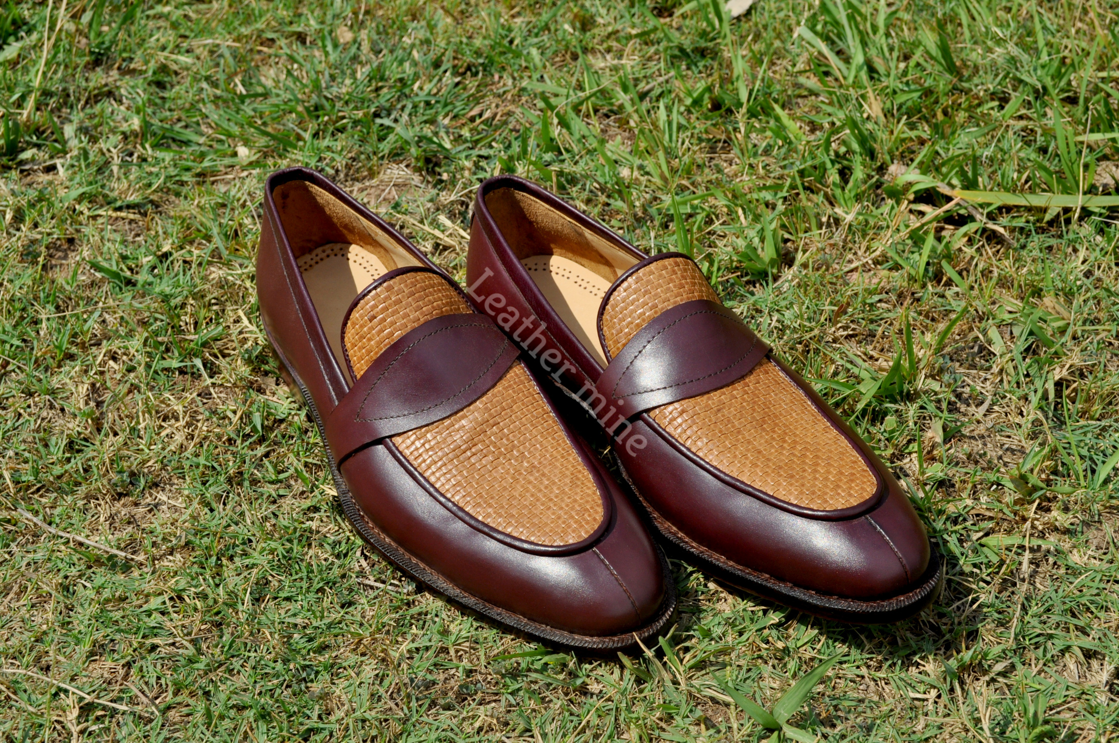 Handmade Two Tone Leather Loafers Dress shoes Men's, Handmade Leather Shoes