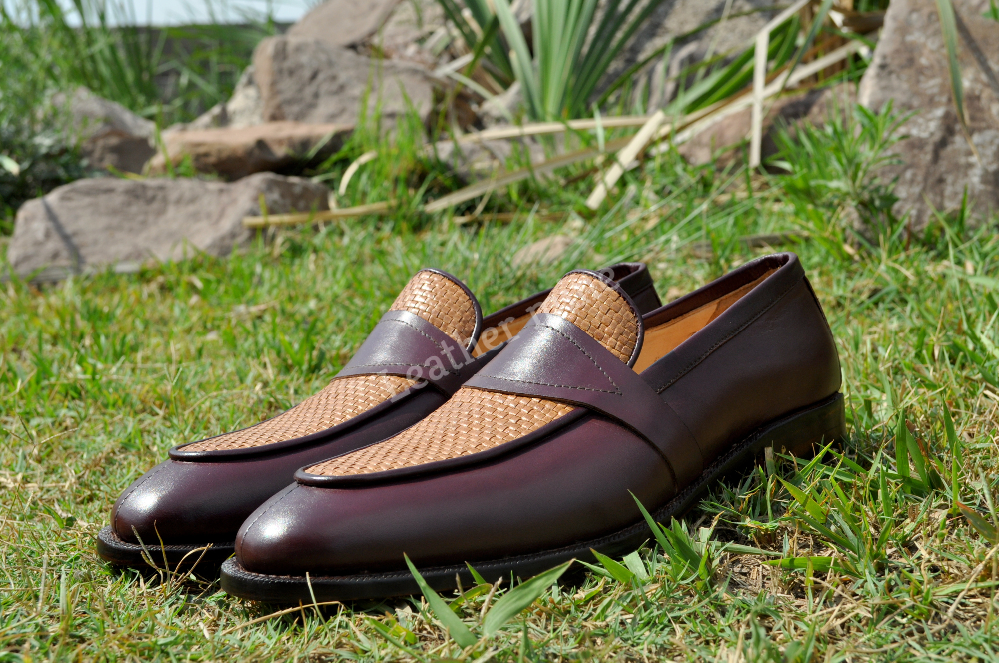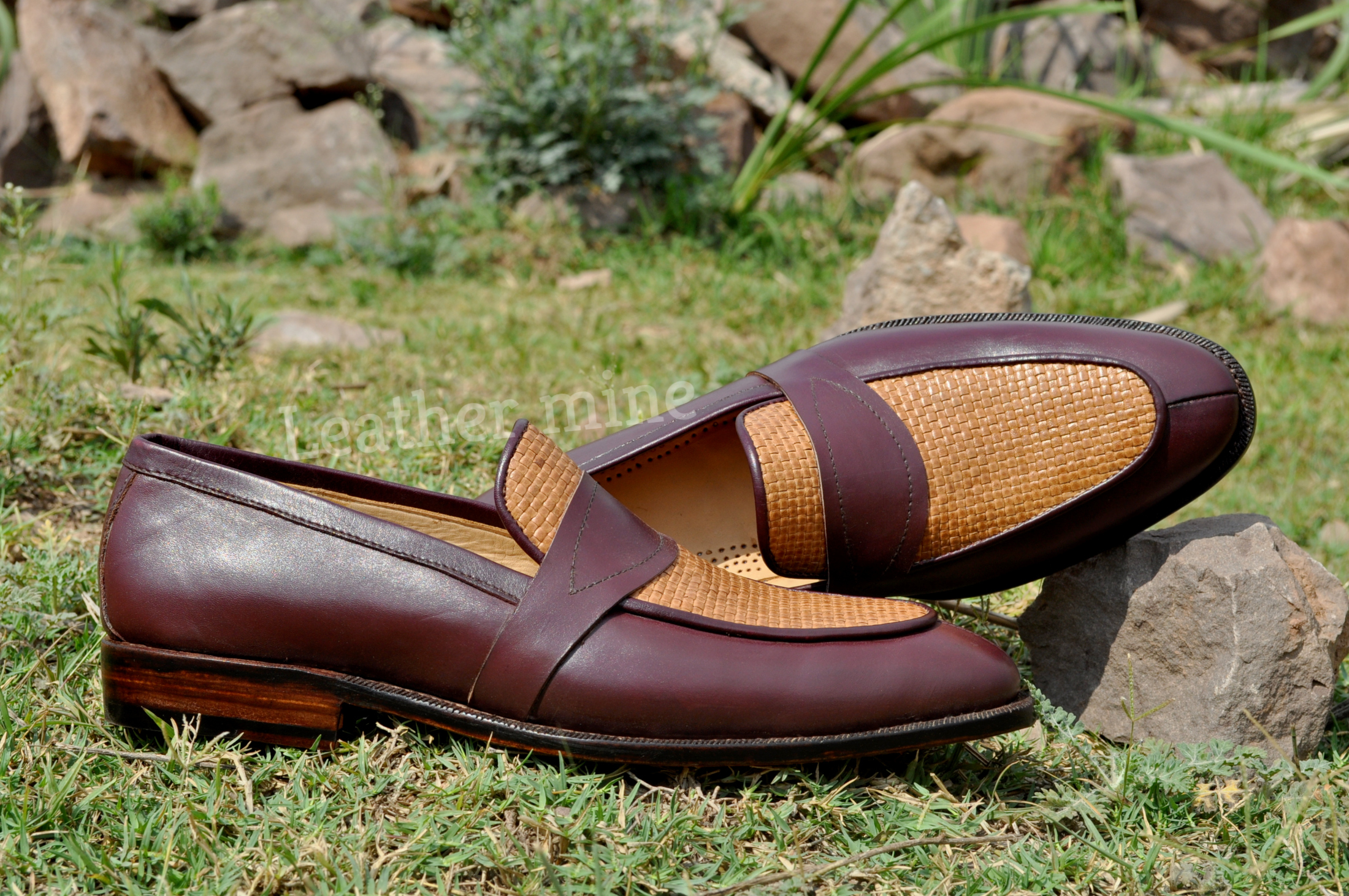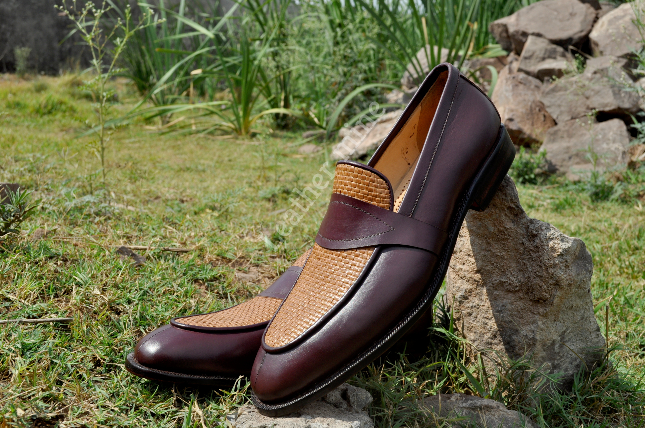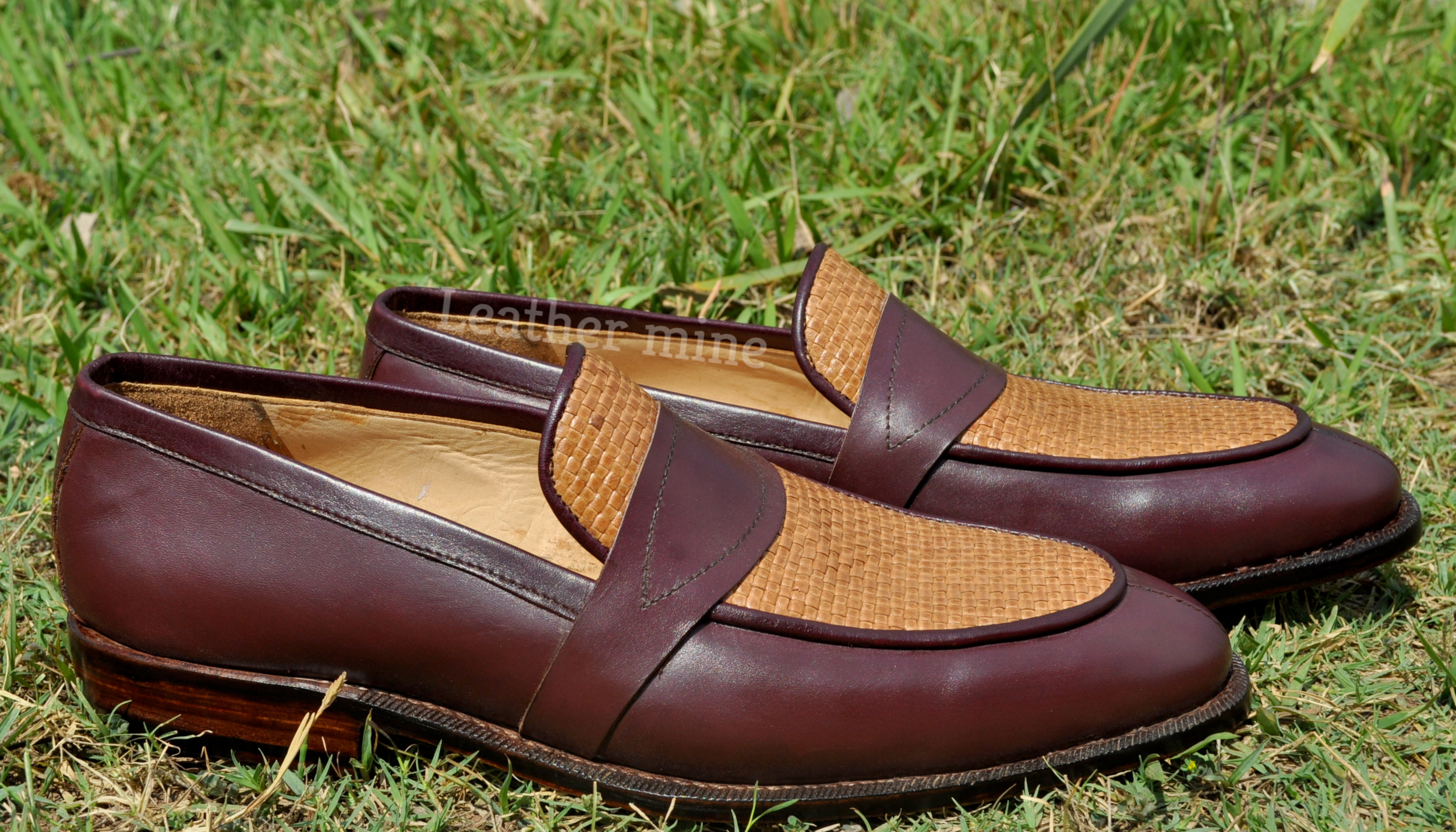 Handmade Two Tone Leather Loafers Dress shoes Men's, Handmade Leather Shoes