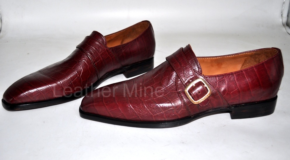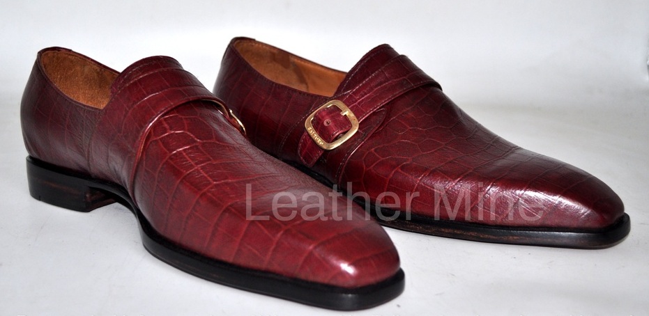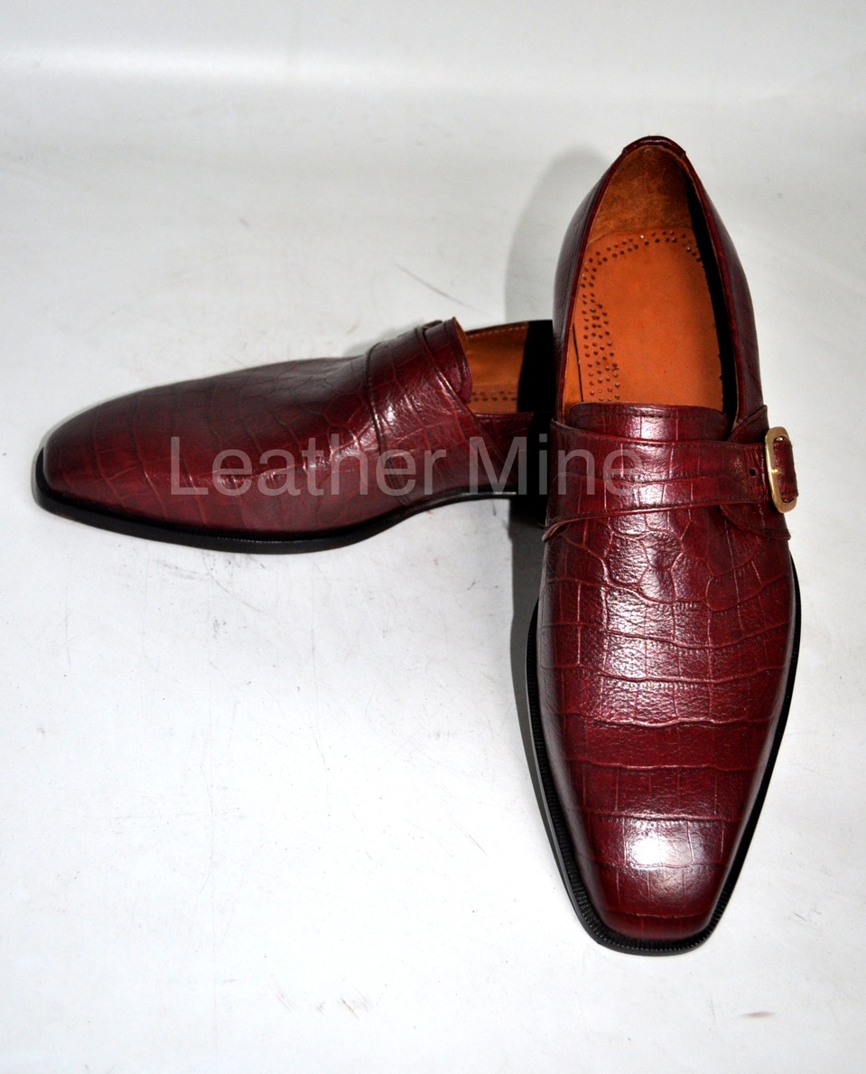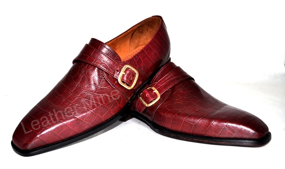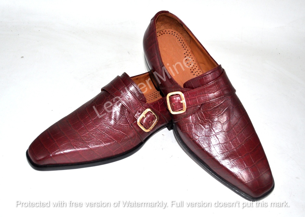 Handmade Purple Crocodile Impression Single Monk Shoes, Dress shoes Men's, Handmade Leather Shoes, Formal Shoes