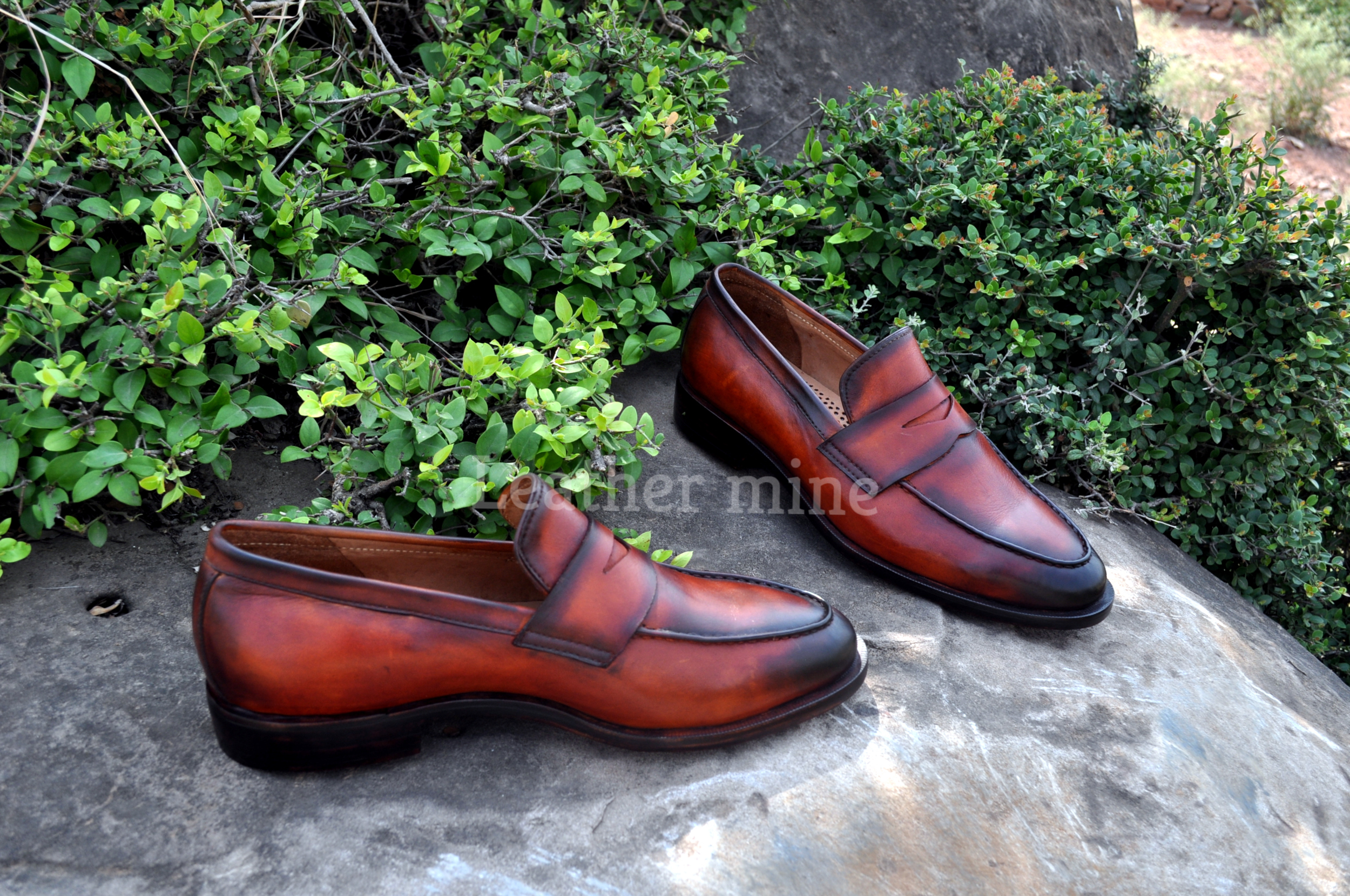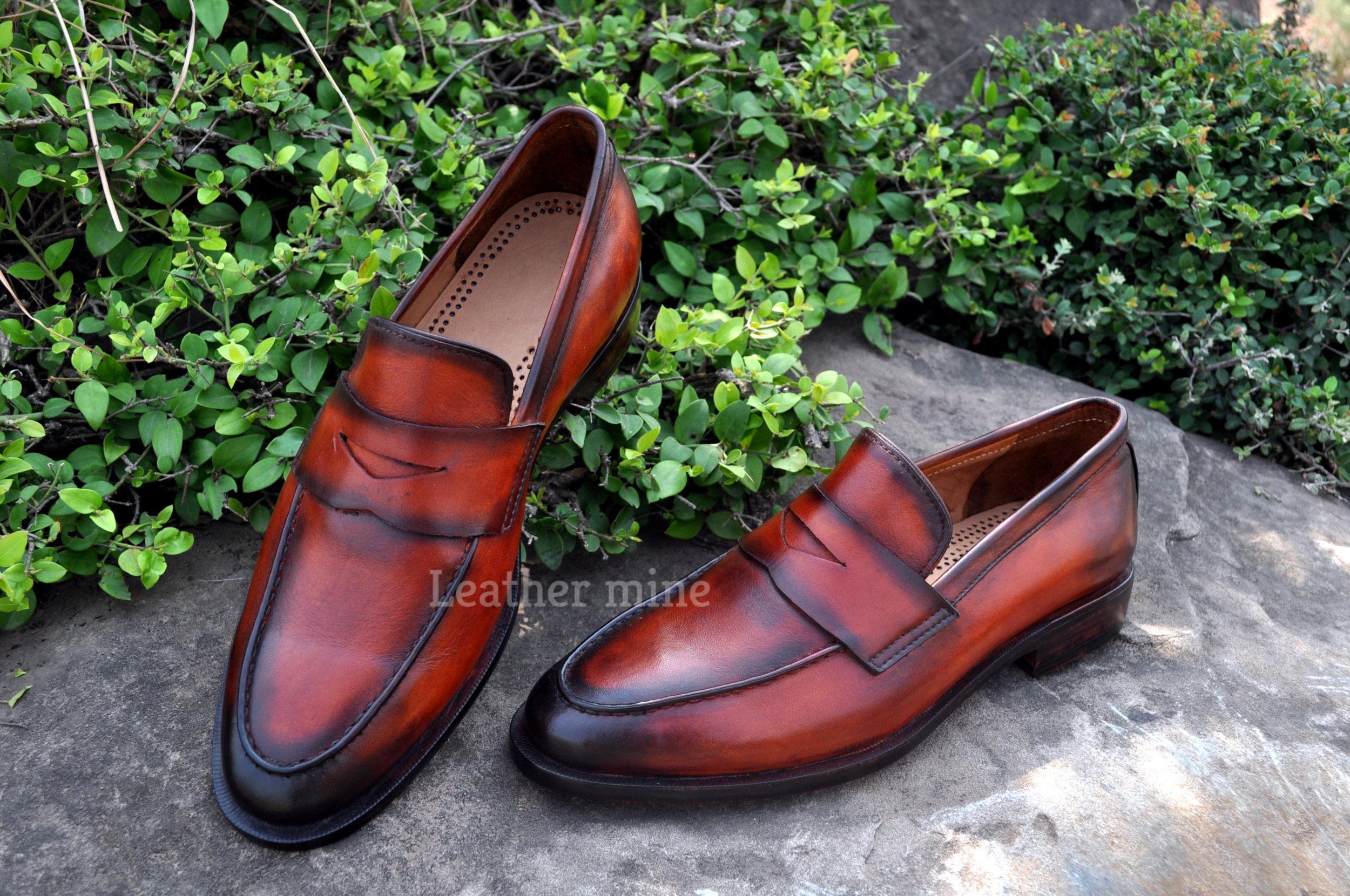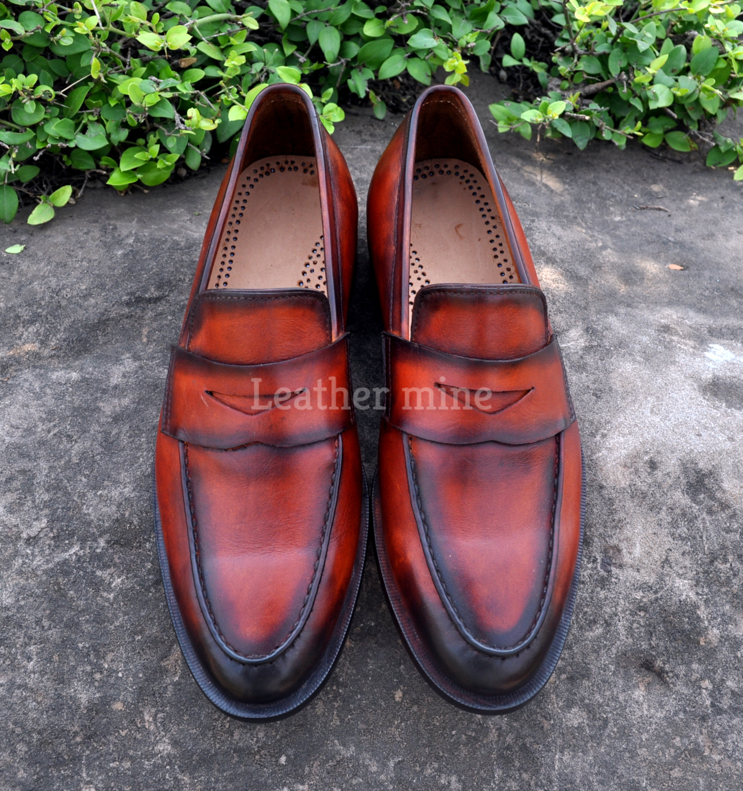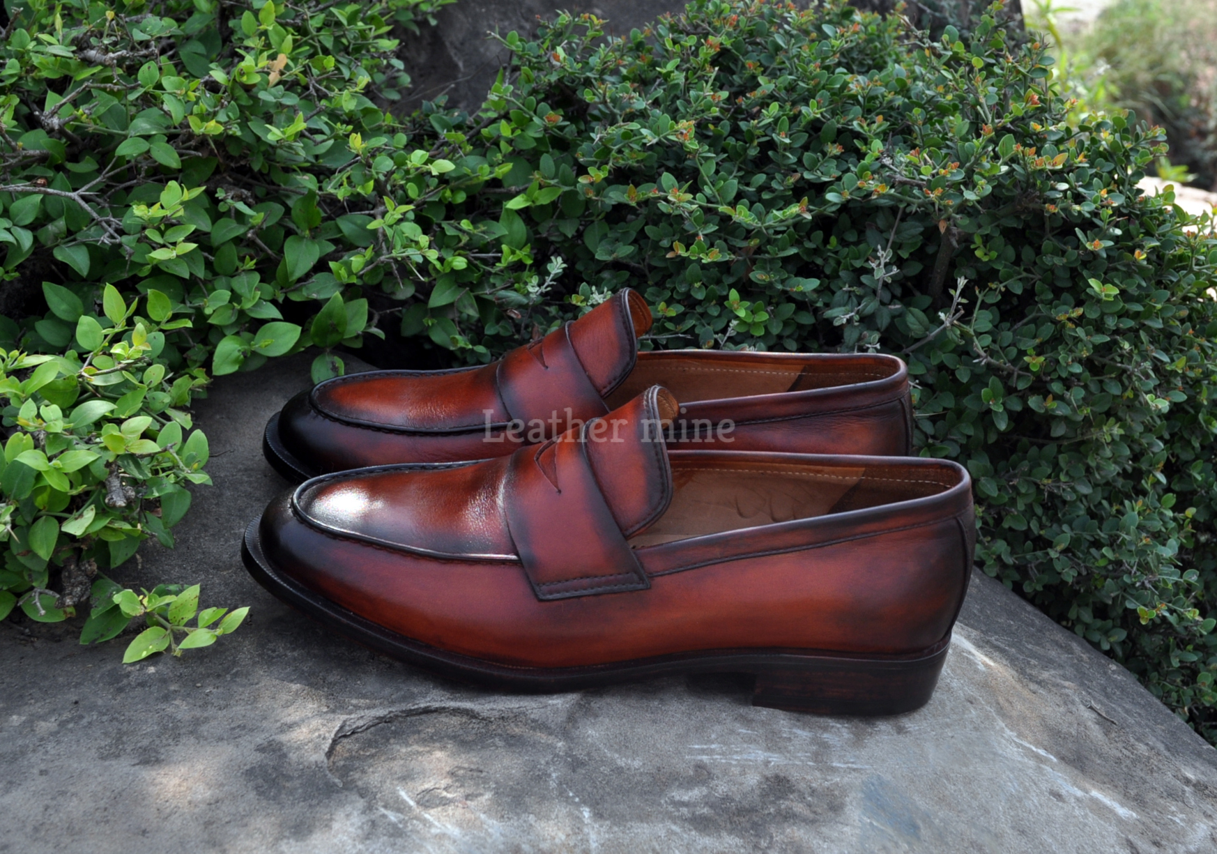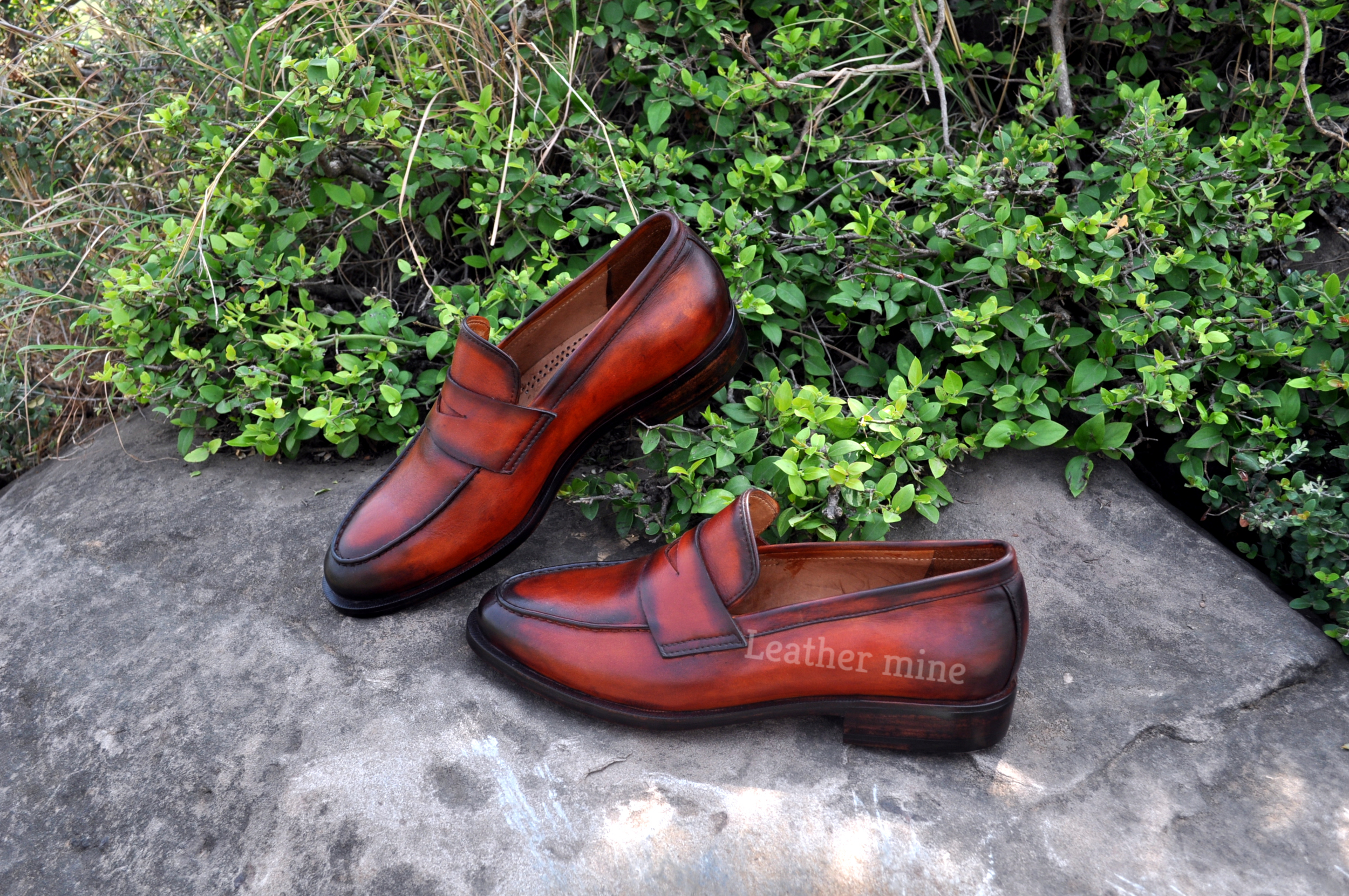 Handmade Leather Red Patina Loafer's, Dress shoes Men's, Handmade Leather Shoes, Formal Shoes