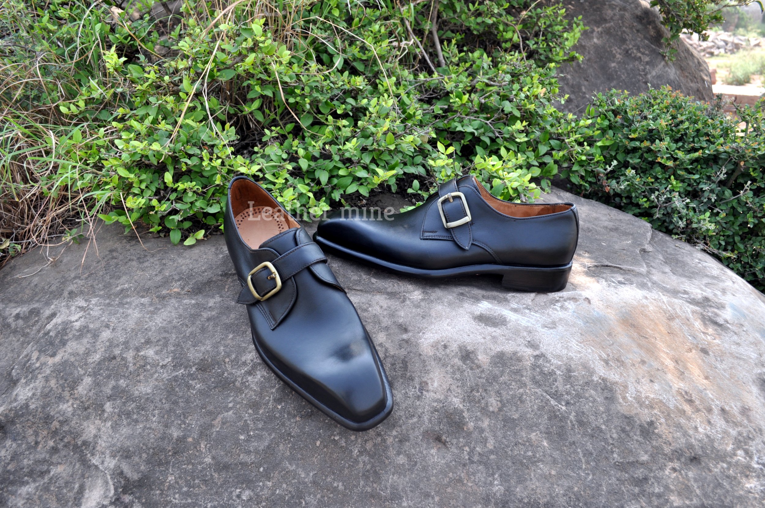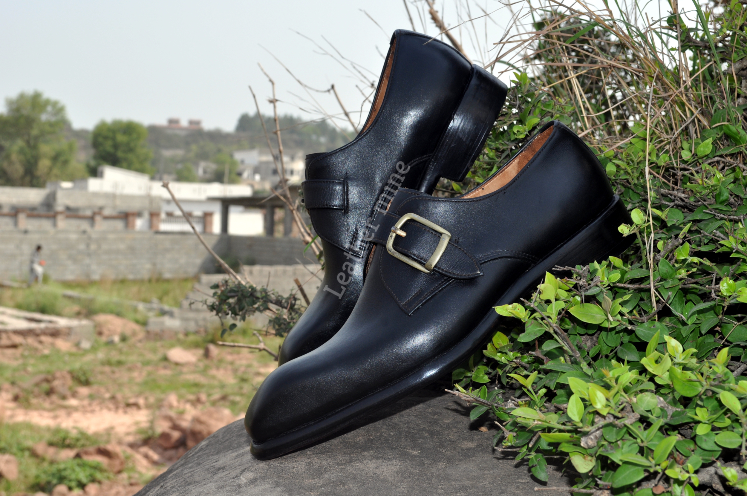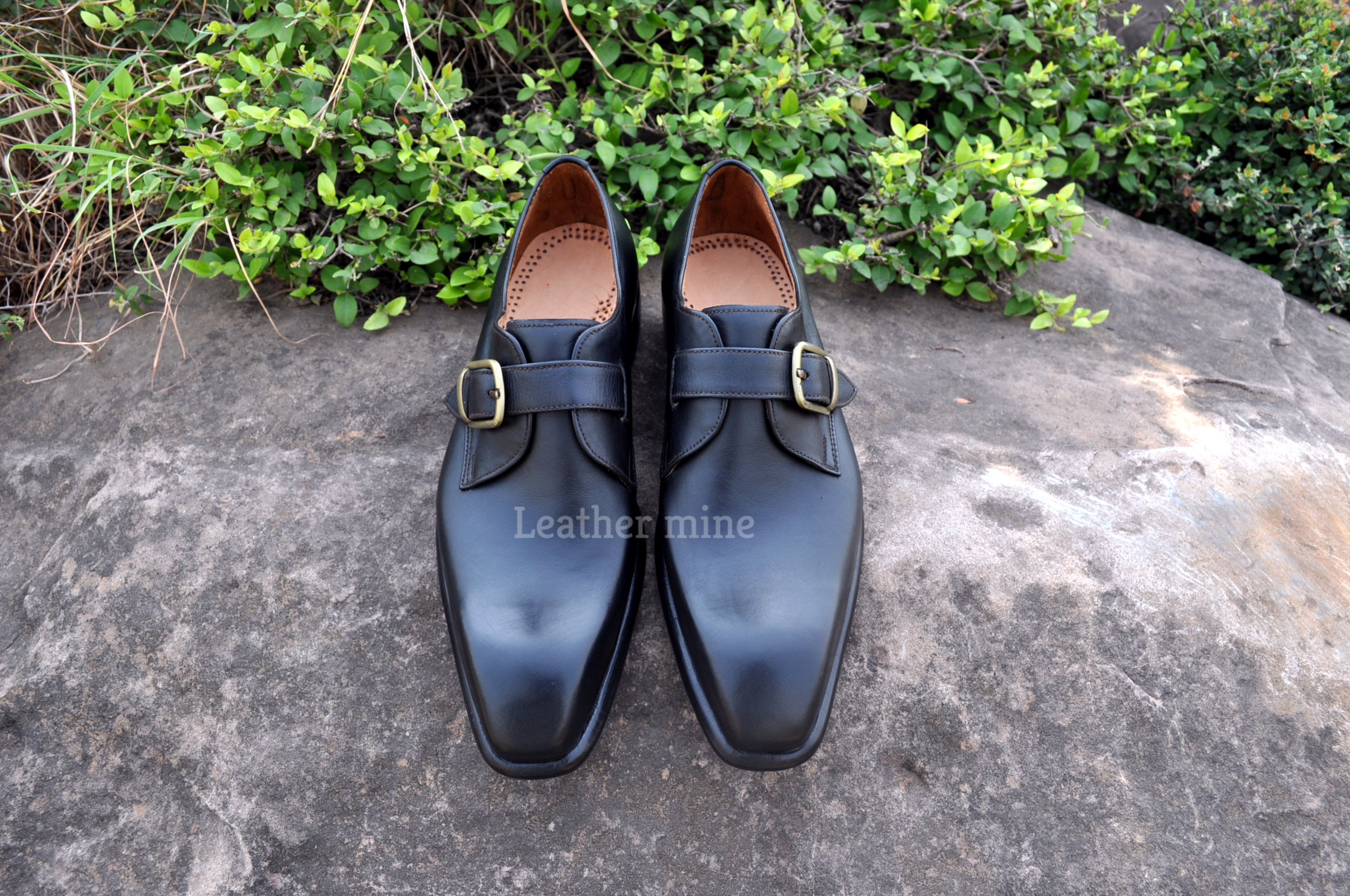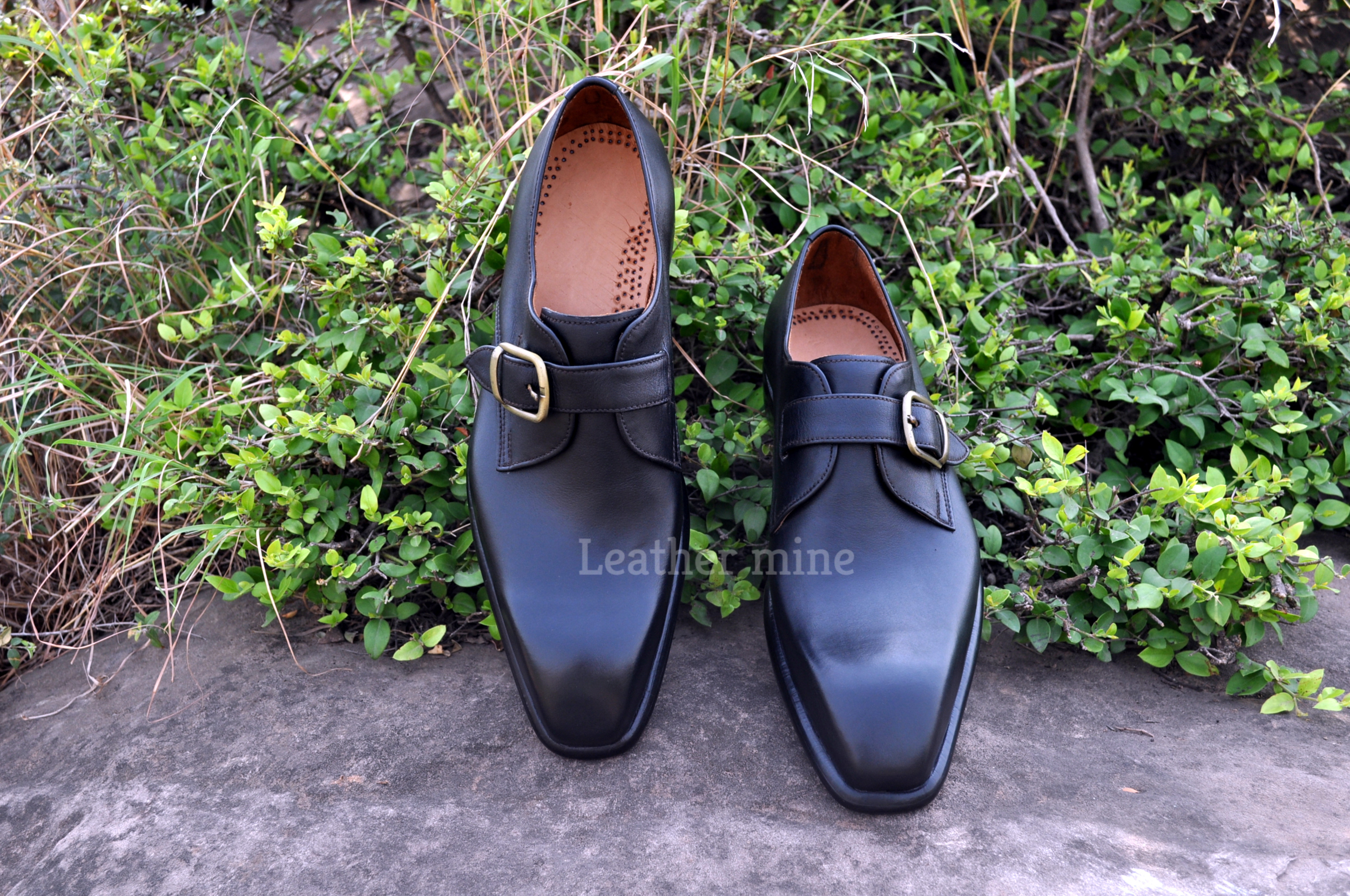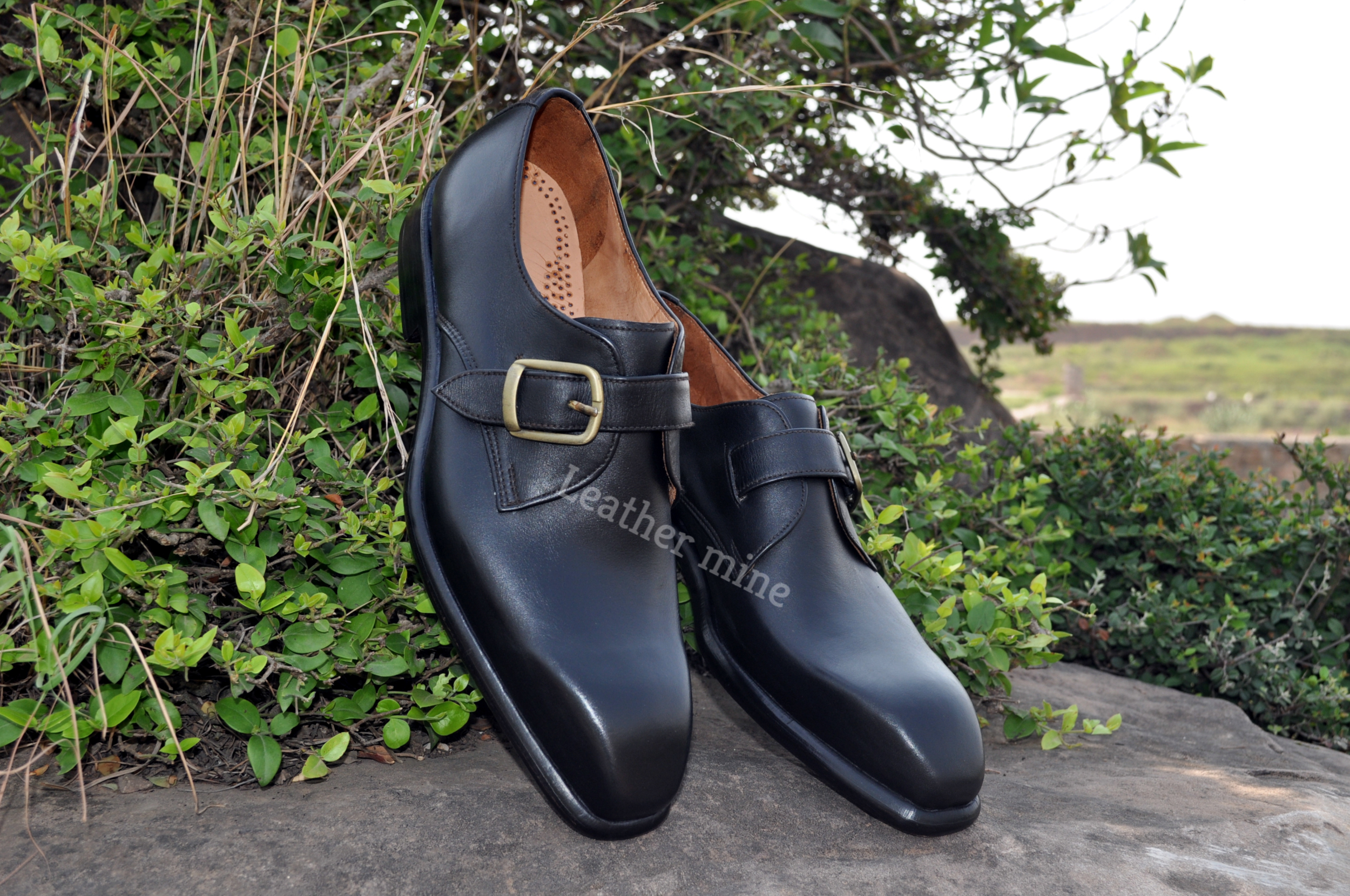 Handmade Black Leather Monk Strap Leather Shoes Men', Formal Shoes