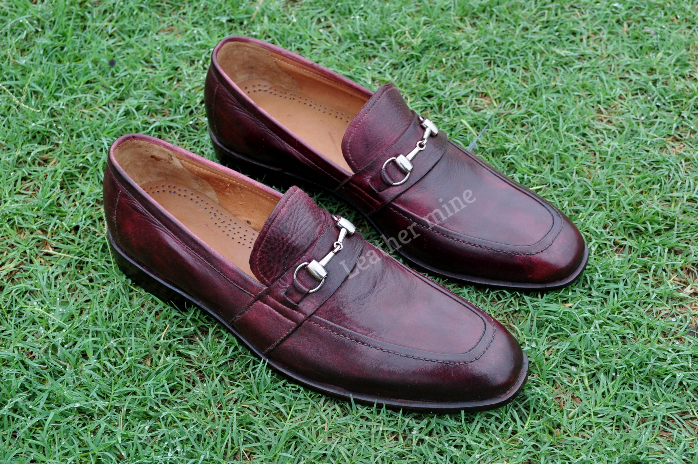 Handmade Red Patina Leather Loafer's, Dress shoes Men's, Handmade Leather Shoes, Formal Shoes