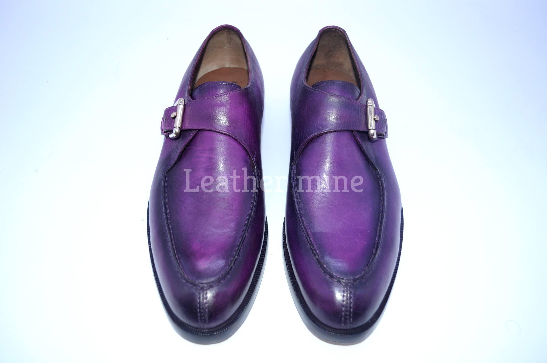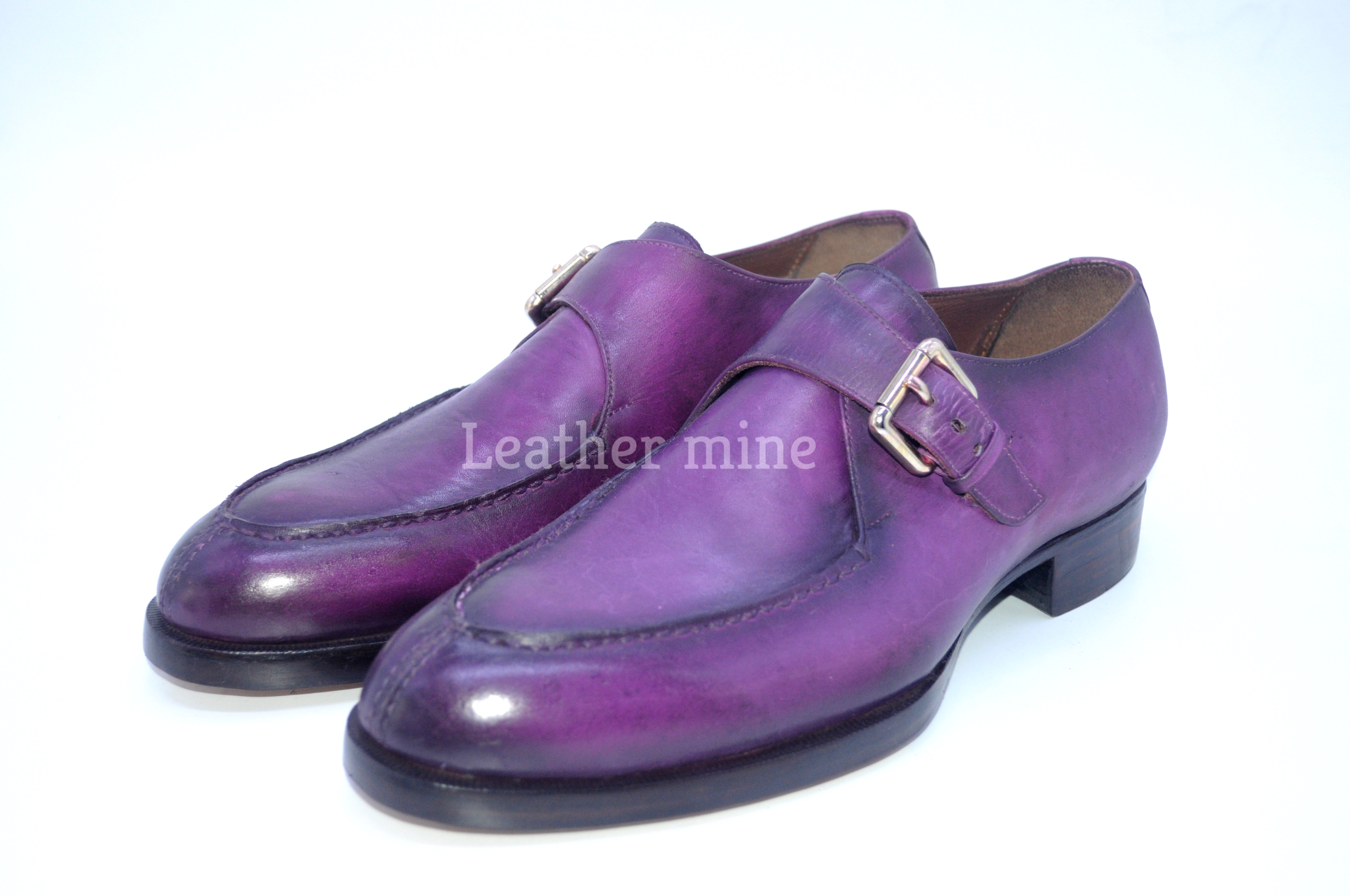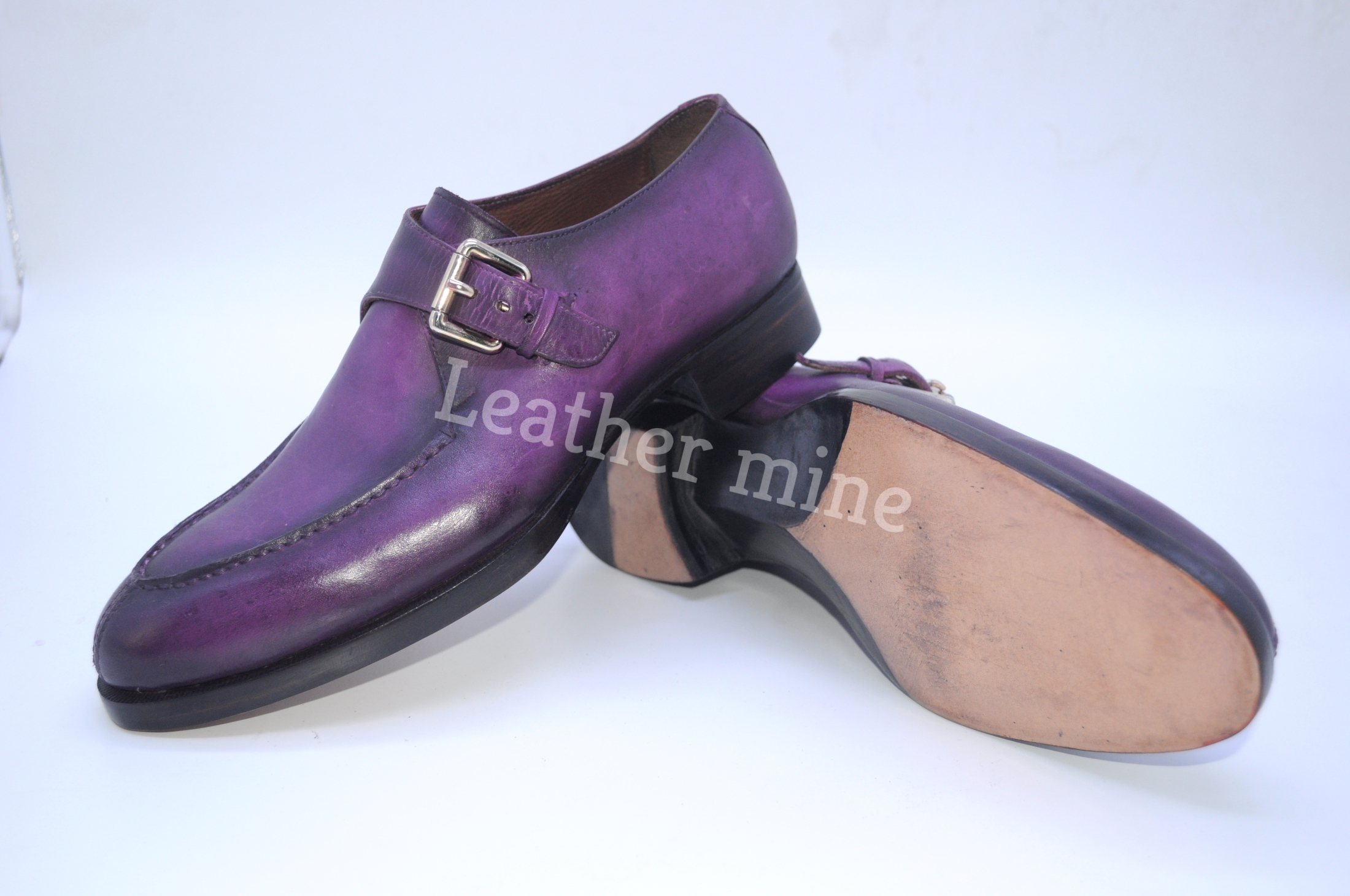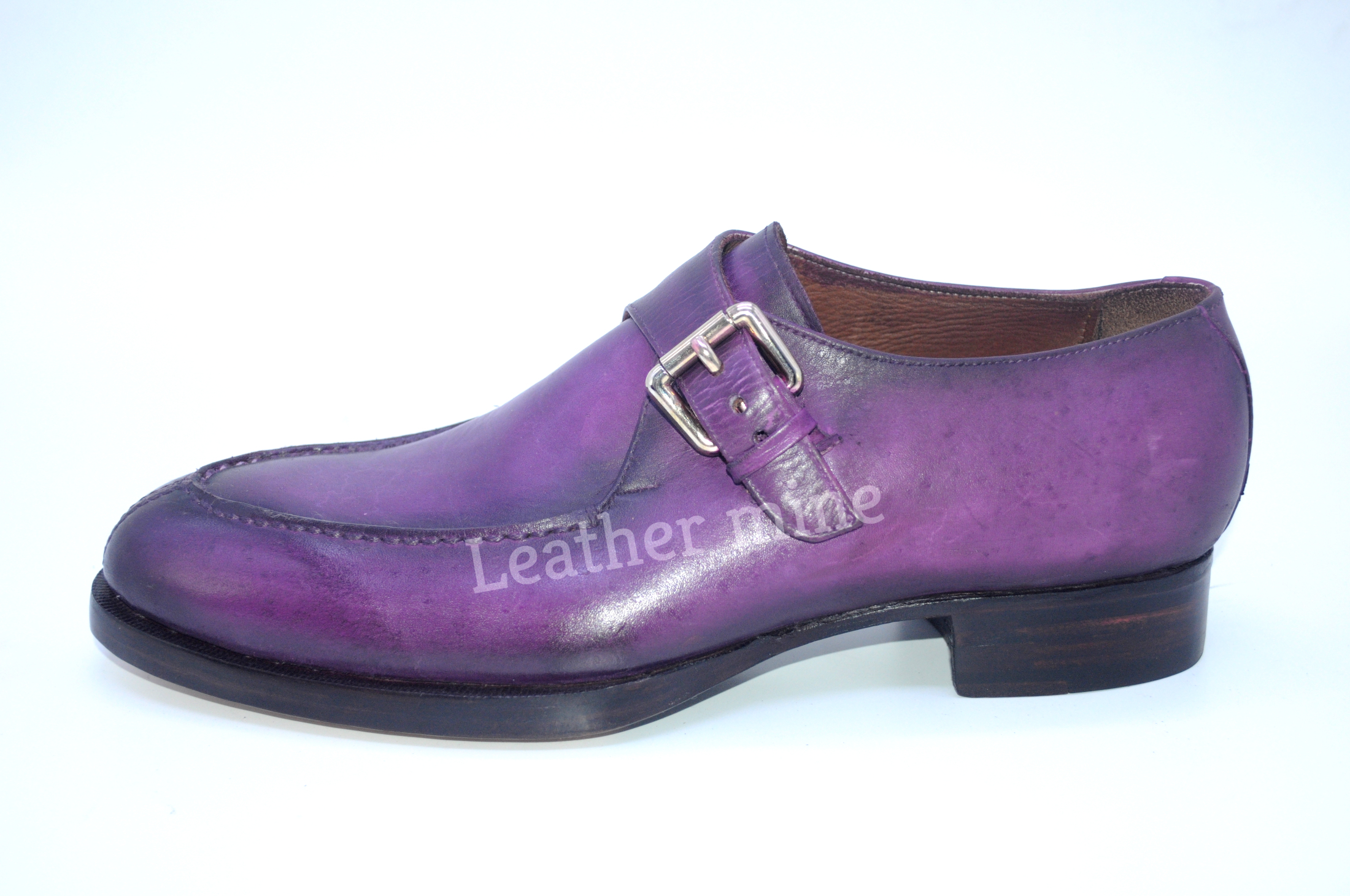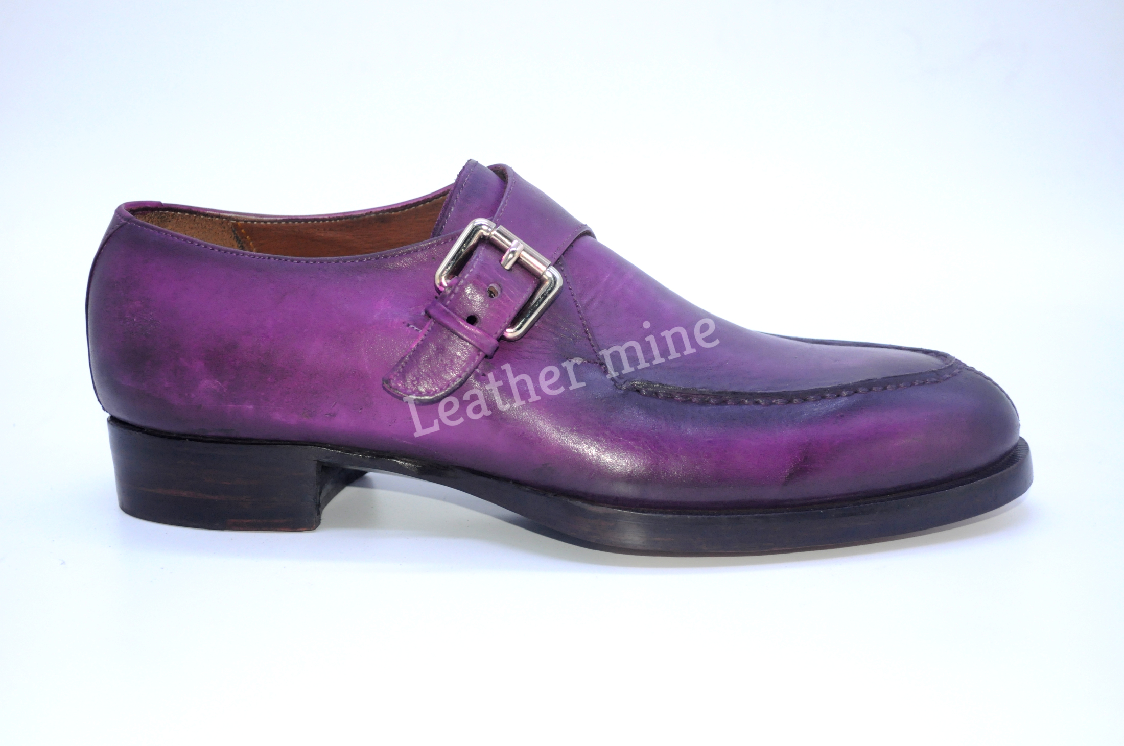 Monk Strap Handmade Leather Purple Patina Shoes Men', Formal Shoes