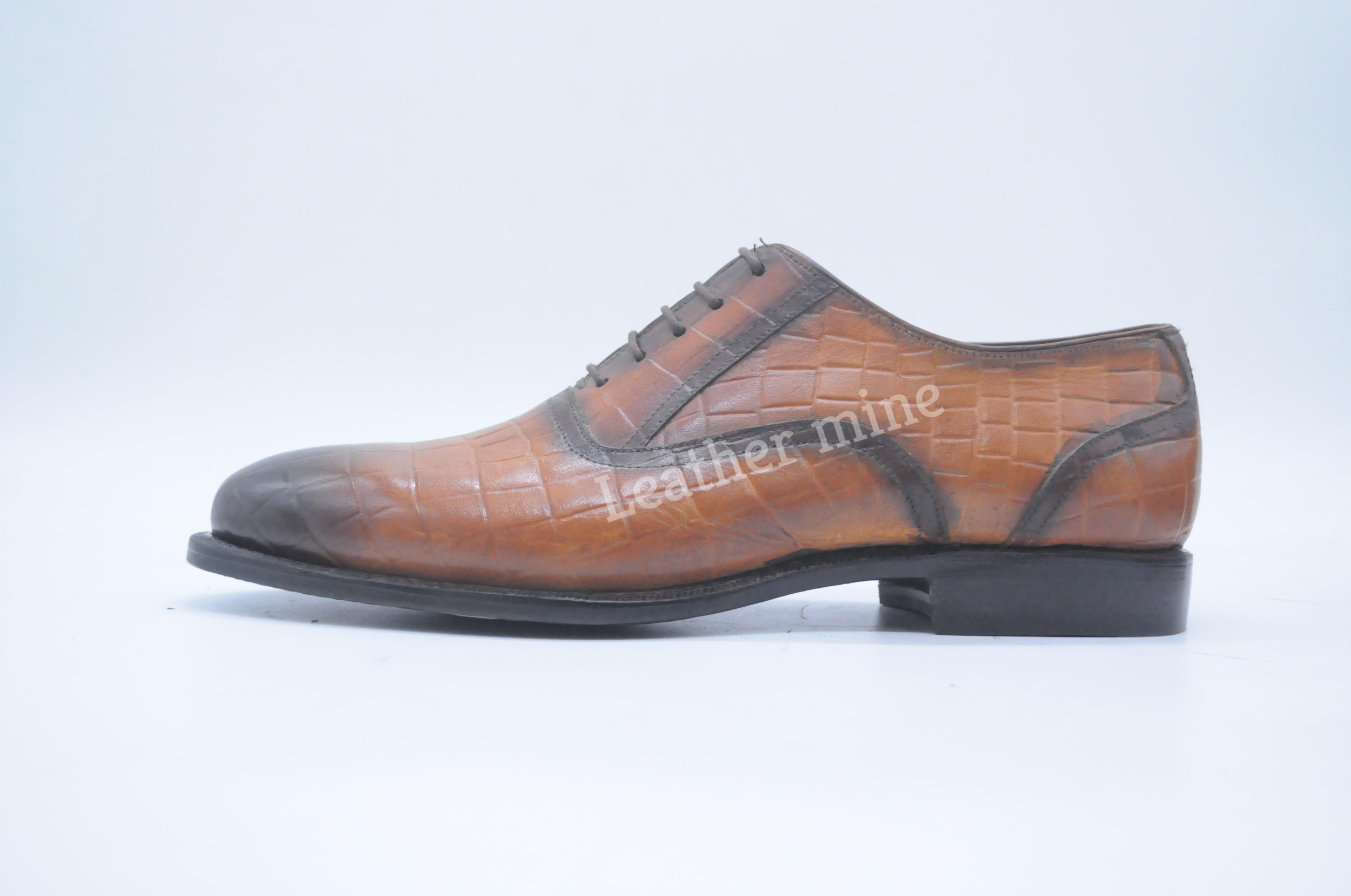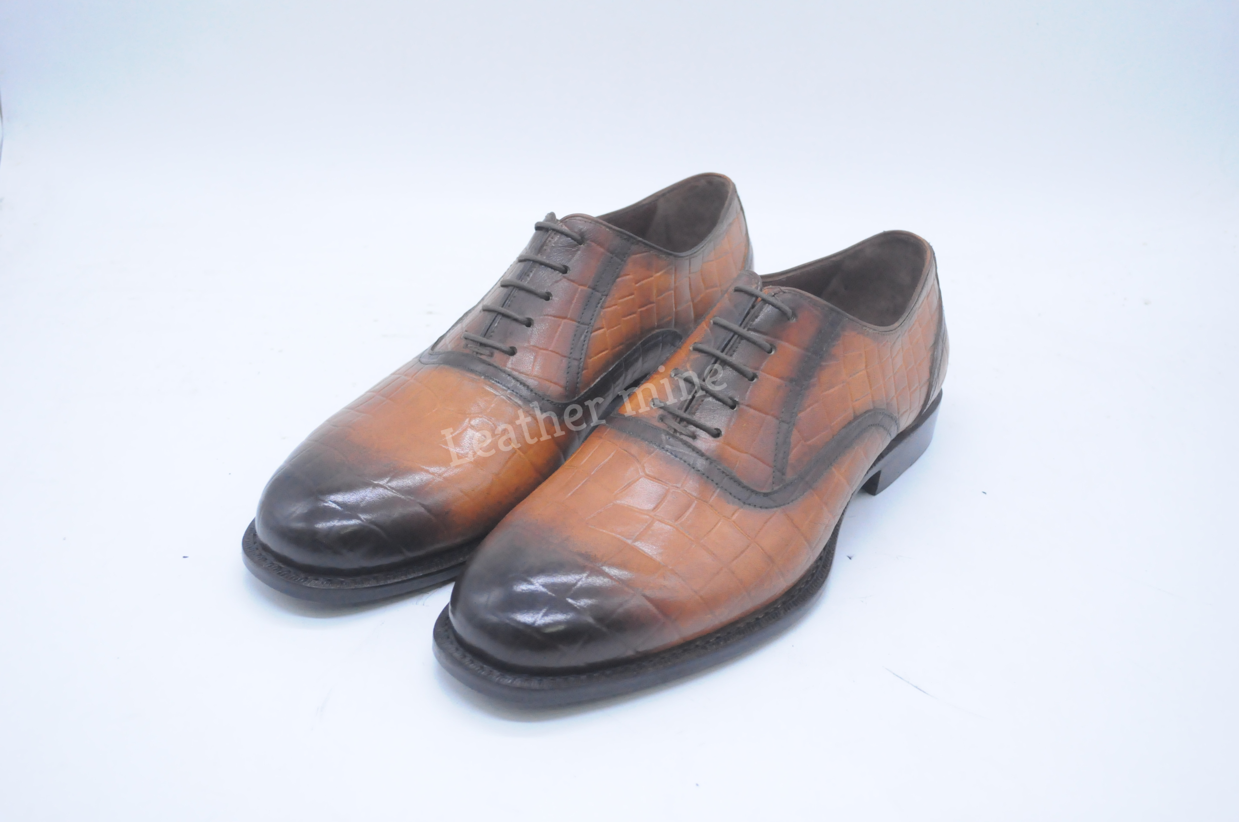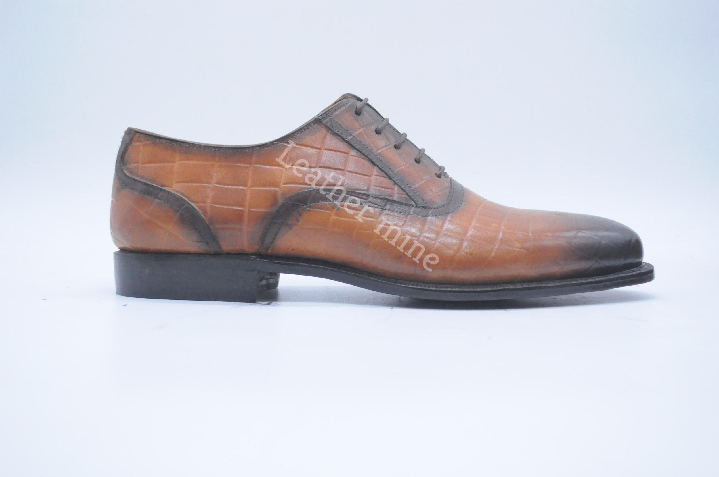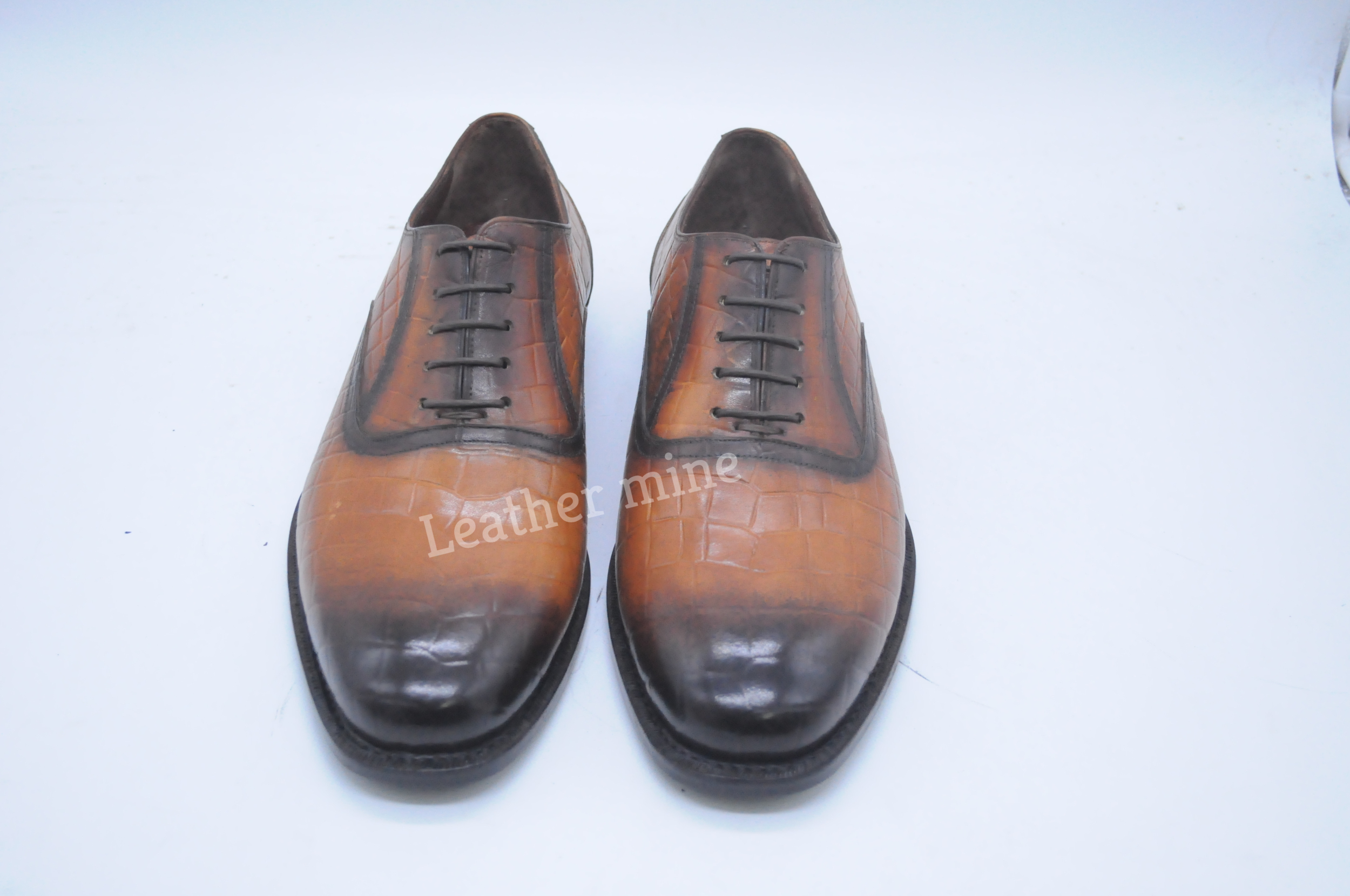 Handmade Leather Crocodile Impression Patina men's Oxfords Dress shoes Men's, Handmade Leather Shoes