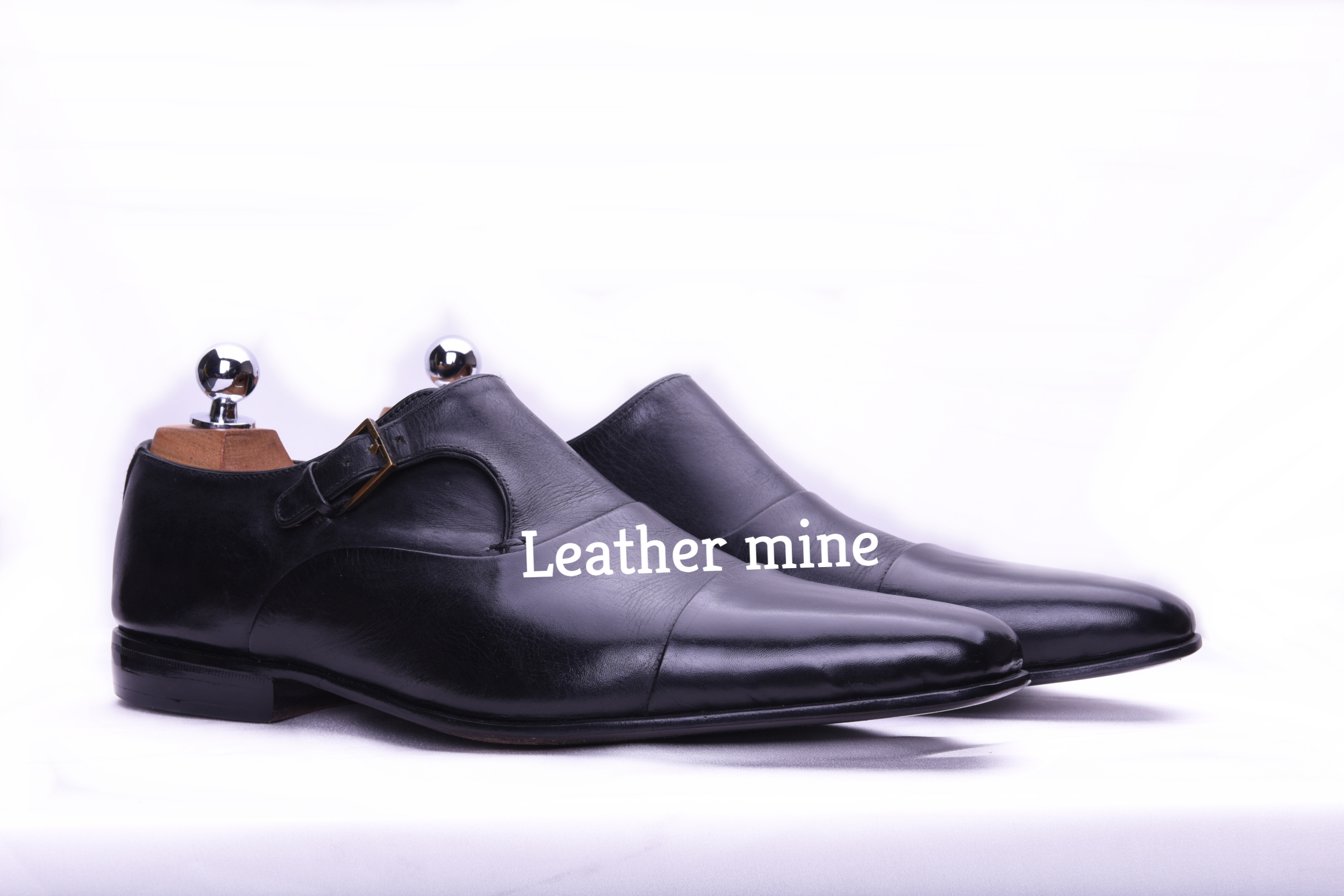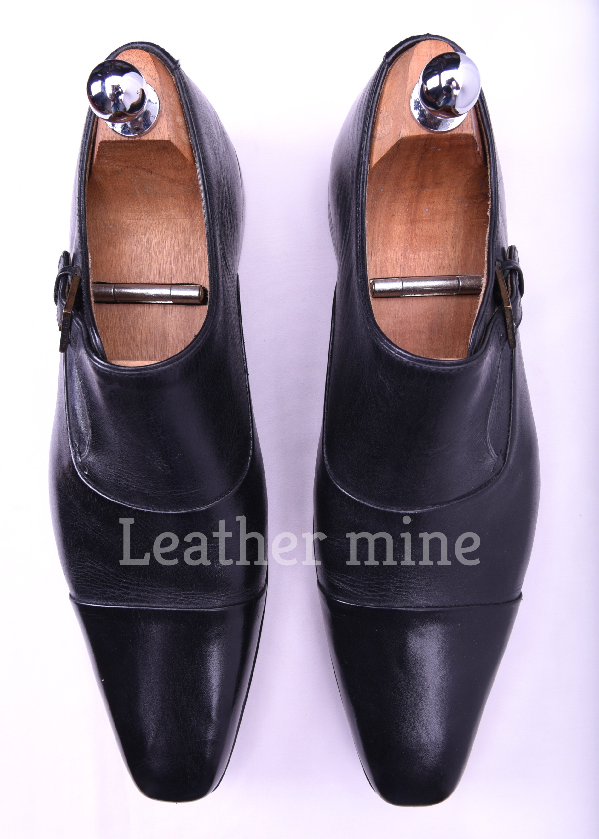 Handmade Leather Black Monk Strap Dress Men's Shoes, Custom made Dress Shoes