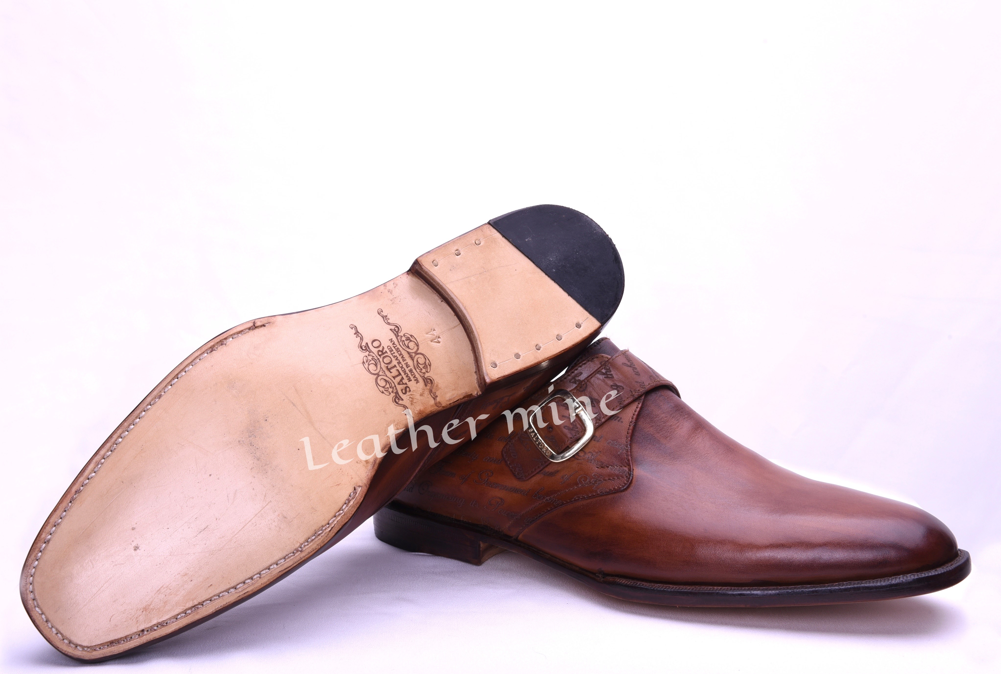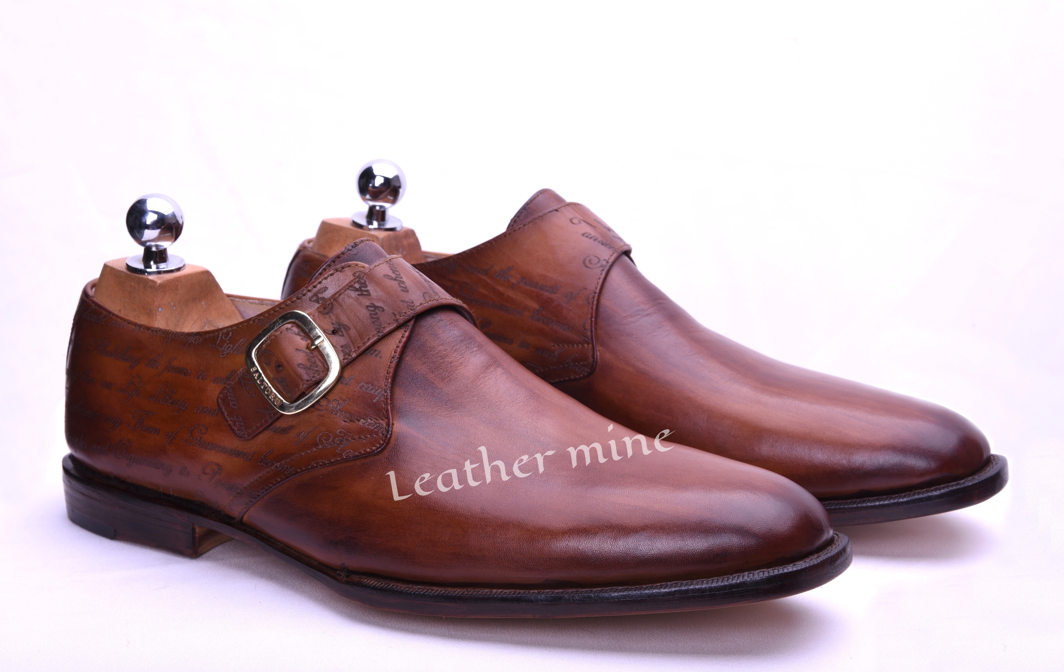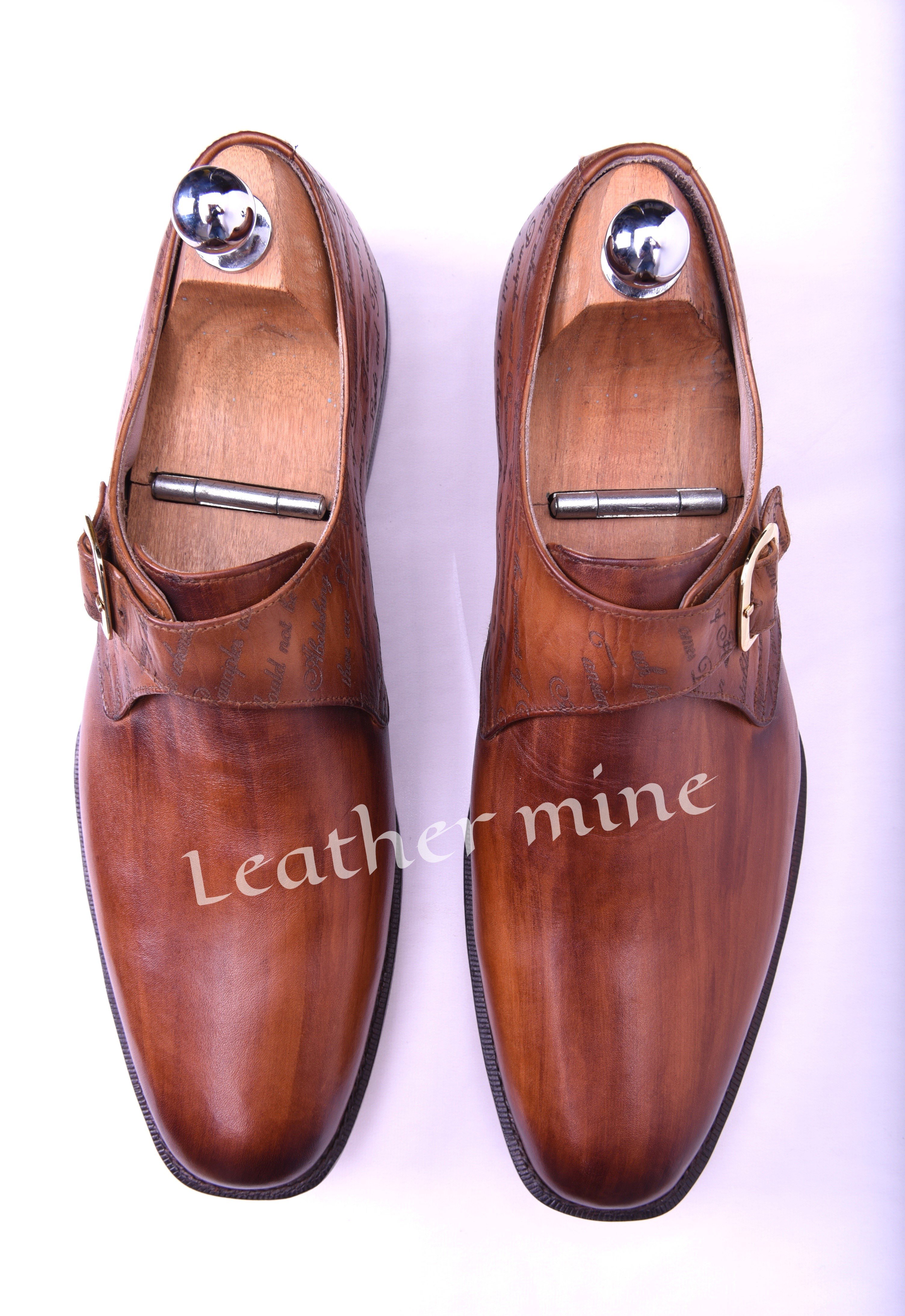 Handmade Leather Tan Brown Monk Dress Shoes Men', Formal Shoes