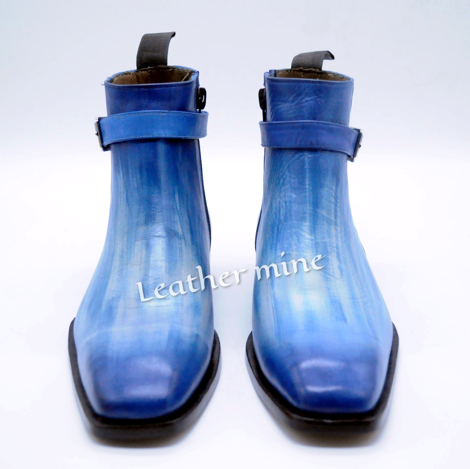 Leather Dress Boots Men's Handmade Patina Chelsea Custom Boots
