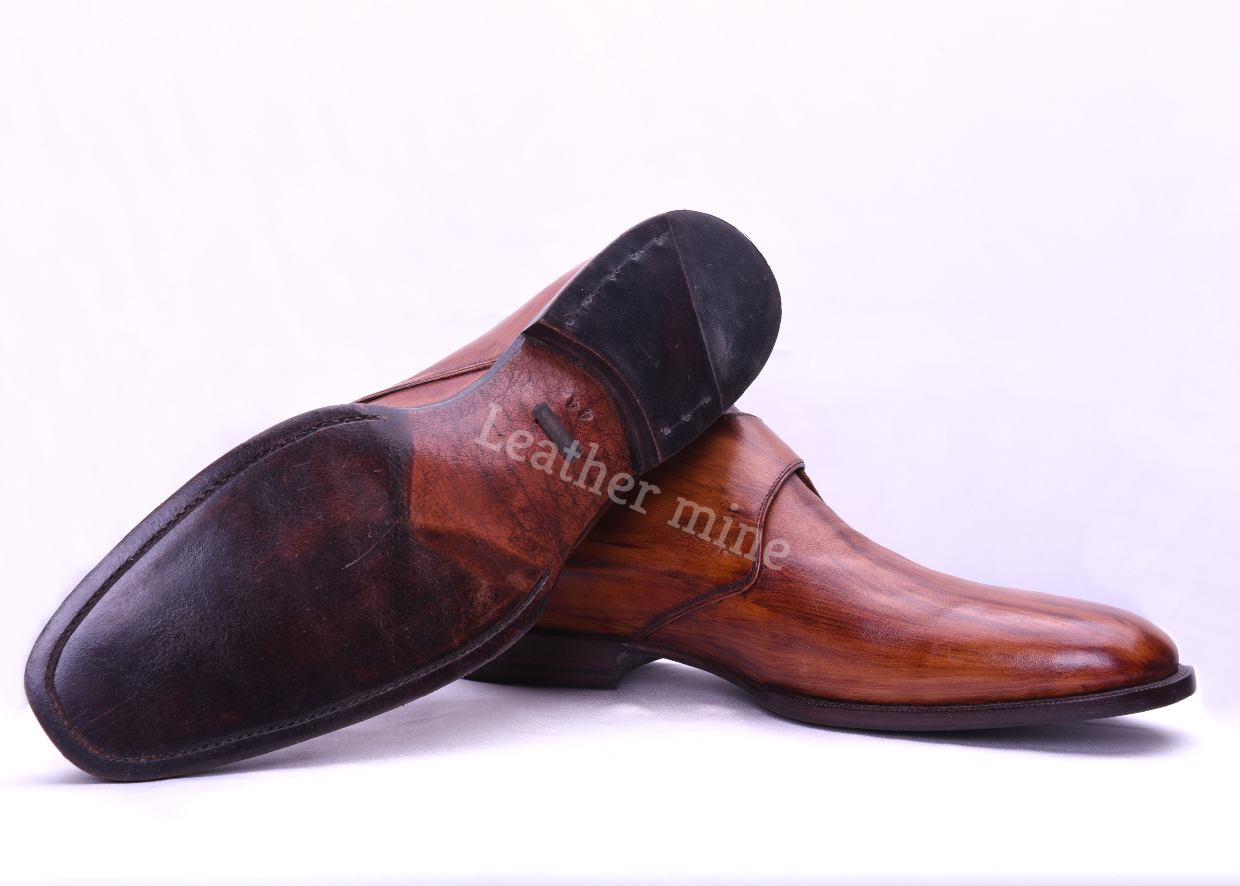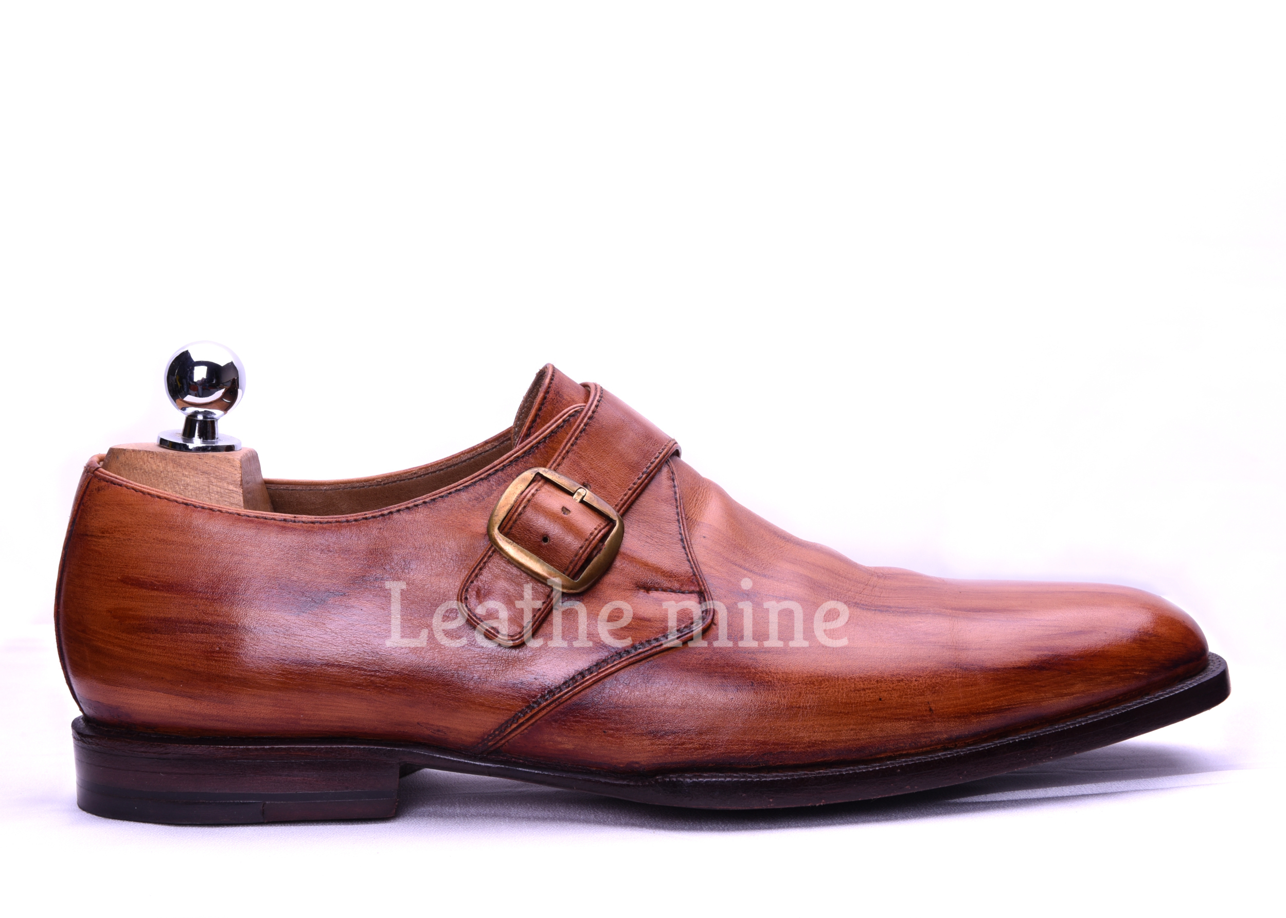 Handmade Leather Tan Brown Monk Dress Shoes Men', Formal Shoes