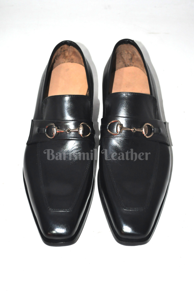 Handmade Black Leather Clip Loafers for Men Custom Men's Dress Loafers