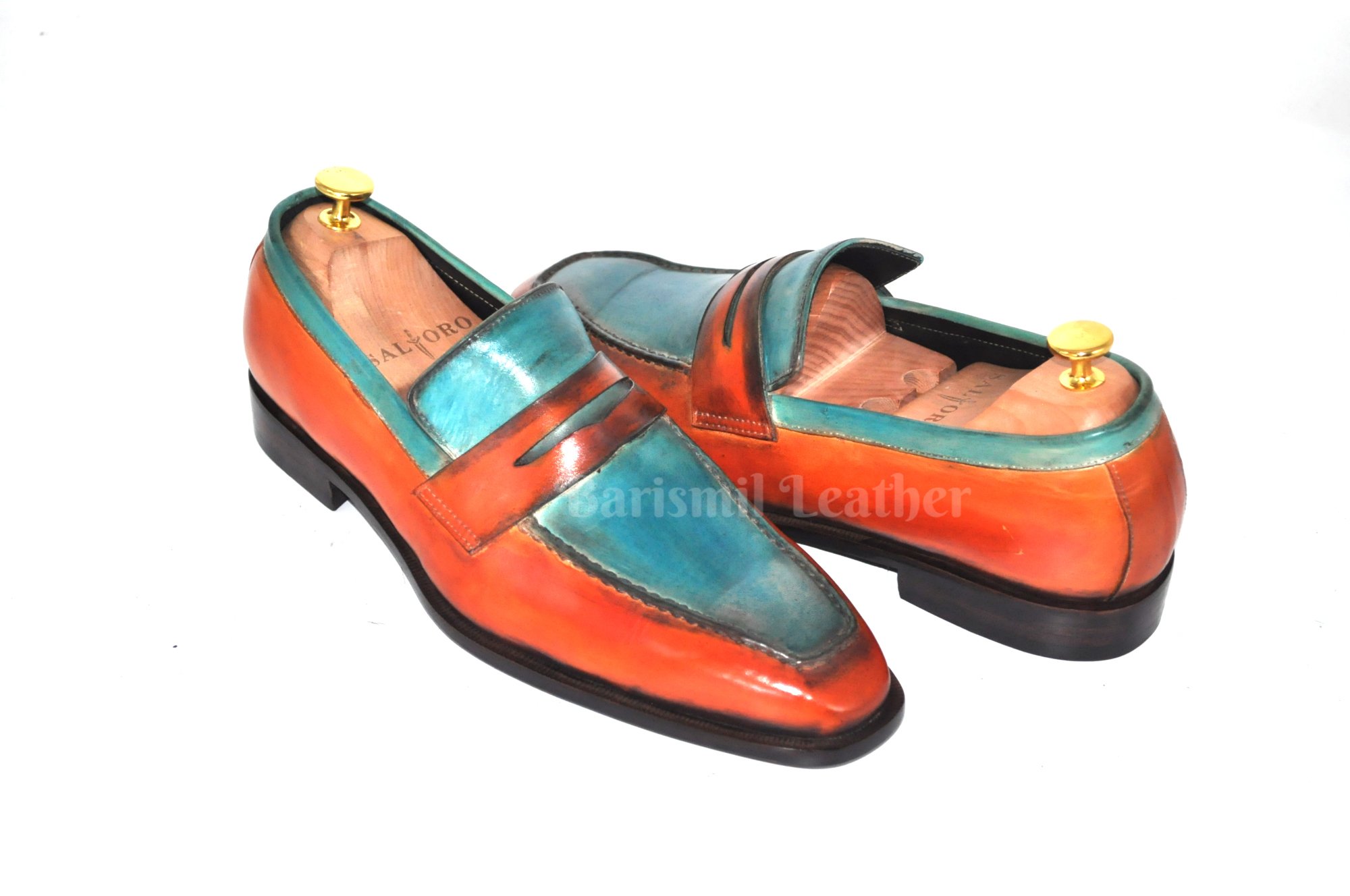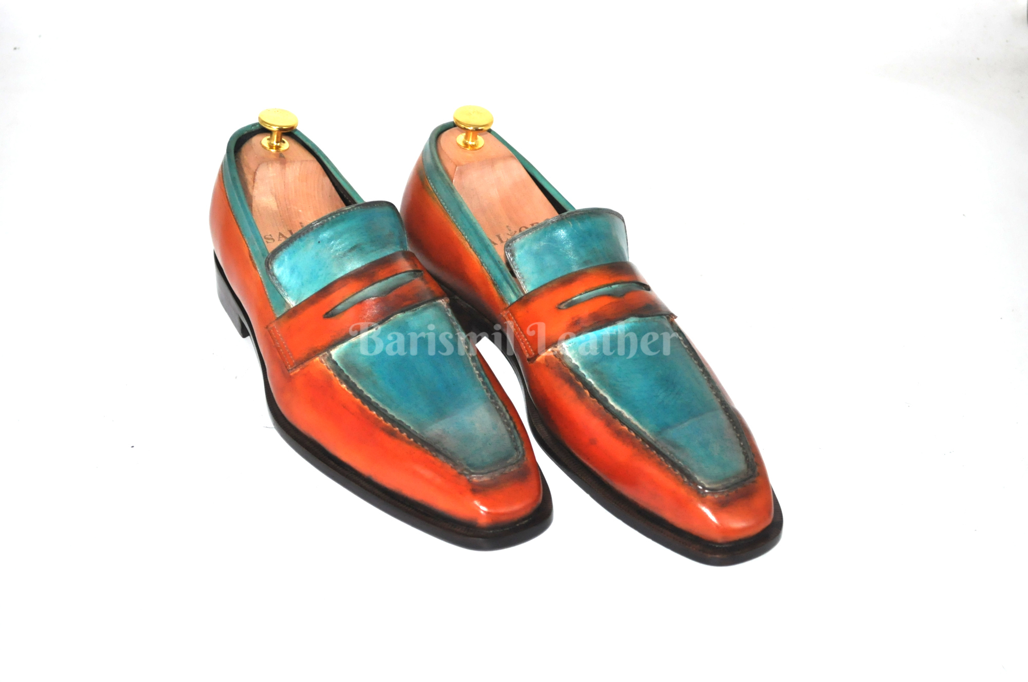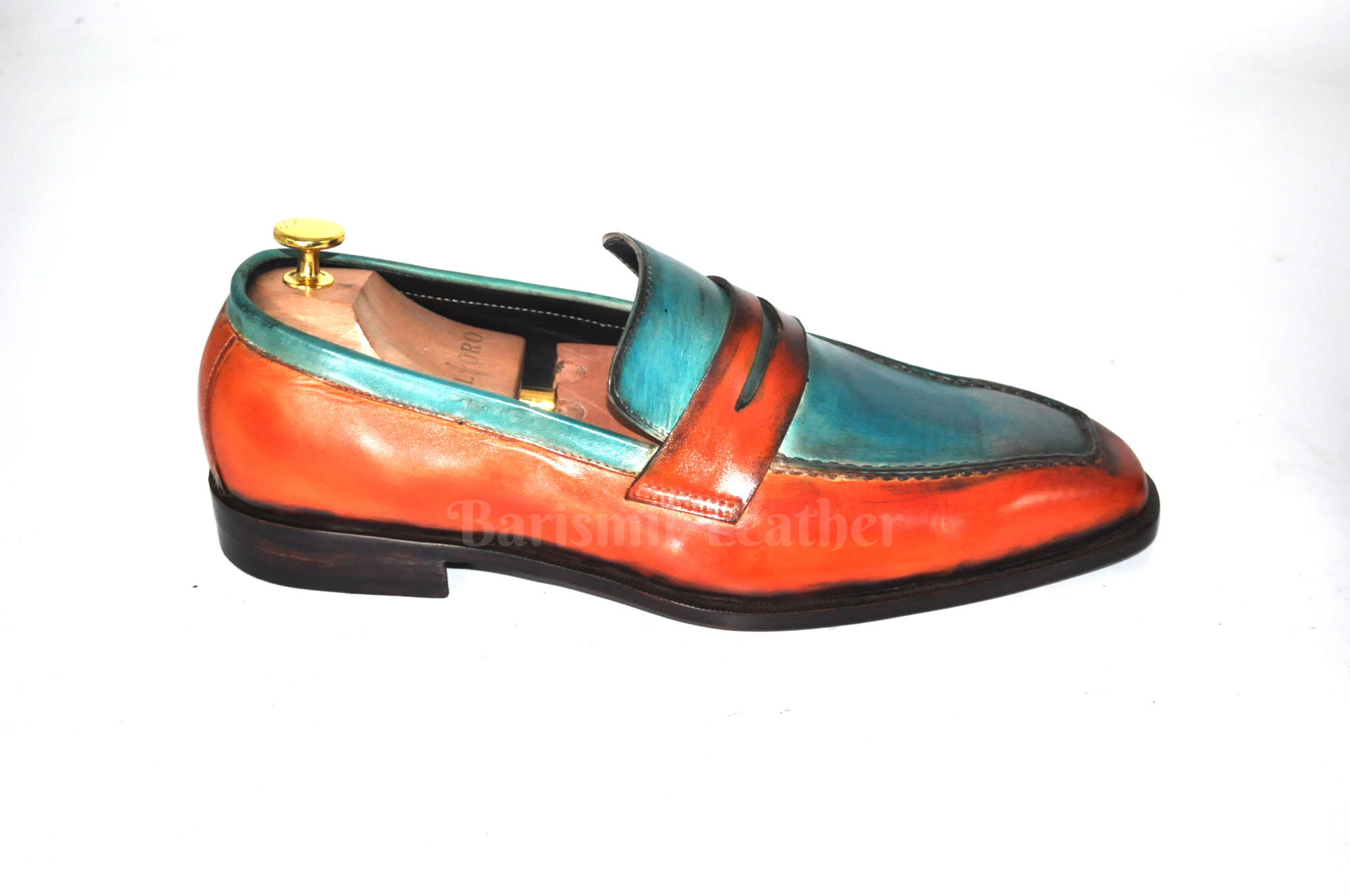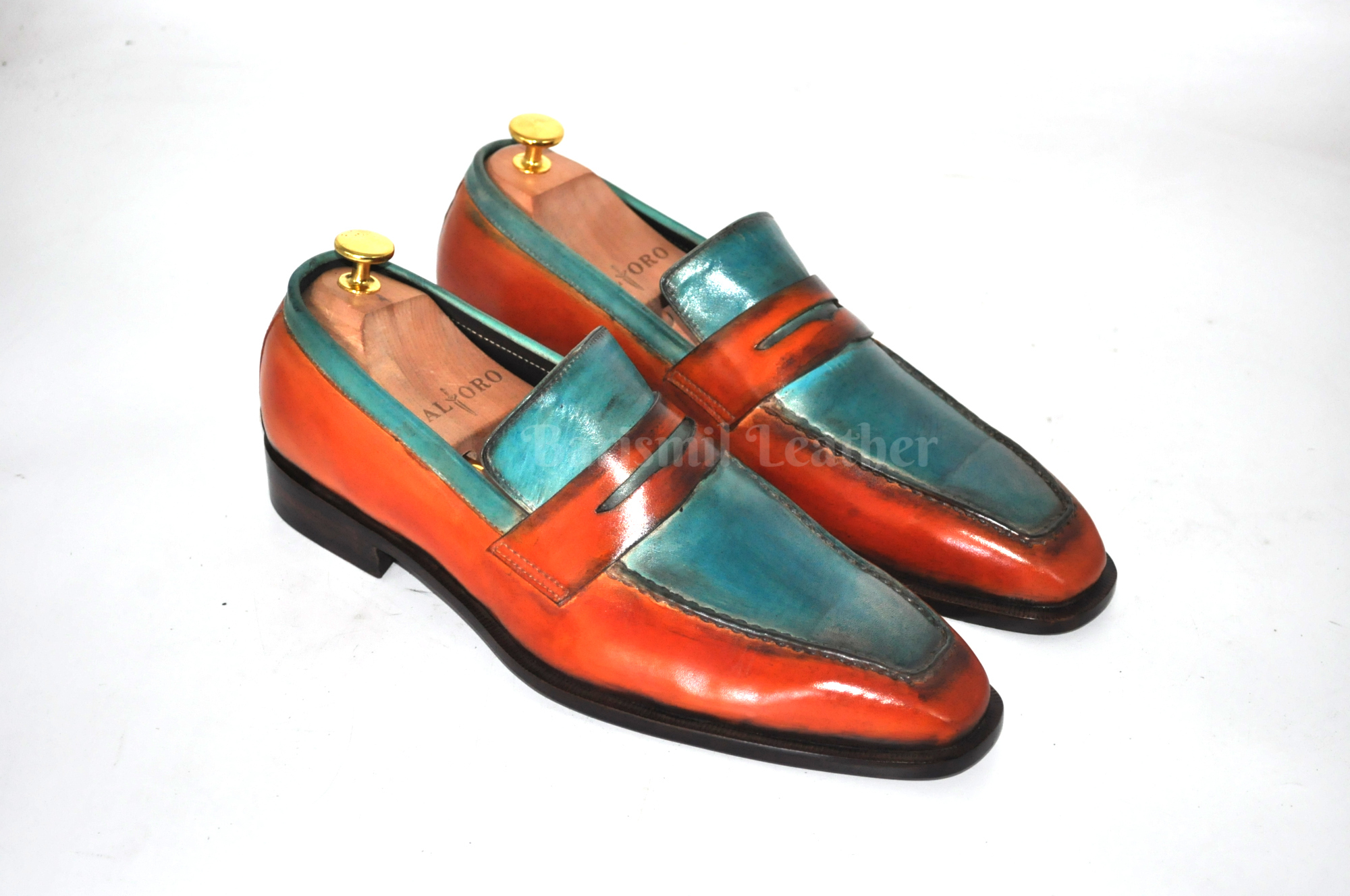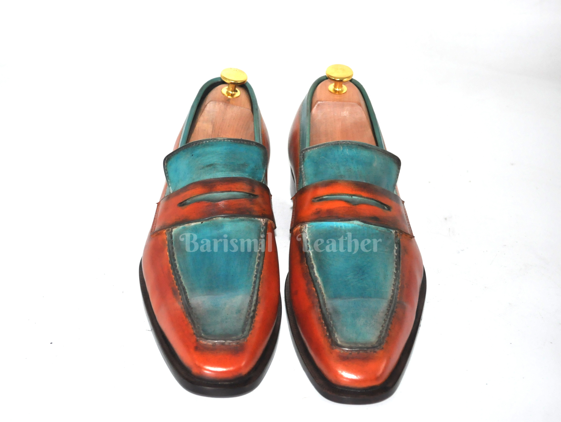 Handmade Leather Two tone Patina Loafers Dress Shoes For Men, Custom Shoes