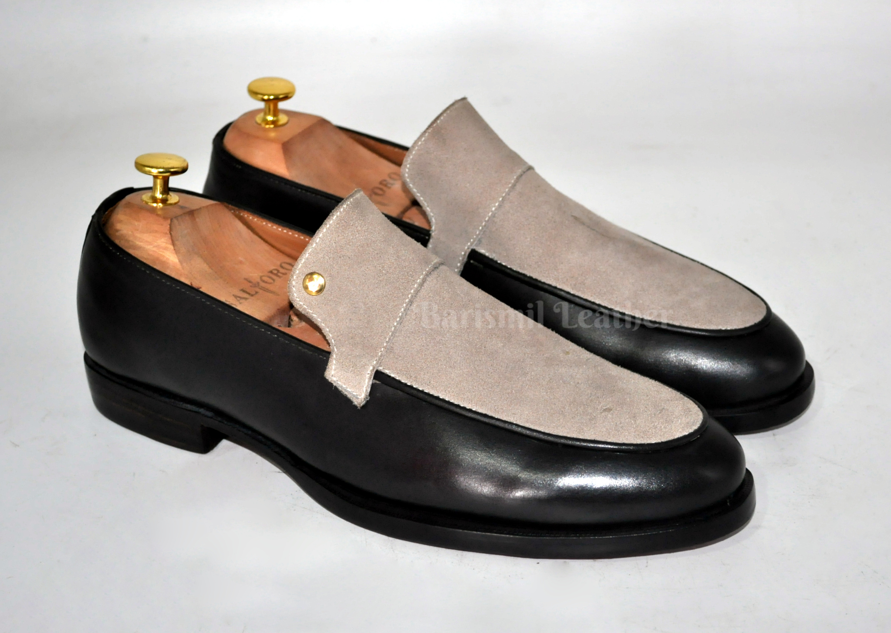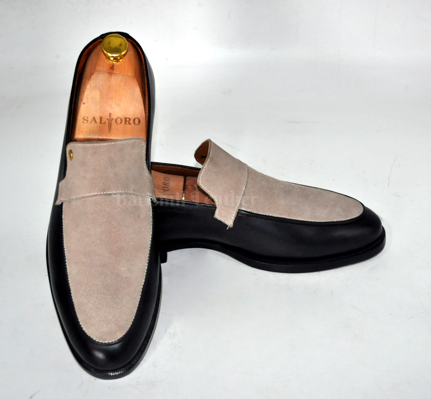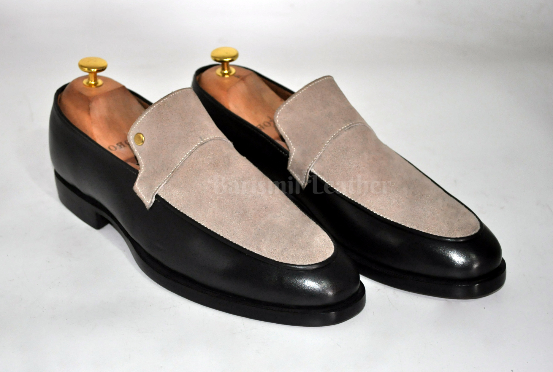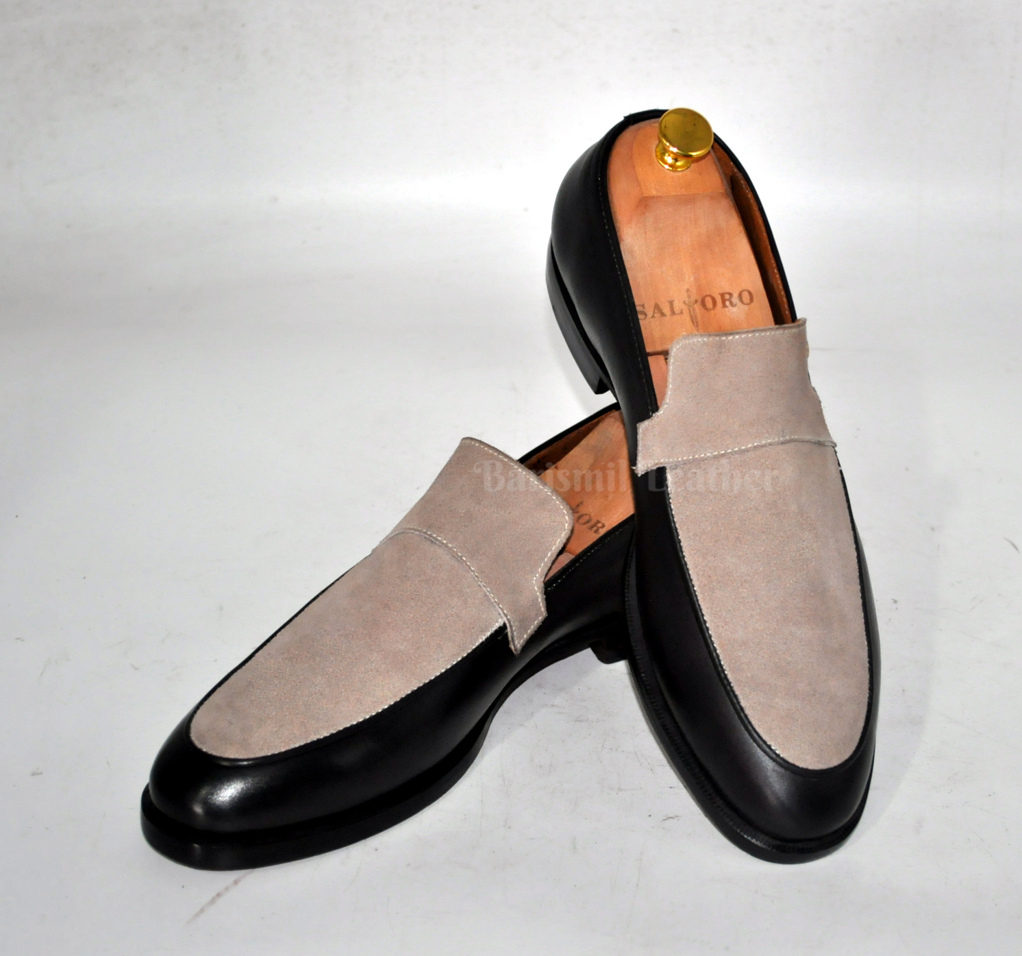 Men's Handmade Leather Two Tone Loafers Dress Shoes