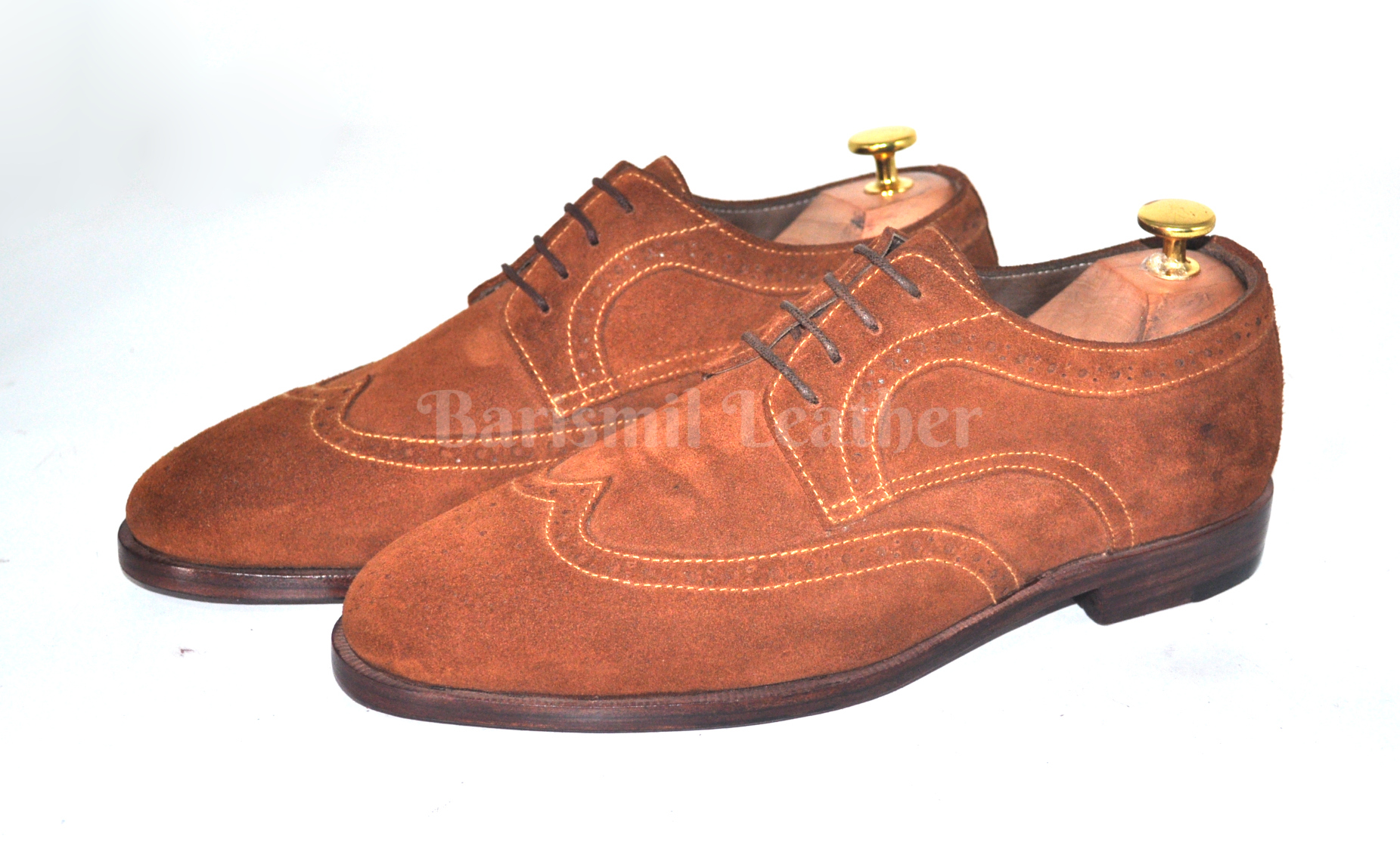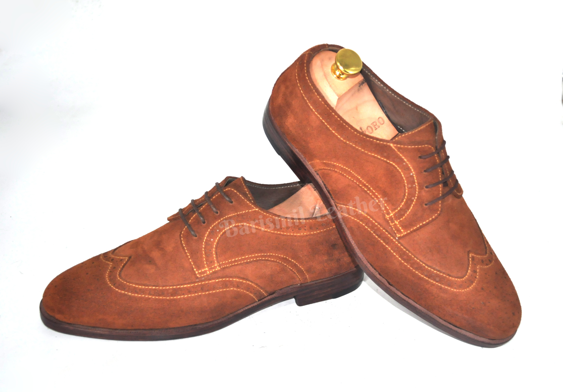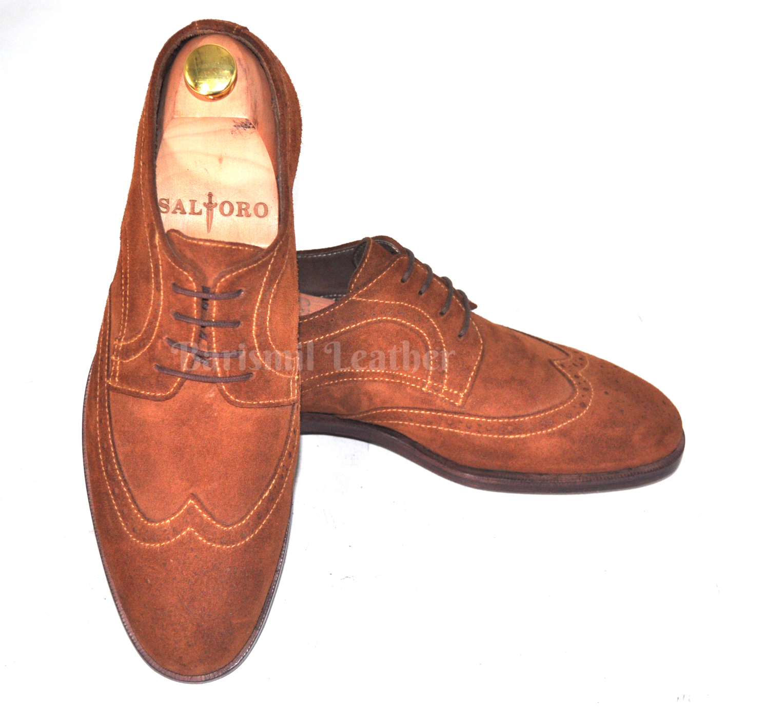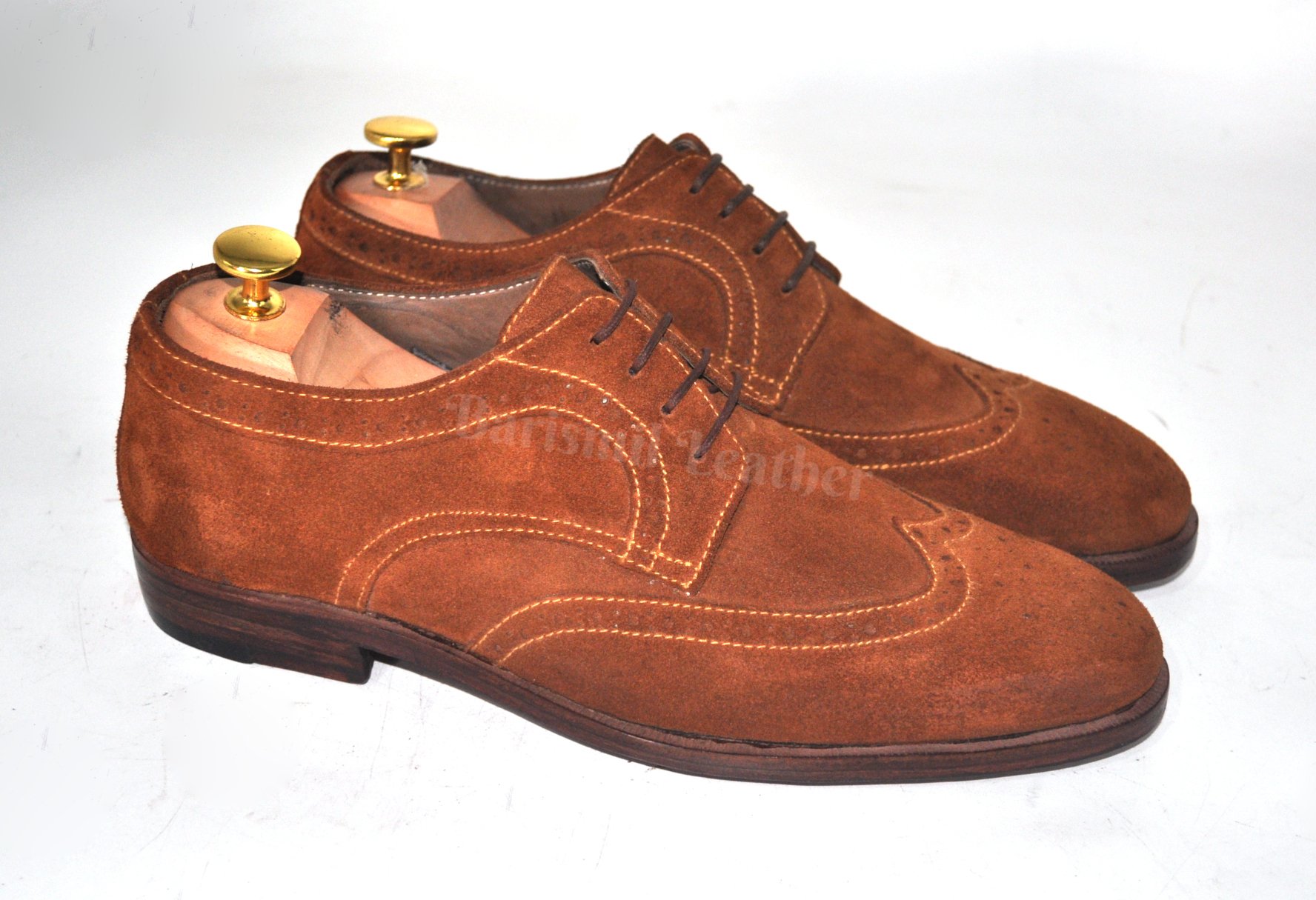 Men's Handmade Genuine Suede Leather Brown Lace up Oxfords Dress Shoes.