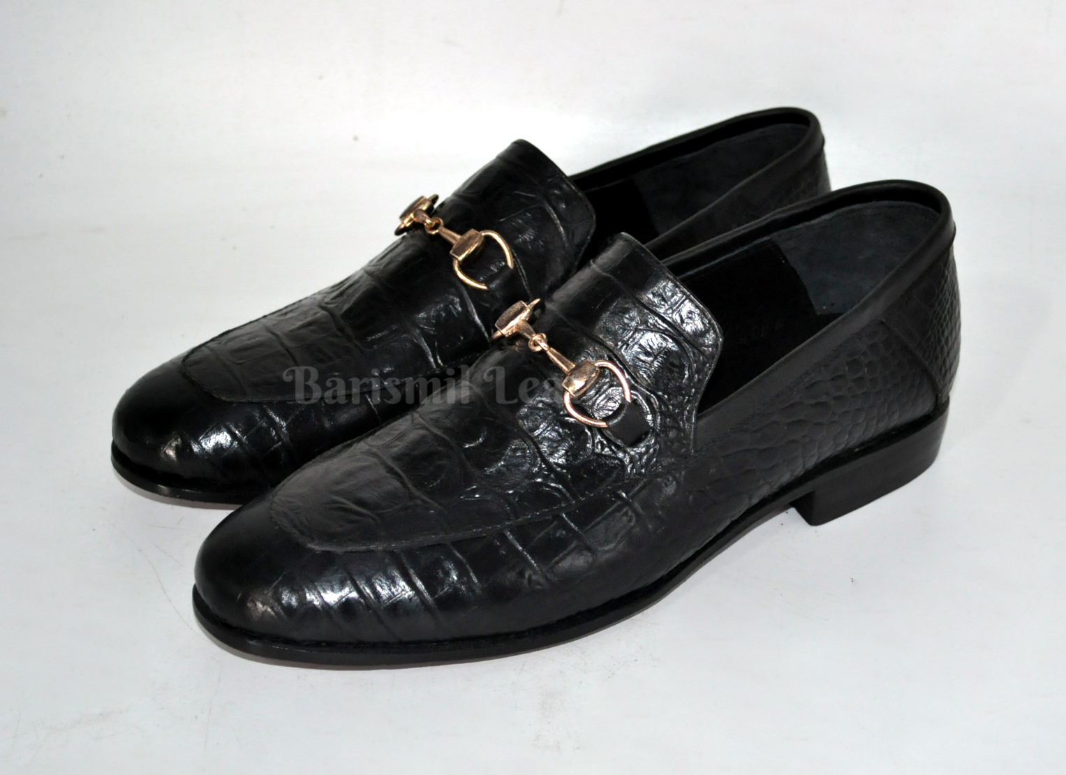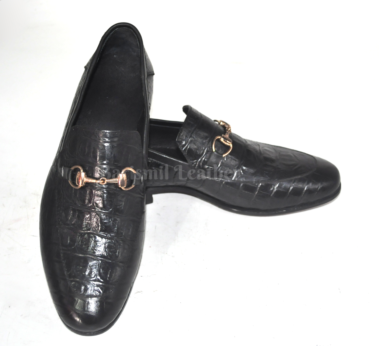 Handmade Black Leather Clip Loafers for Men Custom Men's Dress Loafers