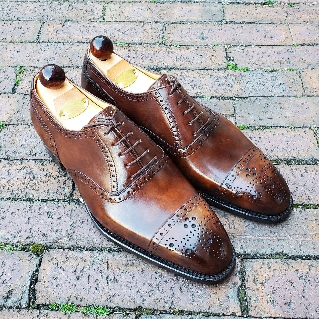Handmade Leather Brown Hand Patina Oxfords Dress Shoes Formal Shoes for Men