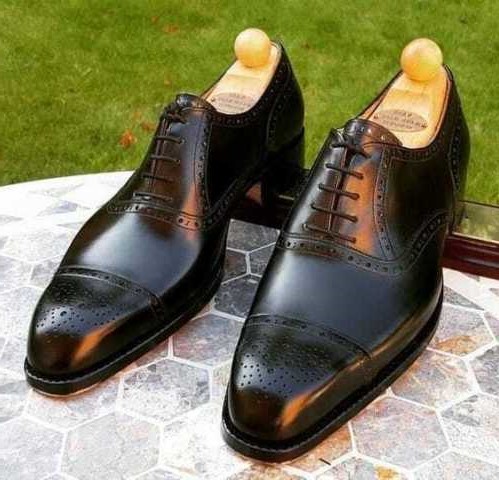 Handmade Black Leather Shoes Brogue Oxfords Dress Leather For Men