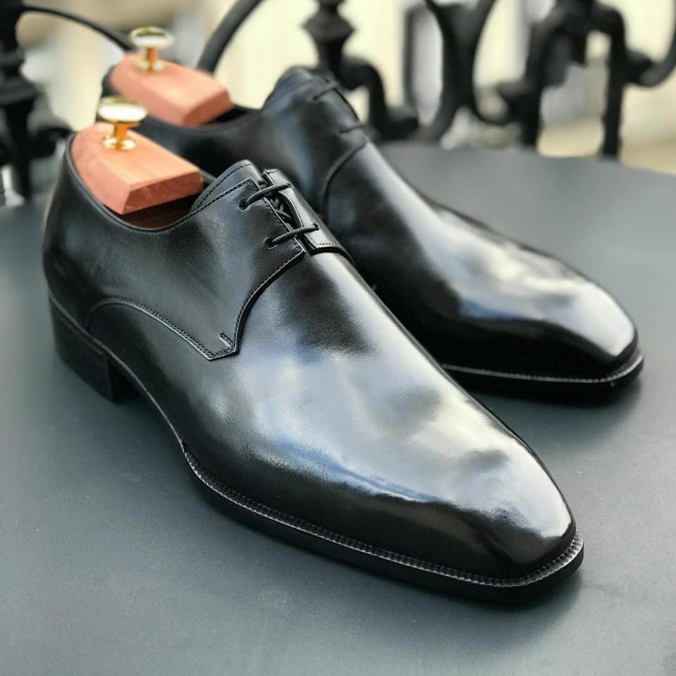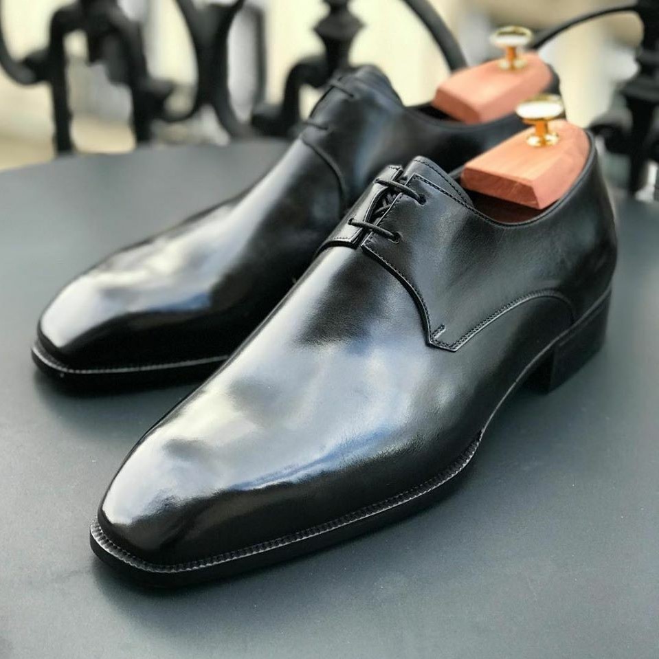 Handmade Leather Black Derby Lace up Oxfords Dress Leather Shoes Men Formal Shoes